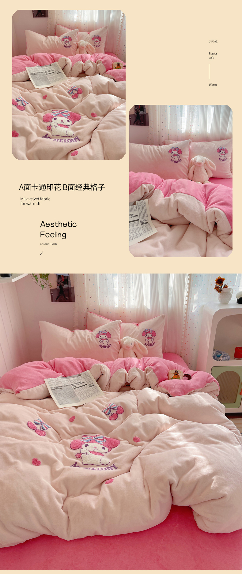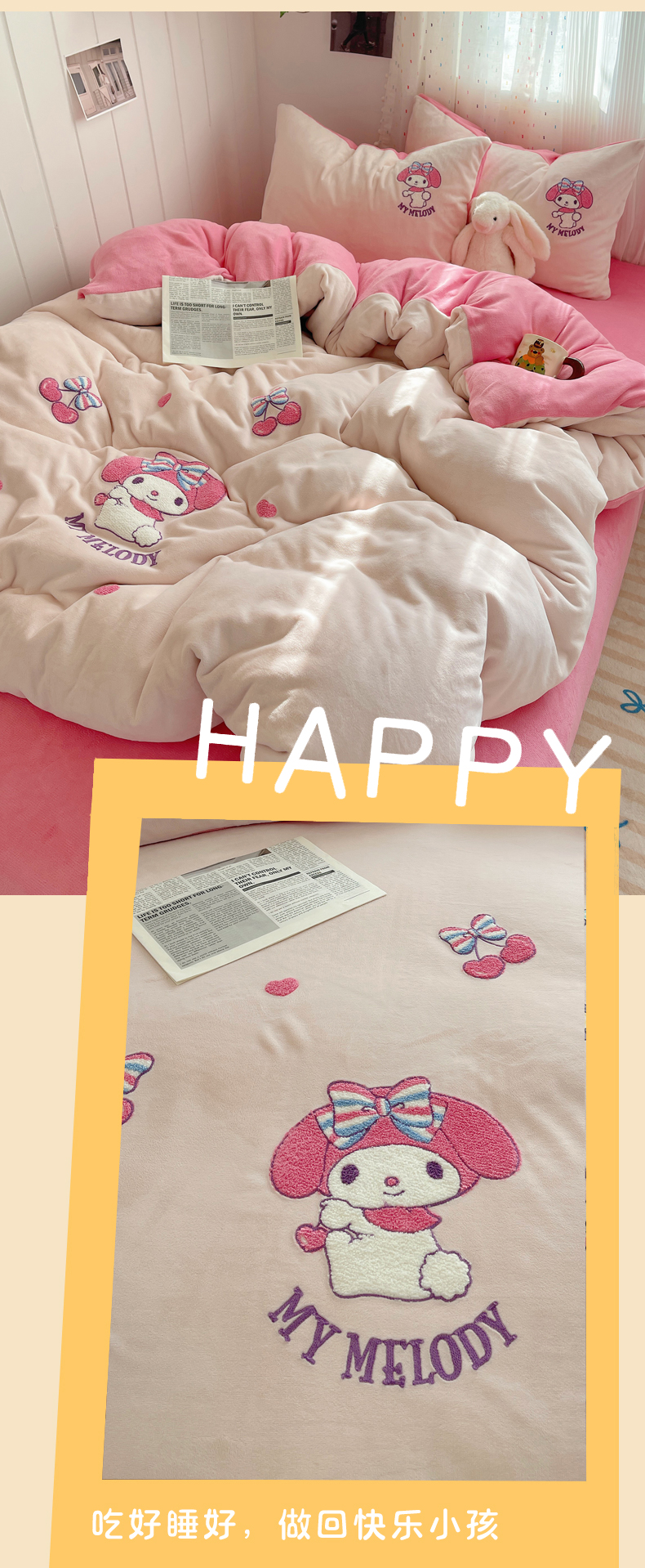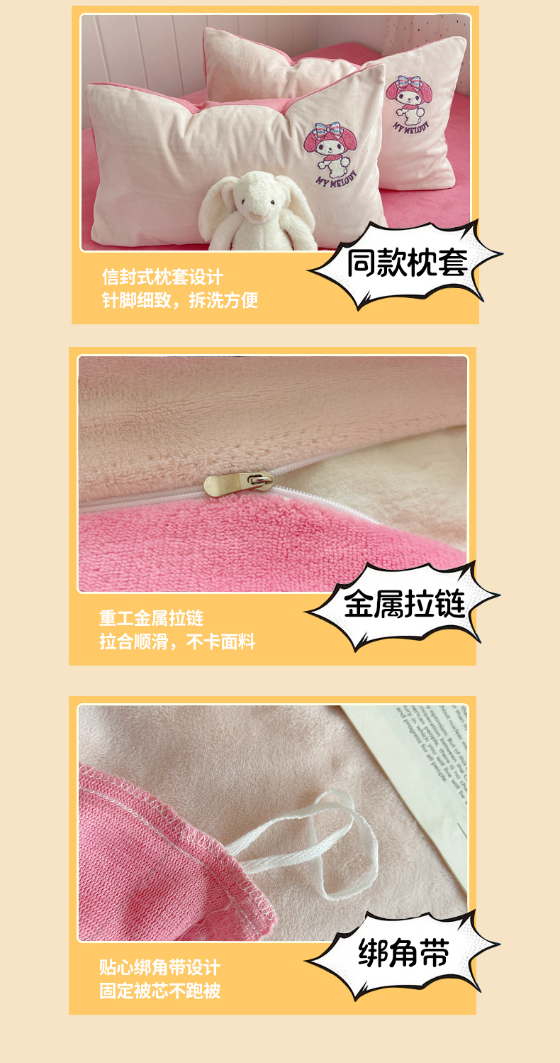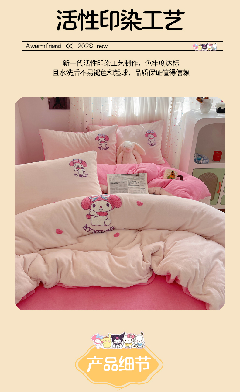 当前位置: 91家纺网 > 商品网购 > 床品套件 > 四件套 > 牛奶绒四件套 > 三朵家纺 2025新款绣花牛奶绒三丽鸥系列四件套 樱桃美乐蒂