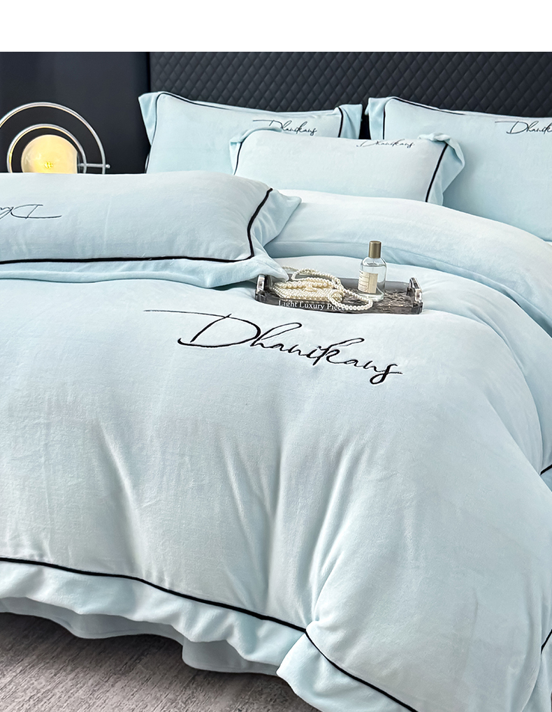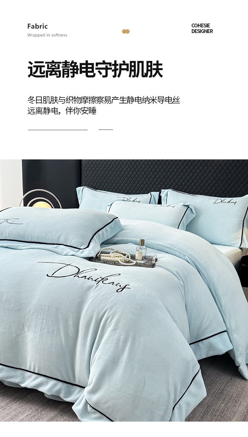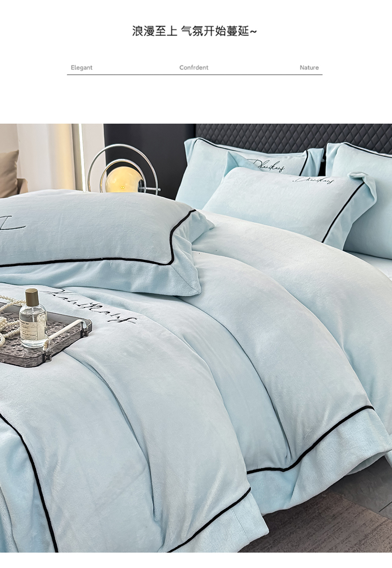 商品名称:KA家纺 2025新款冬轻奢刺绣款嵌绳大拼角牛奶绒四件套 轻奢牛奶绒-蓝