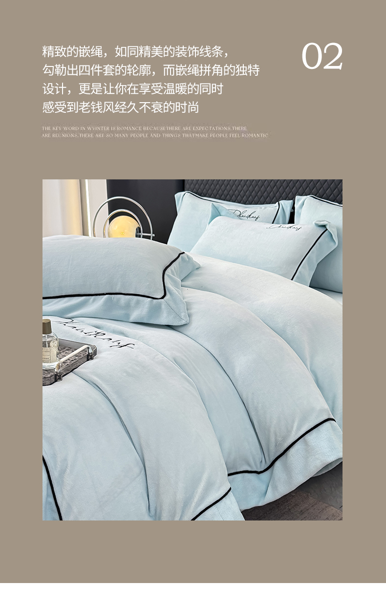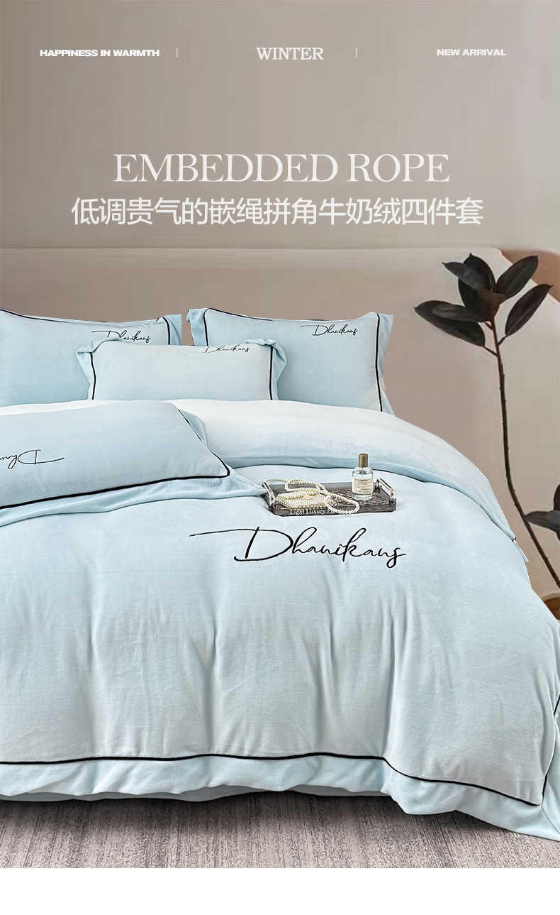 (总)KA家纺 2025新款冬刺绣款宽边拼角牛奶绒四件套-沐言系列,沐言蓝,沐言白+卡其,沐言白+蓝,沐言粉