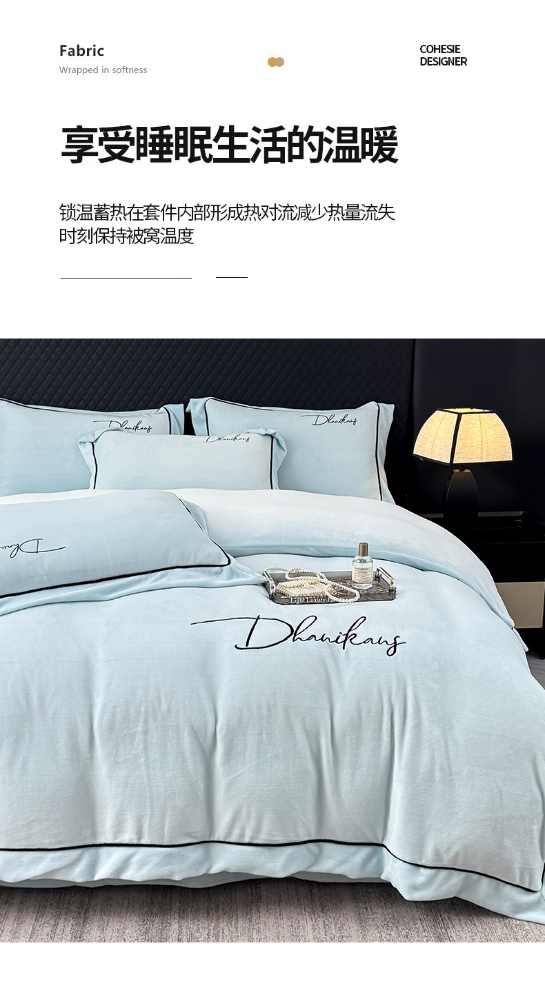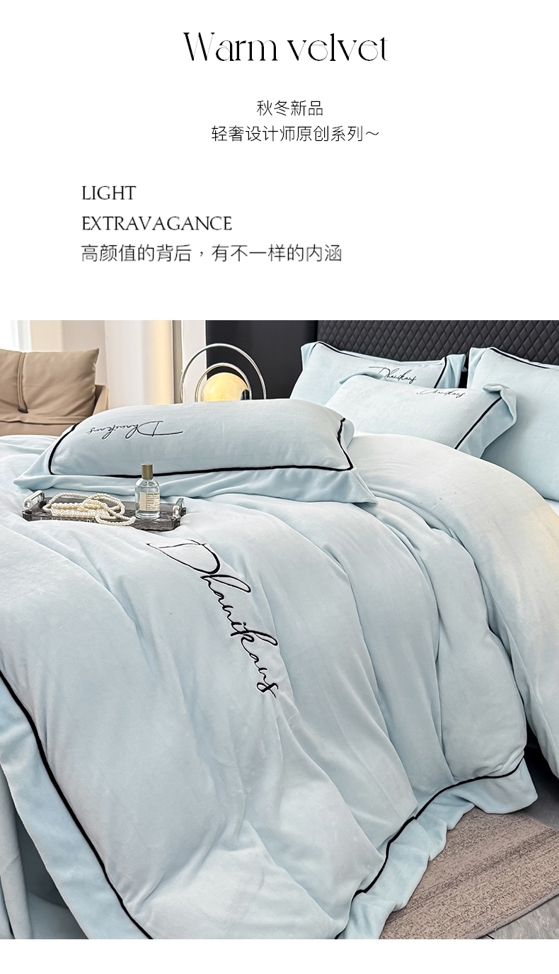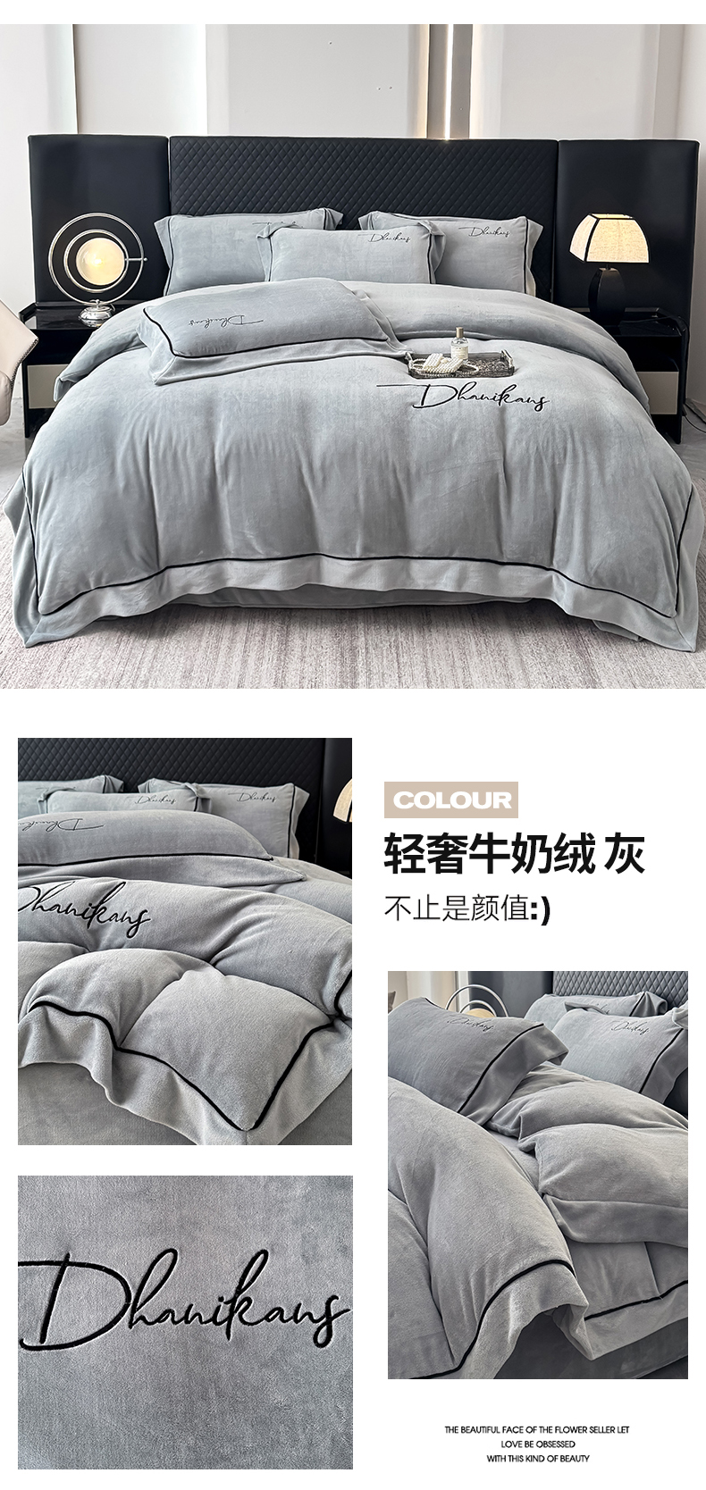 (总)KA家纺 2025新款冬季设计师款牛奶绒刺绣四件套沐言系列,沐言白+卡其,沐言白+蓝,沐言粉,沐言蓝