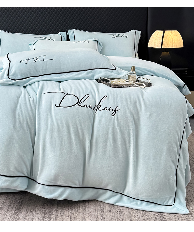 KA家纺 2025新款冬轻奢刺绣款嵌绳大拼角牛奶绒四件套 轻奢牛奶绒-蓝