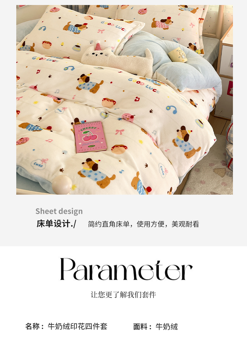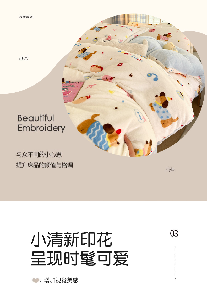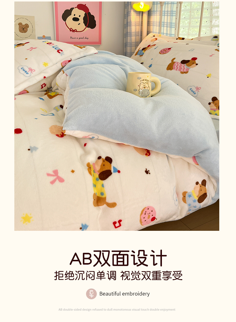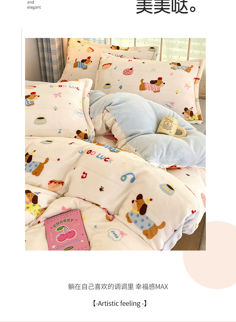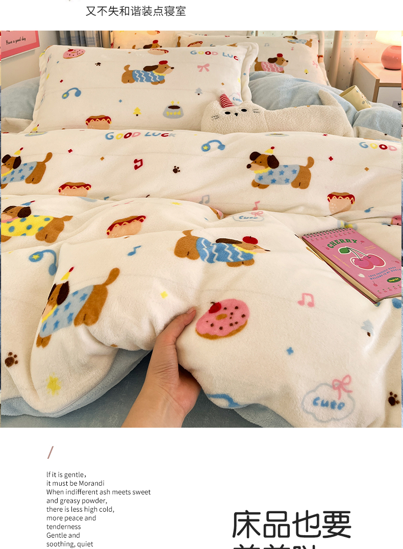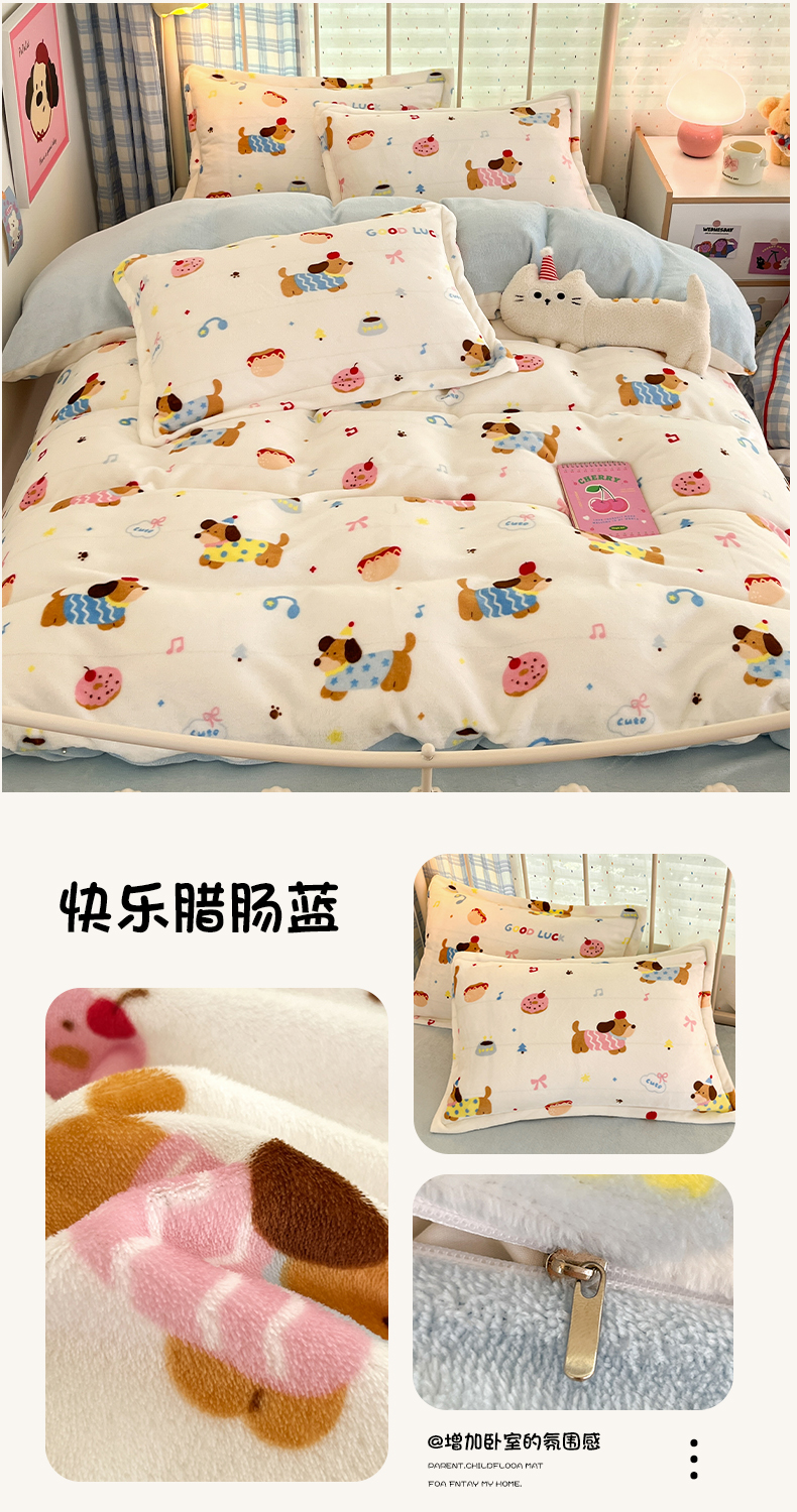 当前位置: 91家纺网 > 商品网购 > 床品套件 > 四件套 > 牛奶绒四件套 > 川悦生活 2025新款加厚牛奶绒印花四件套 快乐腊肠蓝