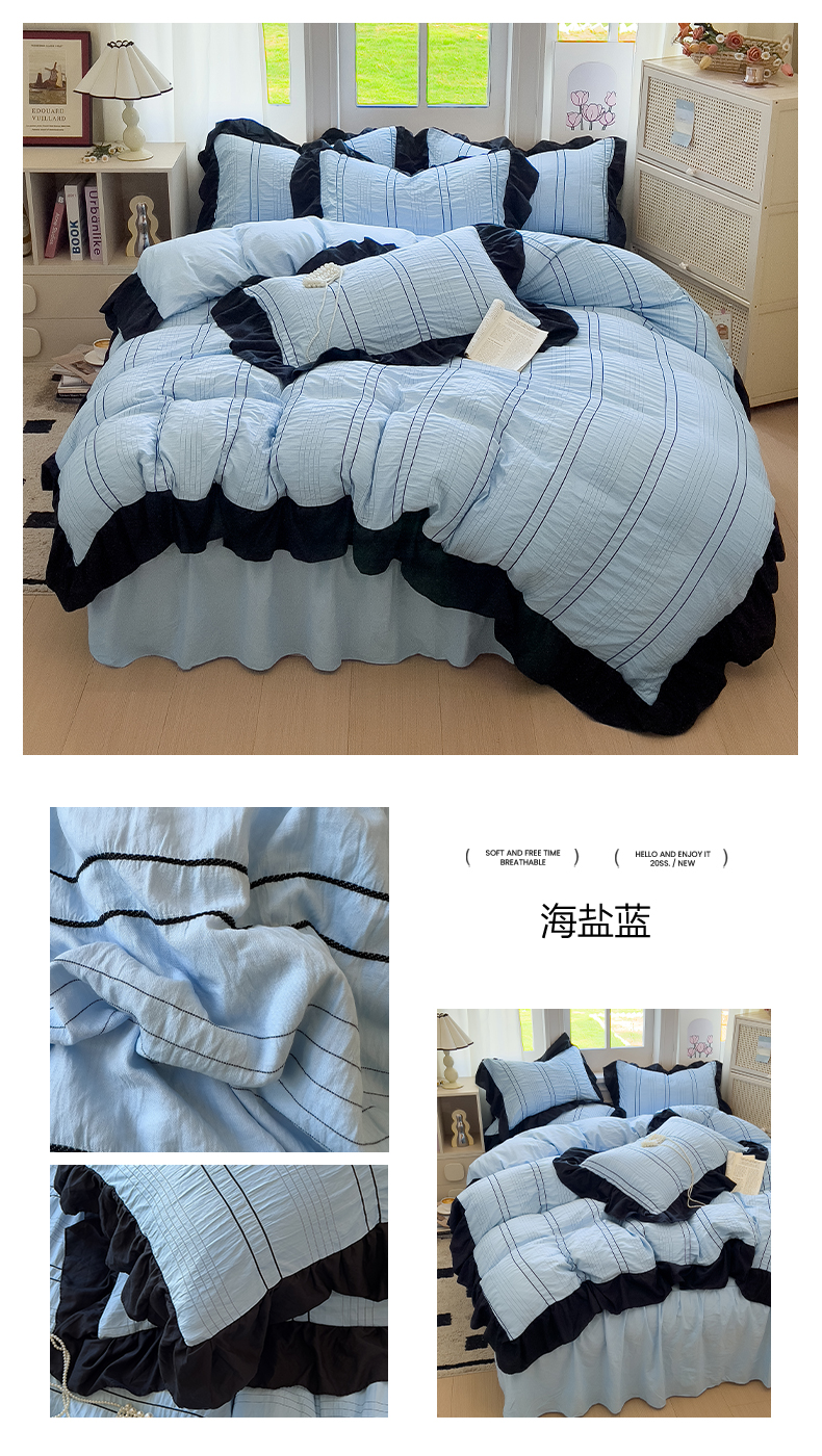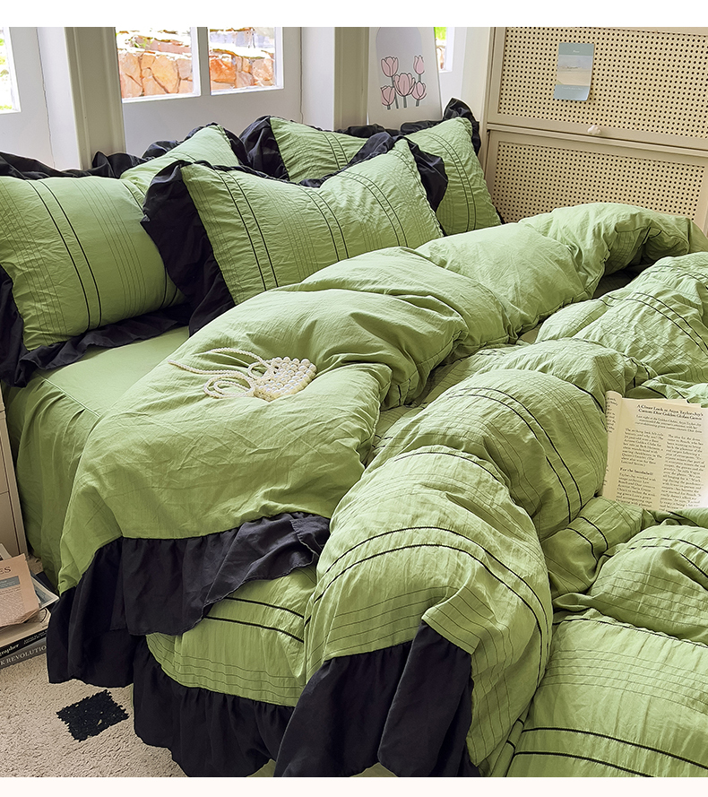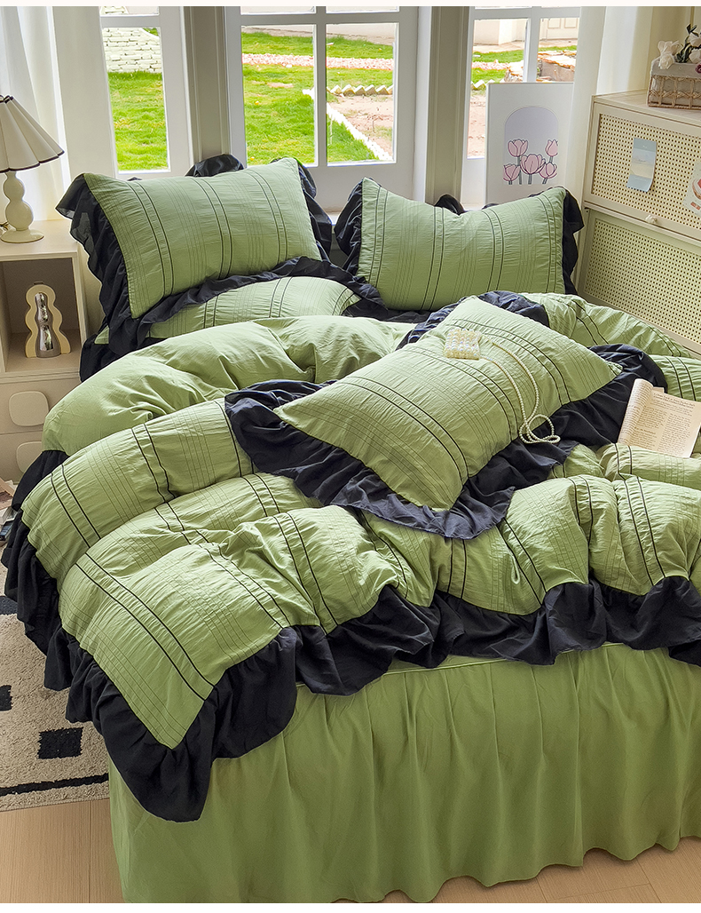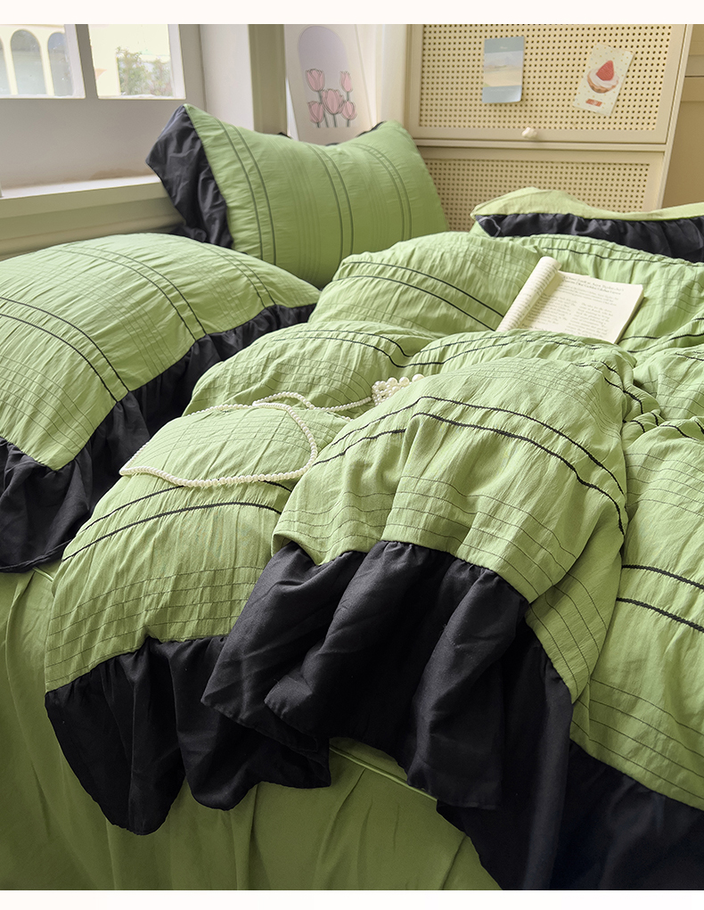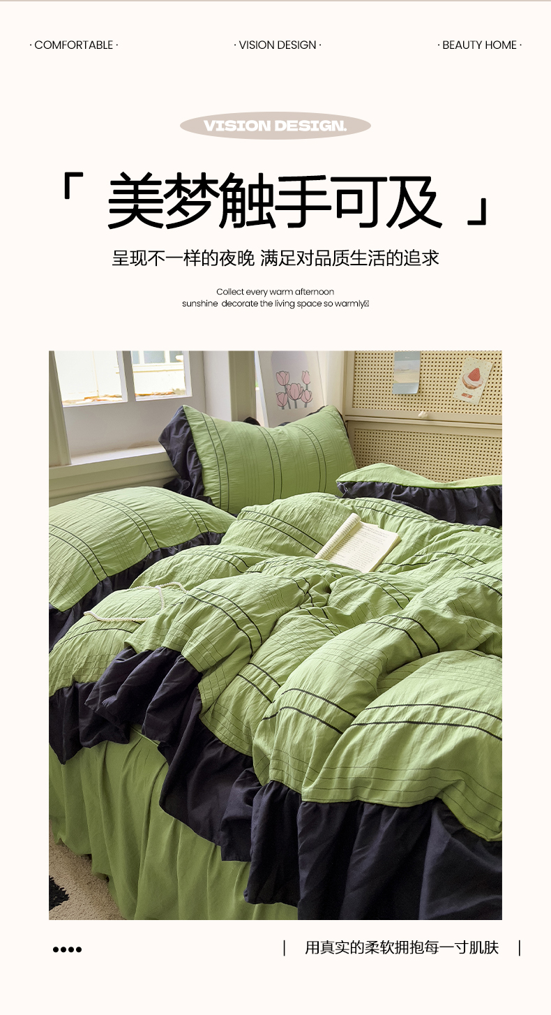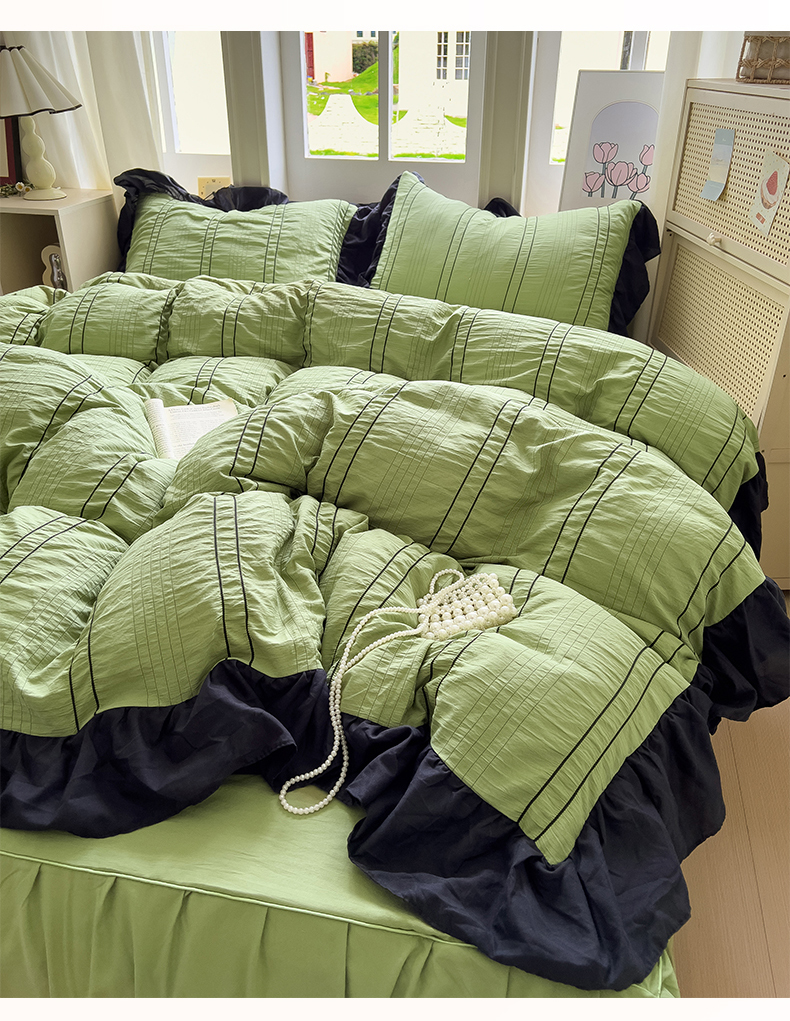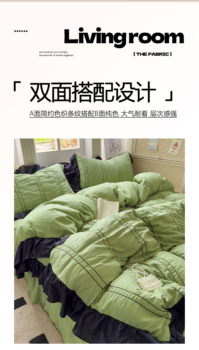 当前位置: 91家纺网 > 商品网购 > 床品套件 > 四件套 > 化纤普通四件套 > 优卡迪家纺馆 2025新款色织泡泡纱花边四件套 豆蔻绿
