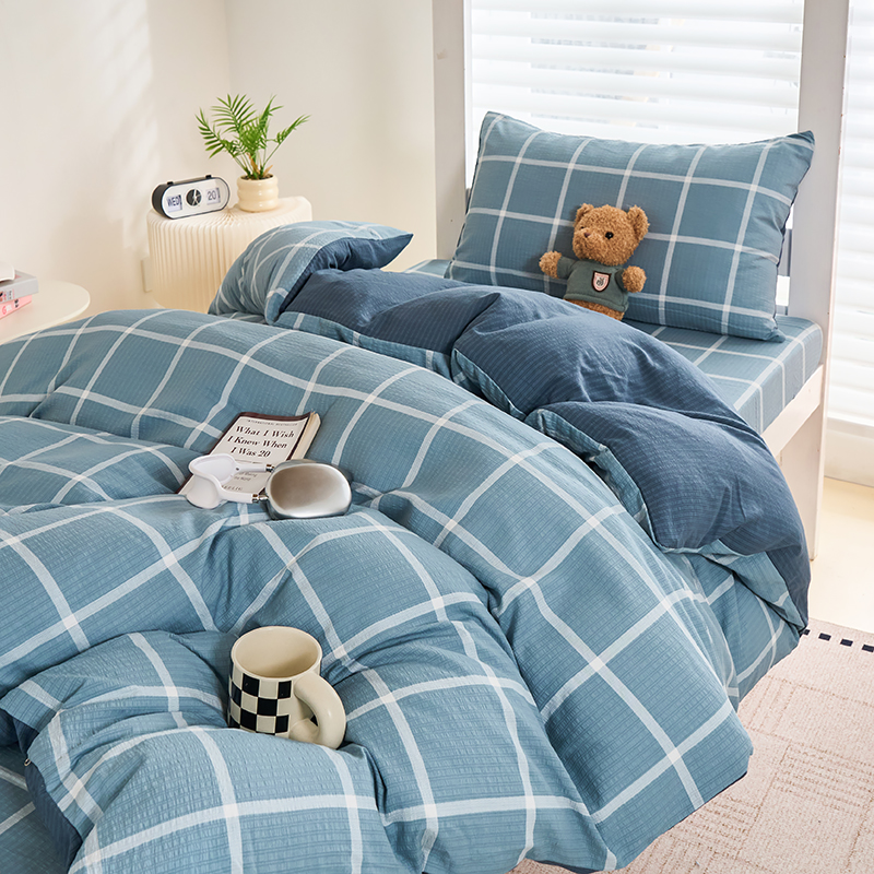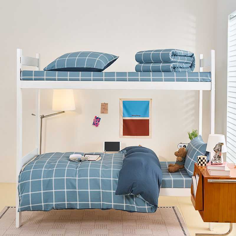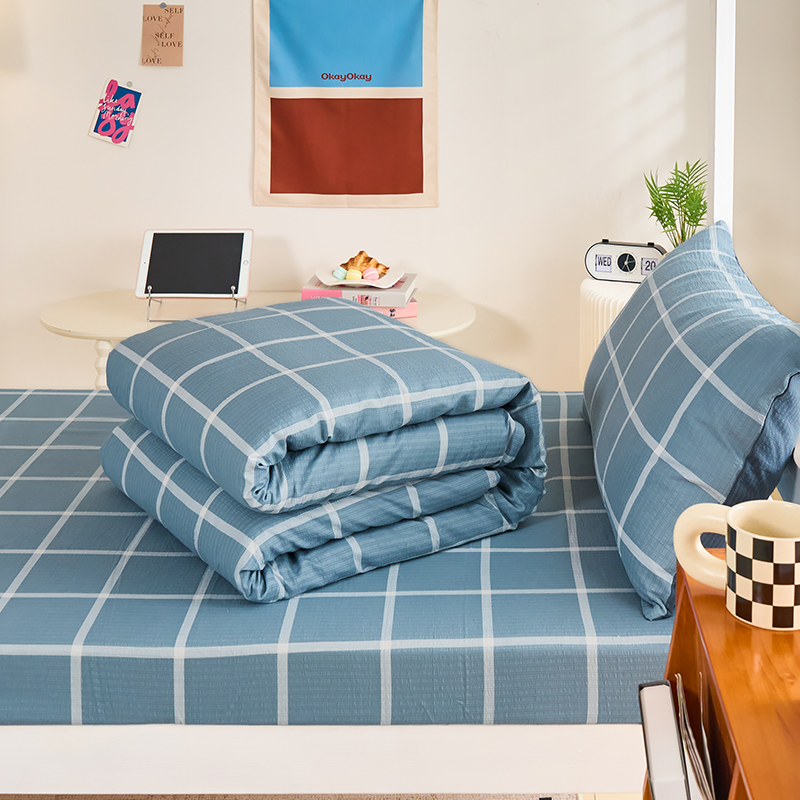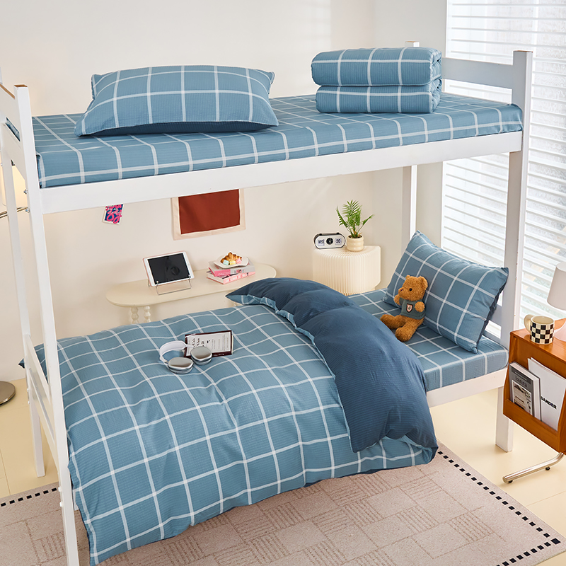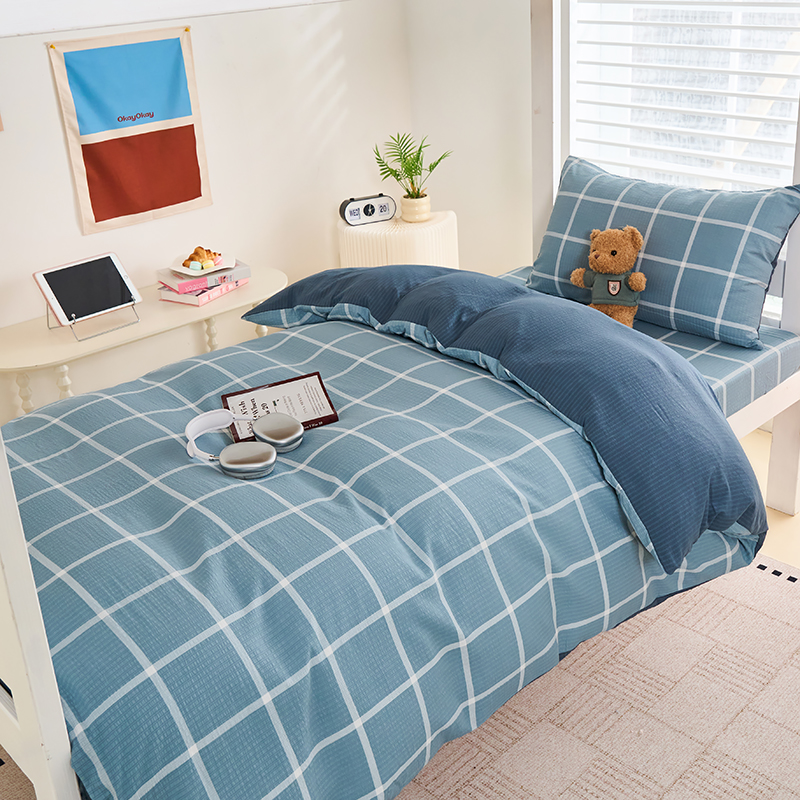 商品名称:卢赛尔 2025新款简约格子水洗学生季学生宿舍三件套 莫奈-兰