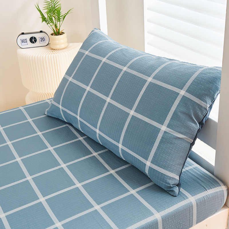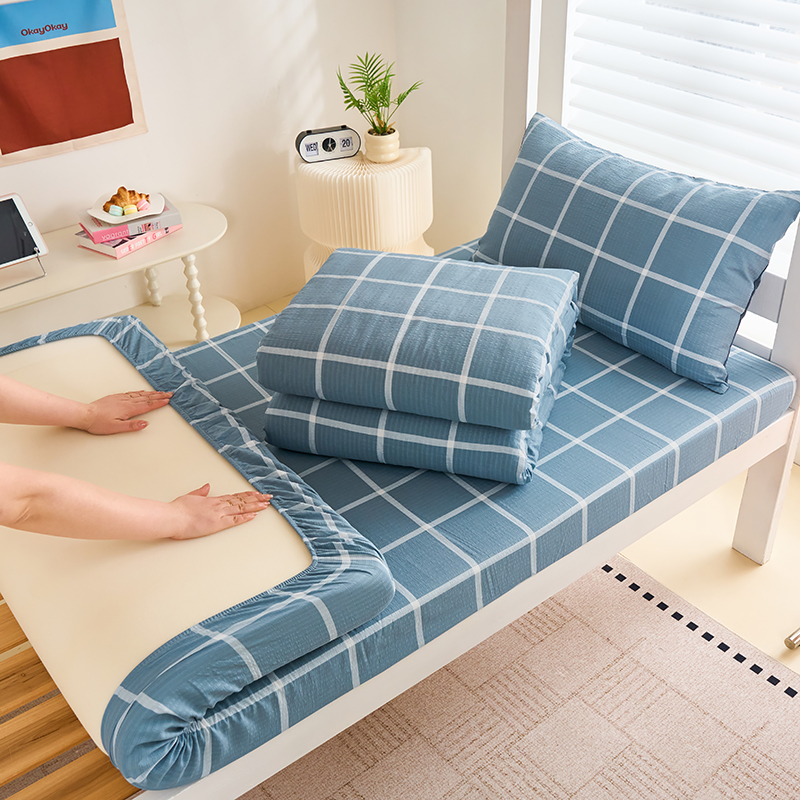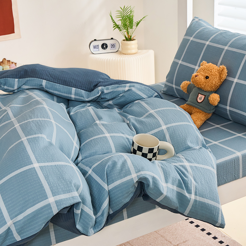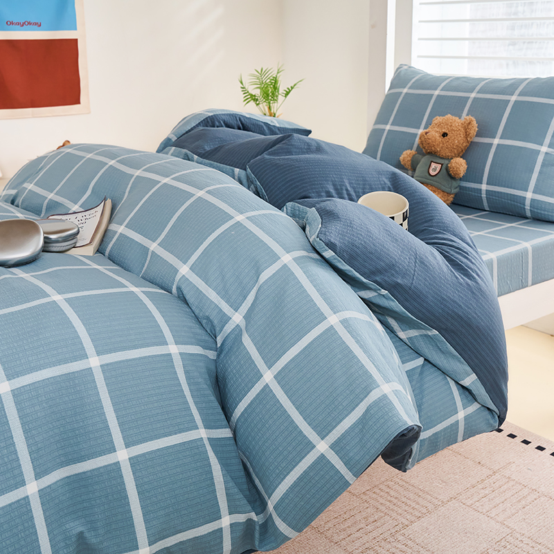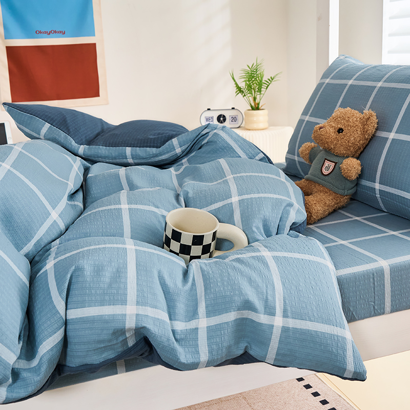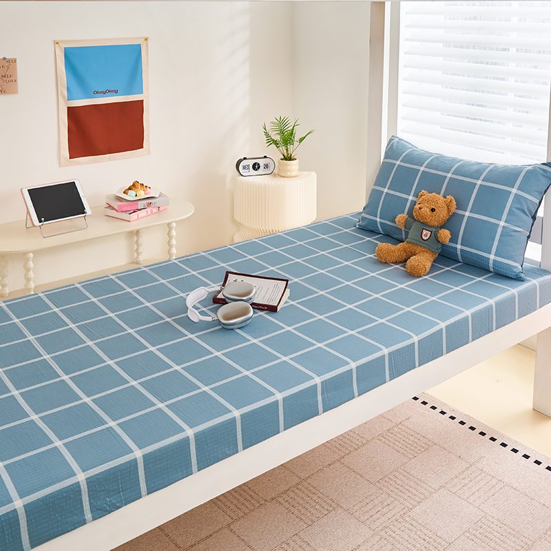 商品名称:卢赛尔 2025新款简约格子水洗学生季学生宿舍三件套 莫奈-兰