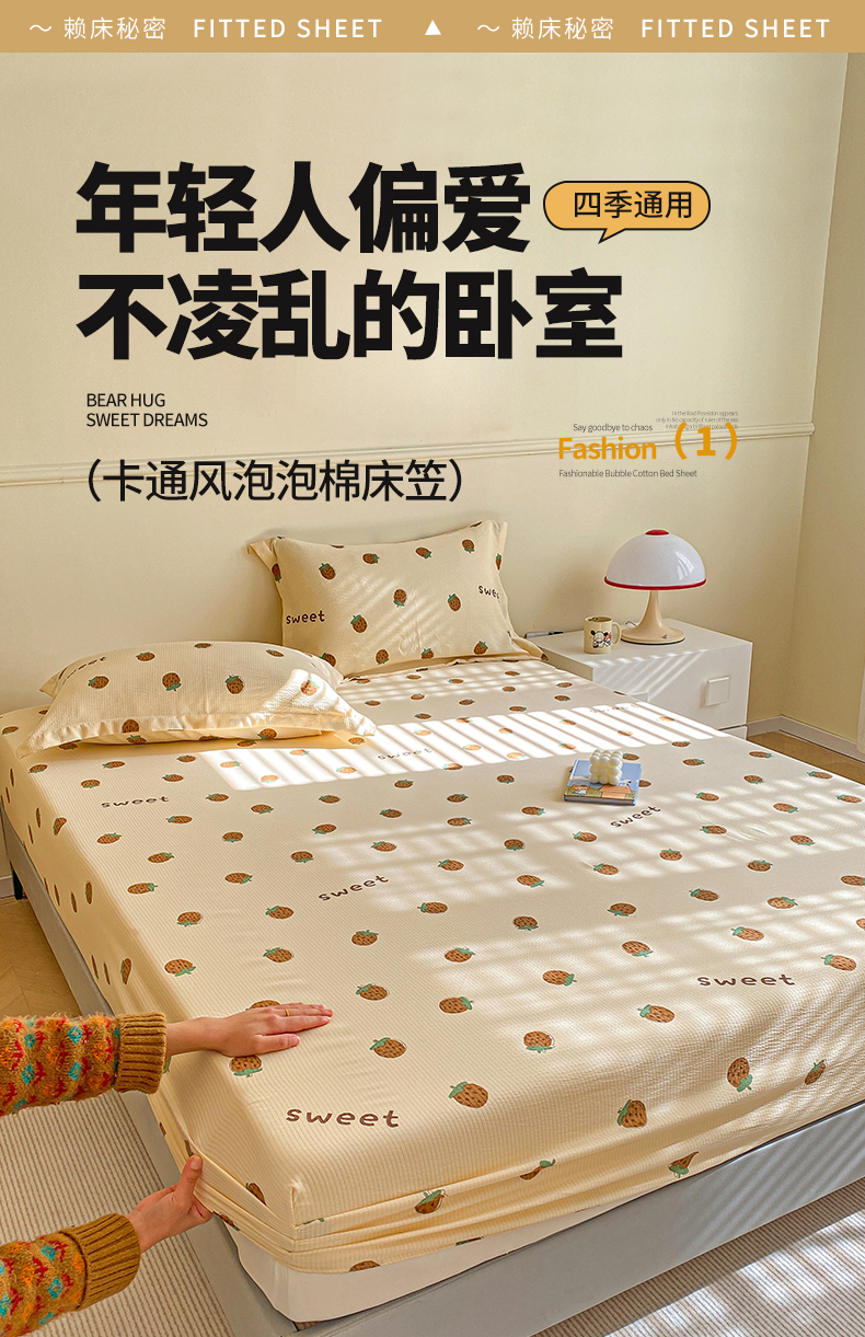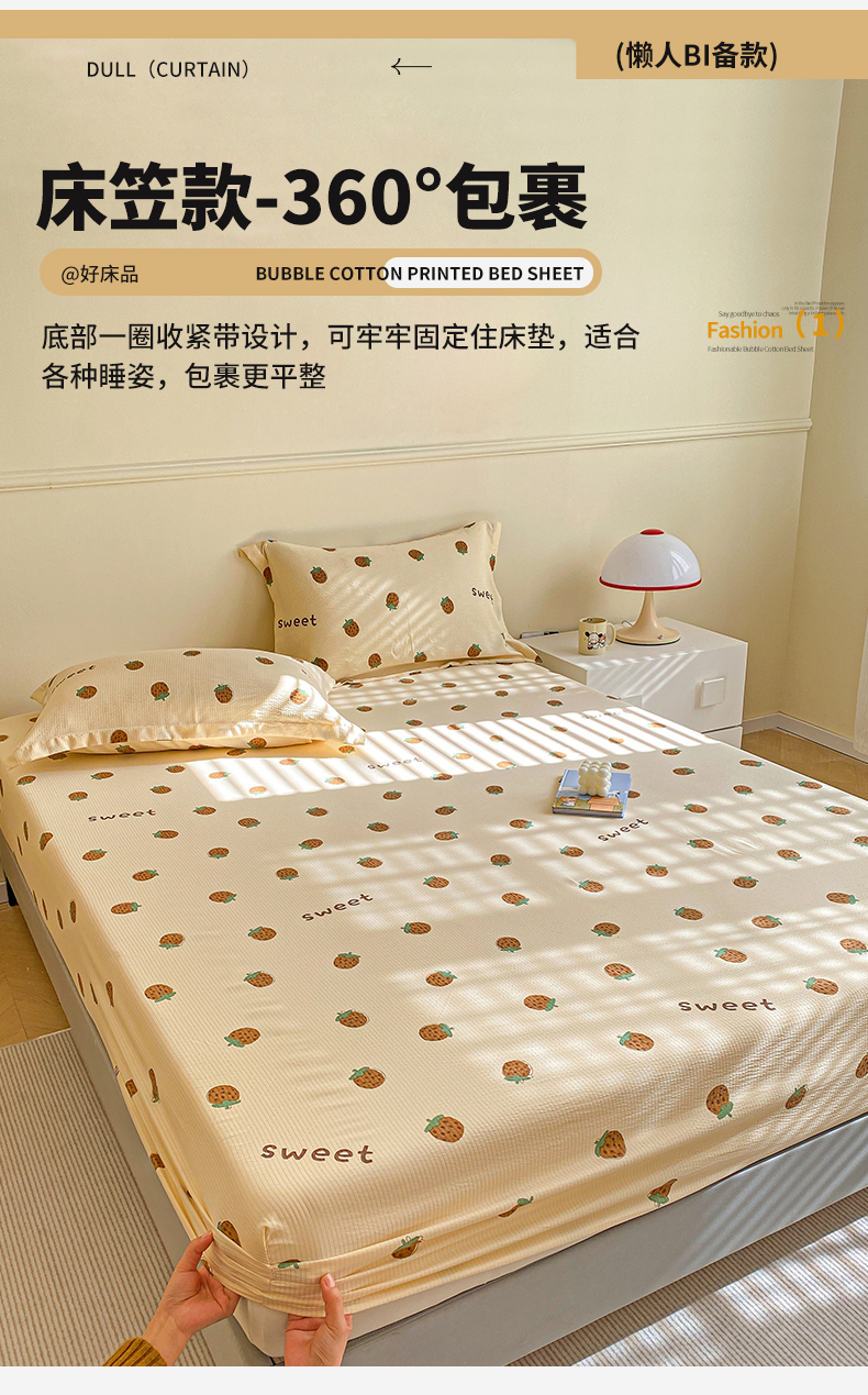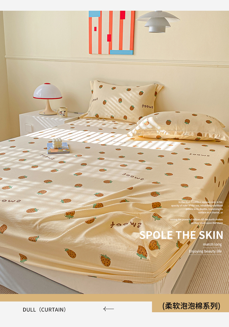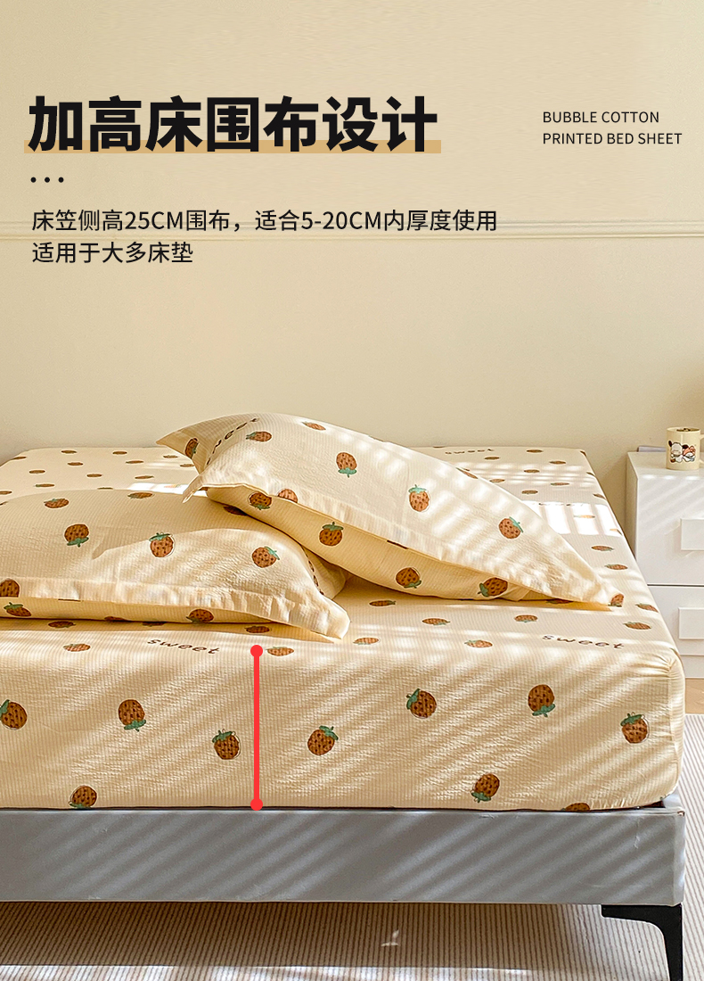恬澳家纺 2025新款A类印花泡泡棉床笠-场景一 甜心草莓