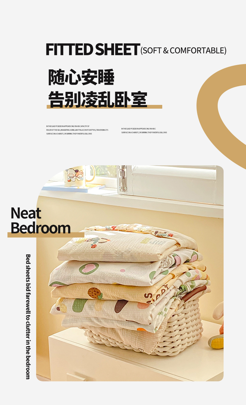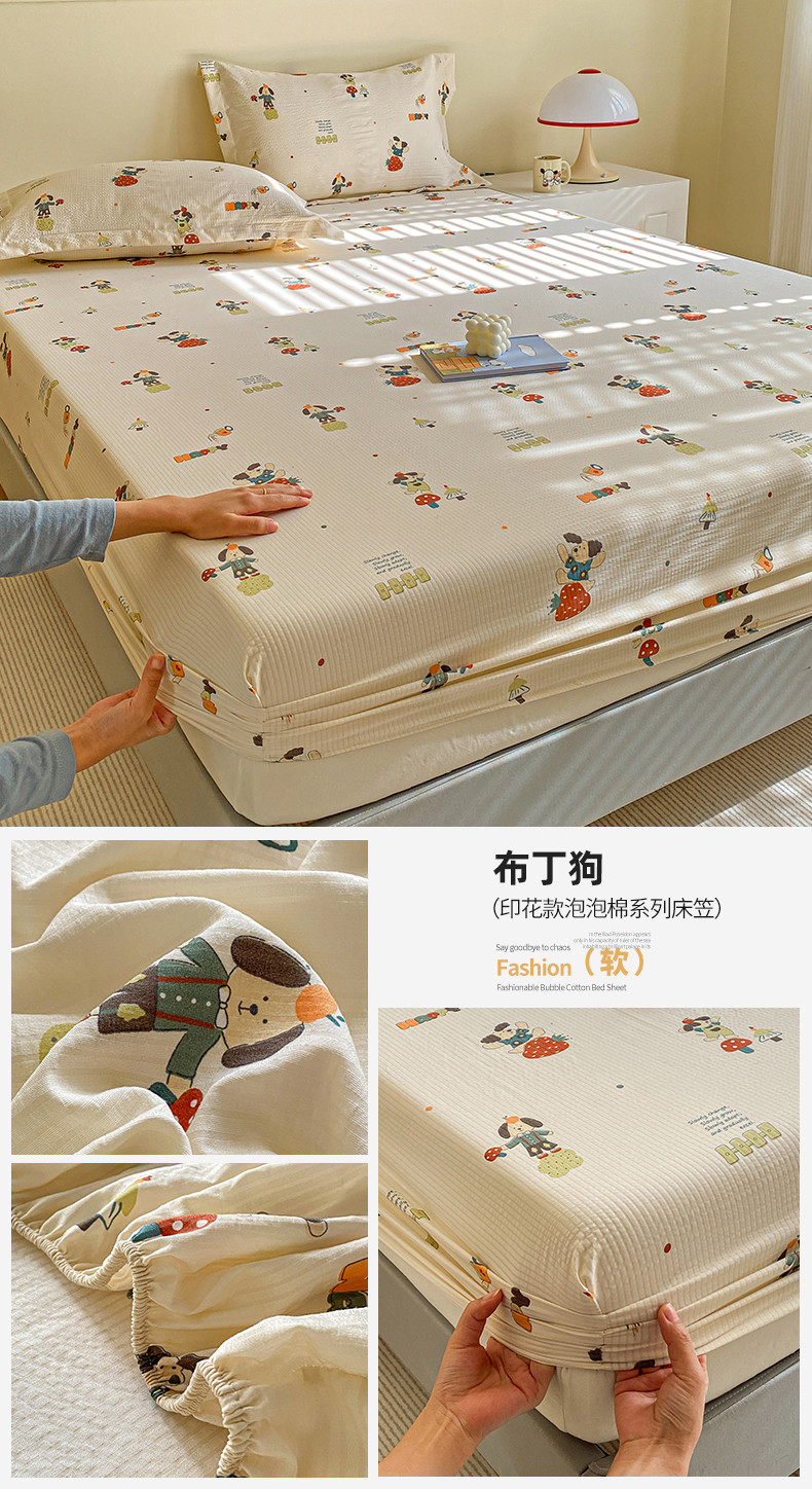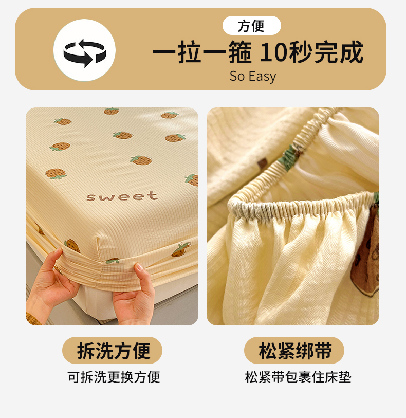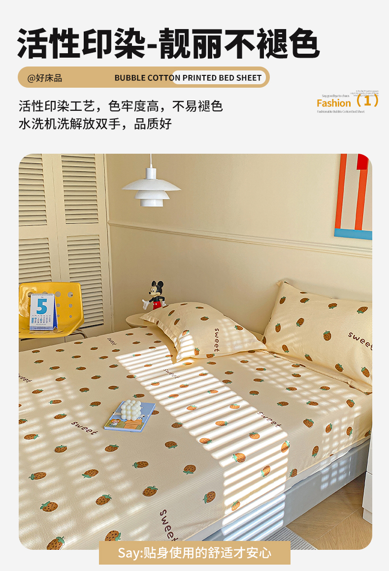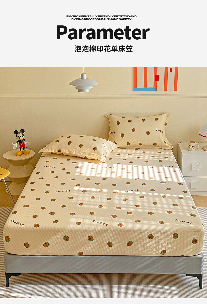 恬澳家纺 2025新款A类印花泡泡棉床笠-场景一 甜心草莓