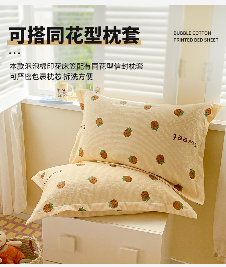 商品名称:恬澳家纺 2025新款A类印花泡泡棉床笠-场景一 甜心草莓