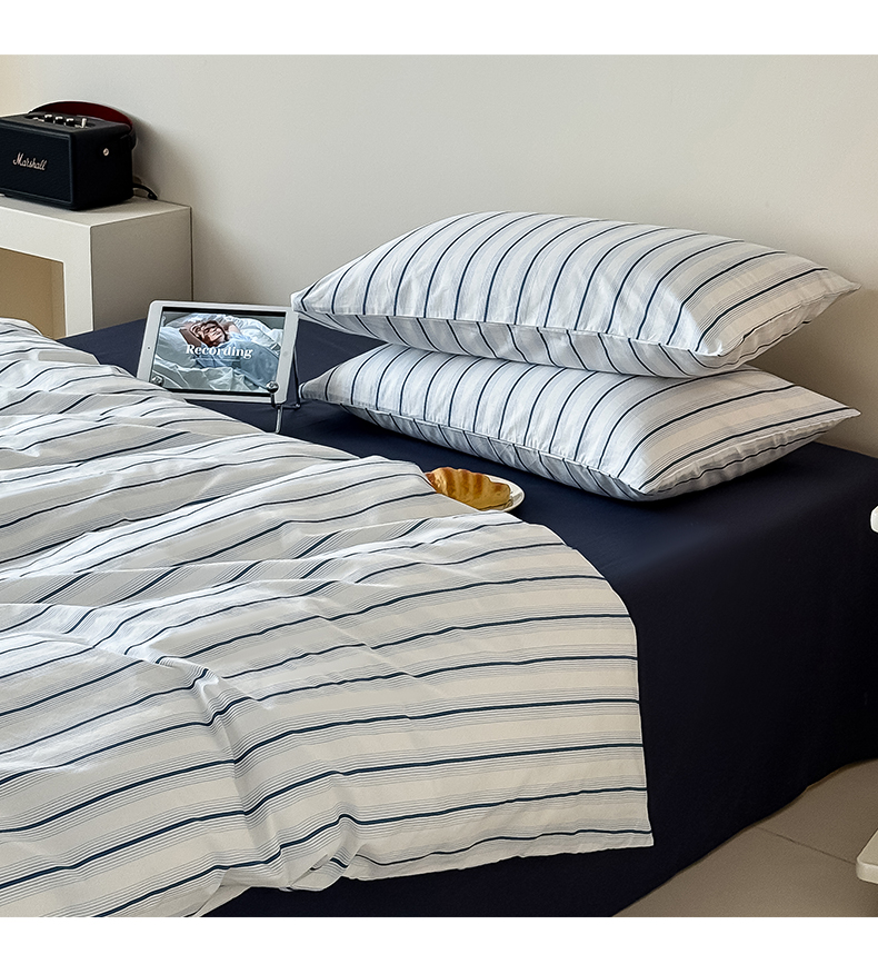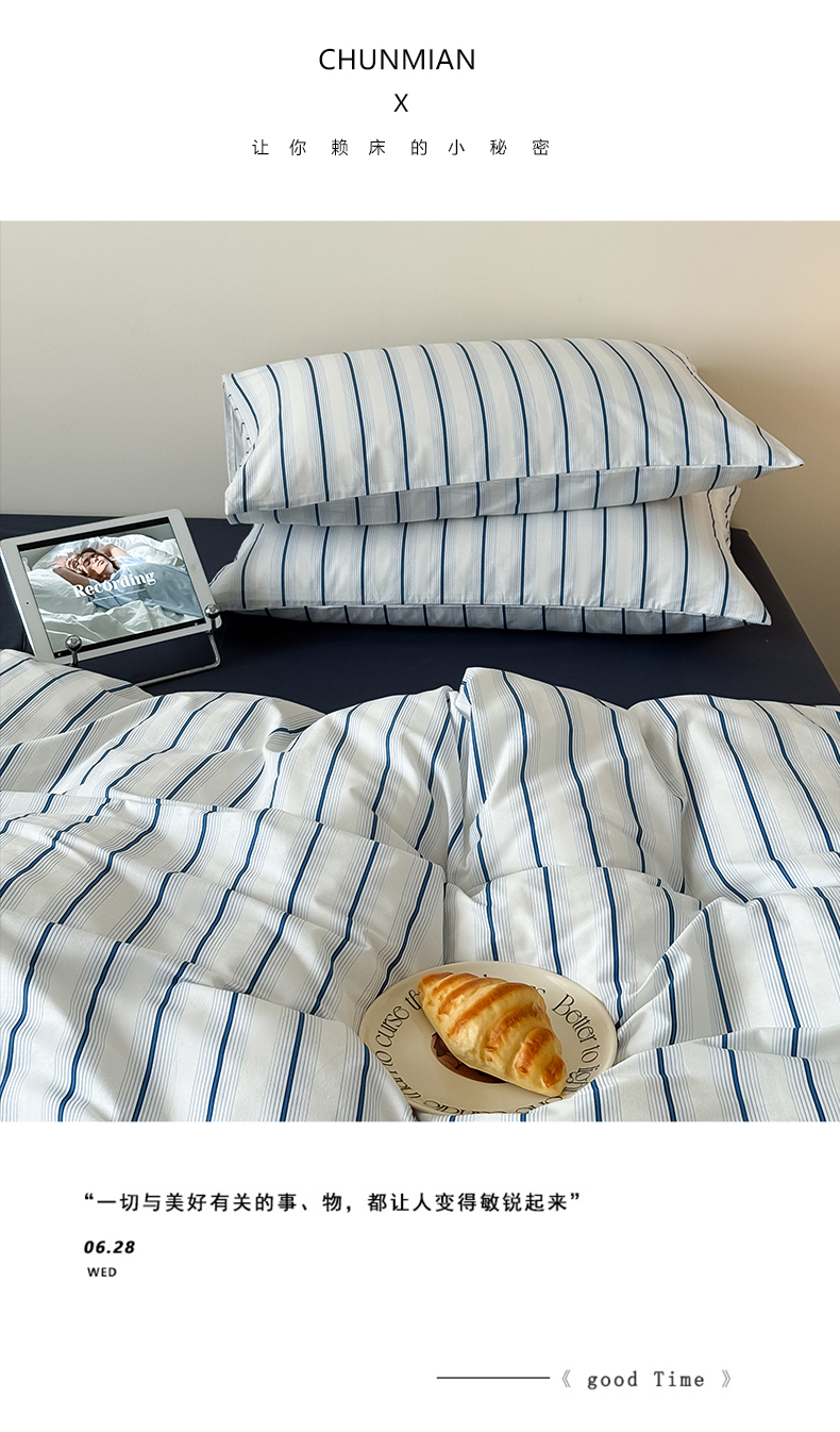 商品名称:Mr.pig猪先生水洗棉 2025新款小清新全棉四件套 假期日记-竖条