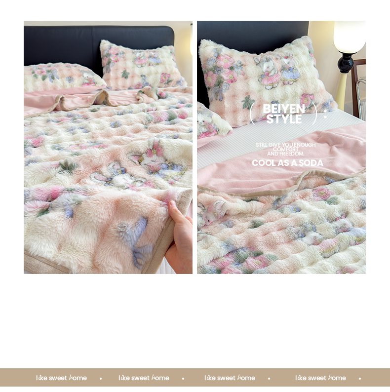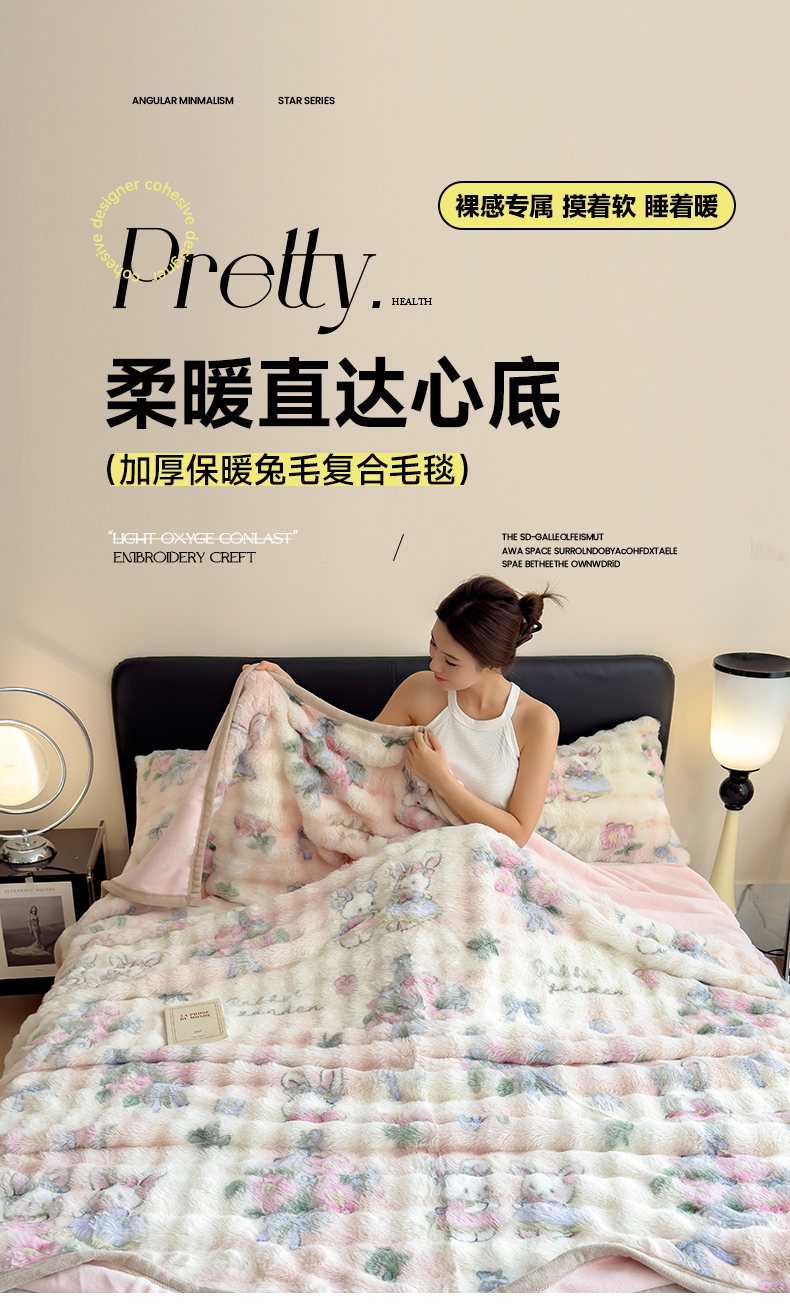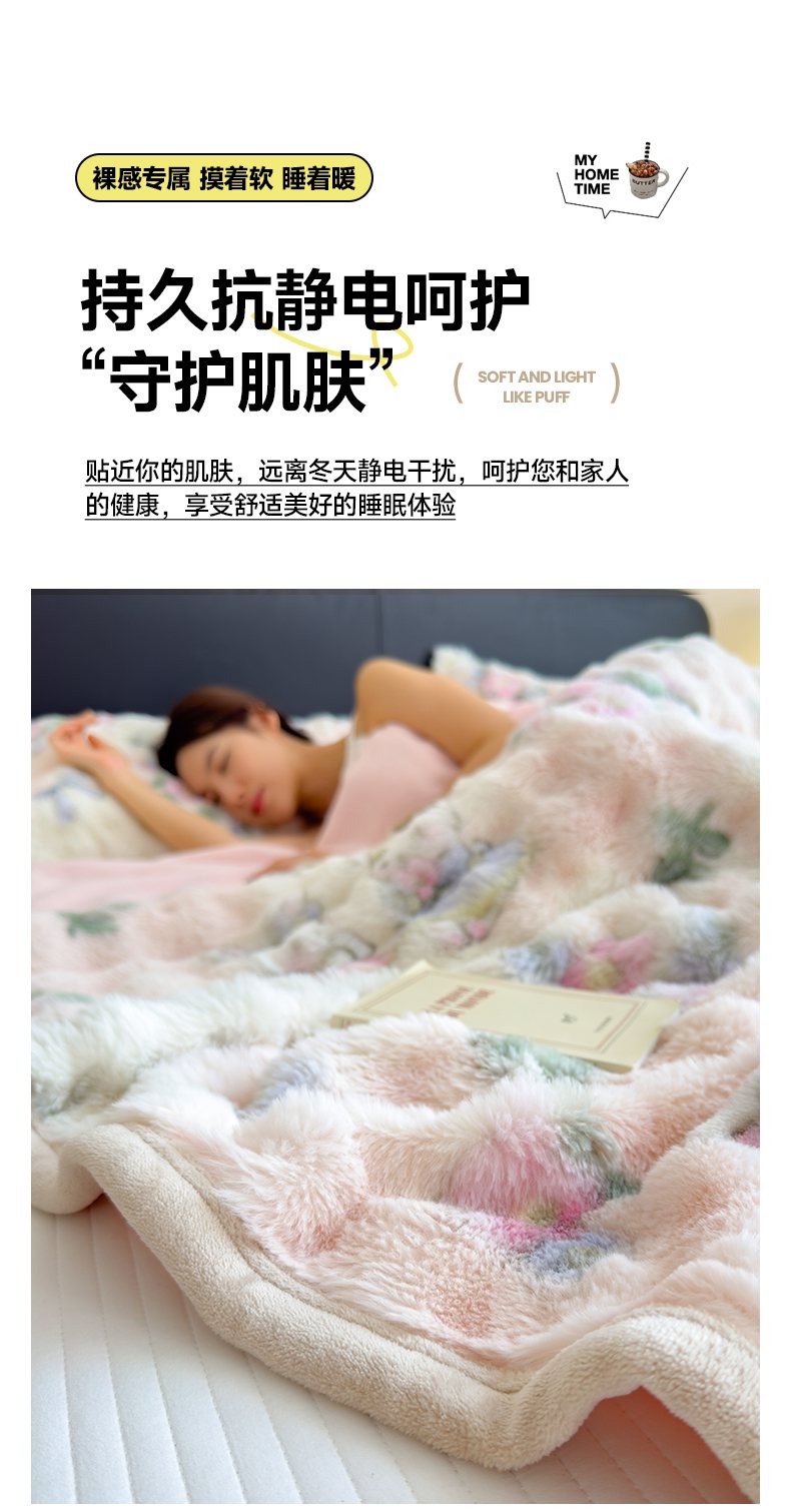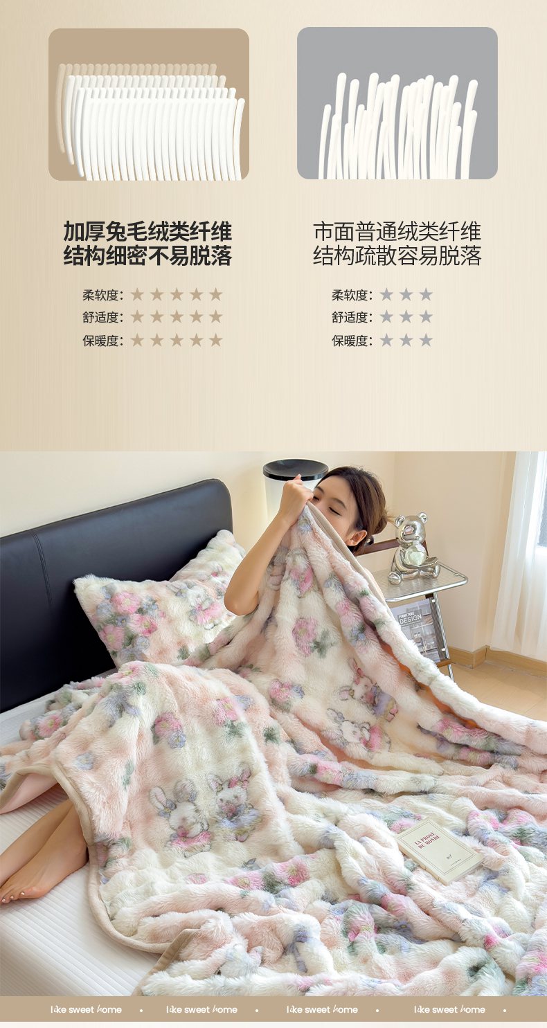 商品名称:摩妮卡 2025新款热款直播600克大泡泡兔毛复合毛毯牛奶绒 友谊见证