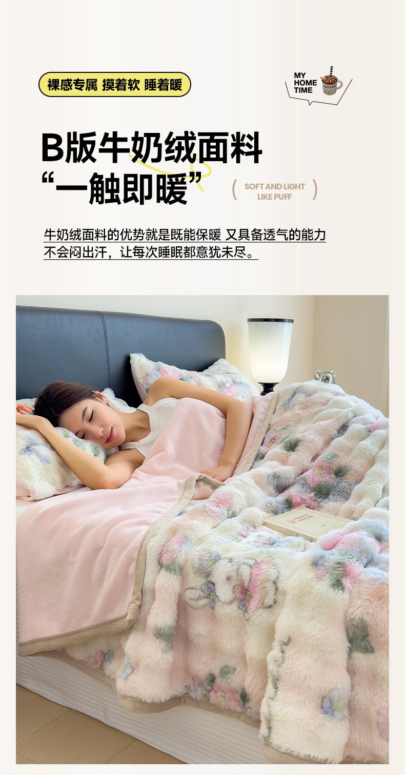 (总)摩妮卡 2025新款热款直播600克大泡泡兔毛复合毛毯牛奶绒,友谊见证,爱吃猫猫,乱花迷境,萌物来袭,暗香紫苑,纯色奶咖,纯色奶绿,公主粉+奶绿,黑色玫瑰,花园蝴蝶,乐乐兔,米白+奶咖,慕颜,轻纱漫舞,小乖乖,小奶狗,馨莉,熊猫噗噗,组合图