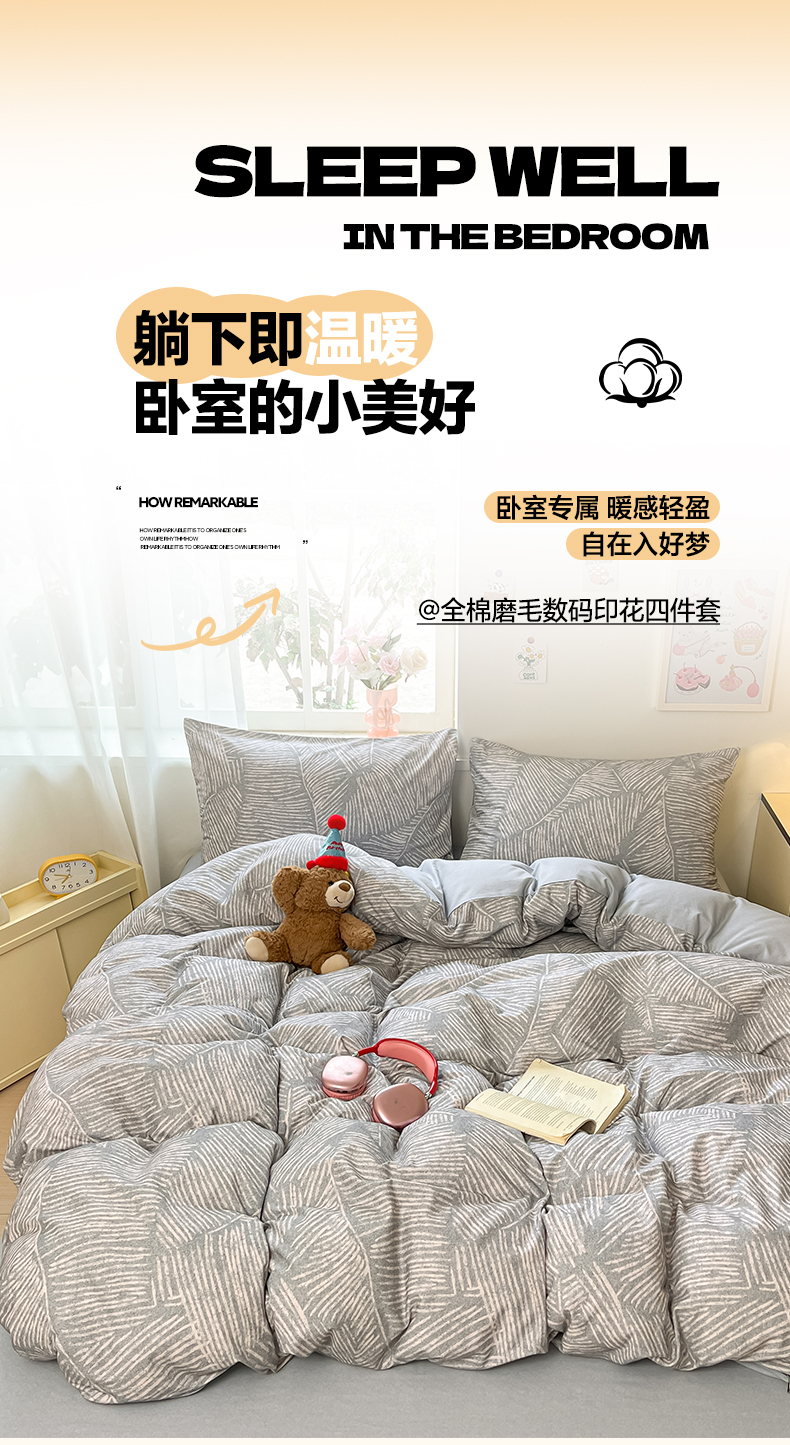 当前位置: 91家纺网 > 商品网购 > 床品套件 > 四件套 > 普通磨毛四件套 > 西引力 2025新款纯棉磨毛数码印花单品四件套 羽叶
