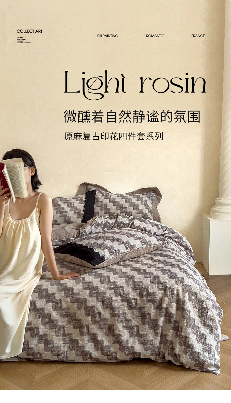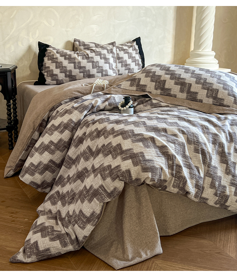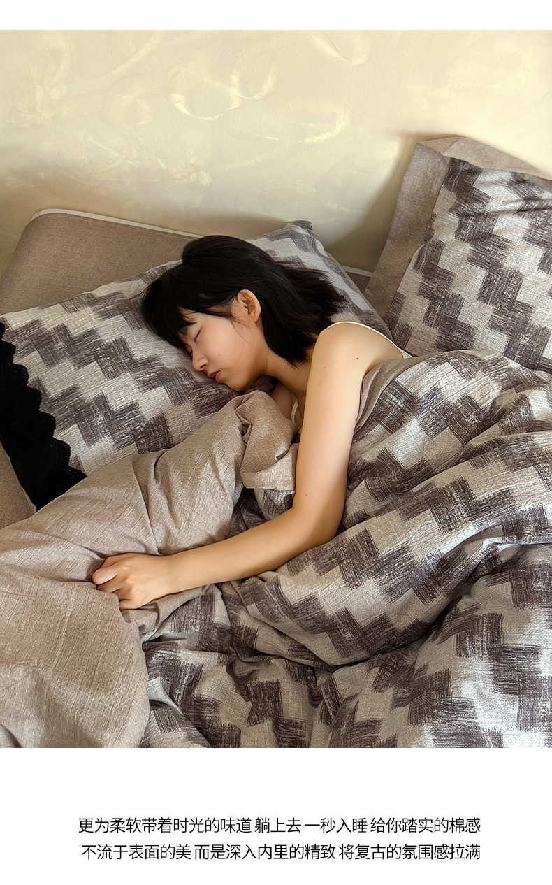 商品名称:繁花家居 2025秋冬磨毛复古亚麻棉麻提花超软四件套 摩登锯韵