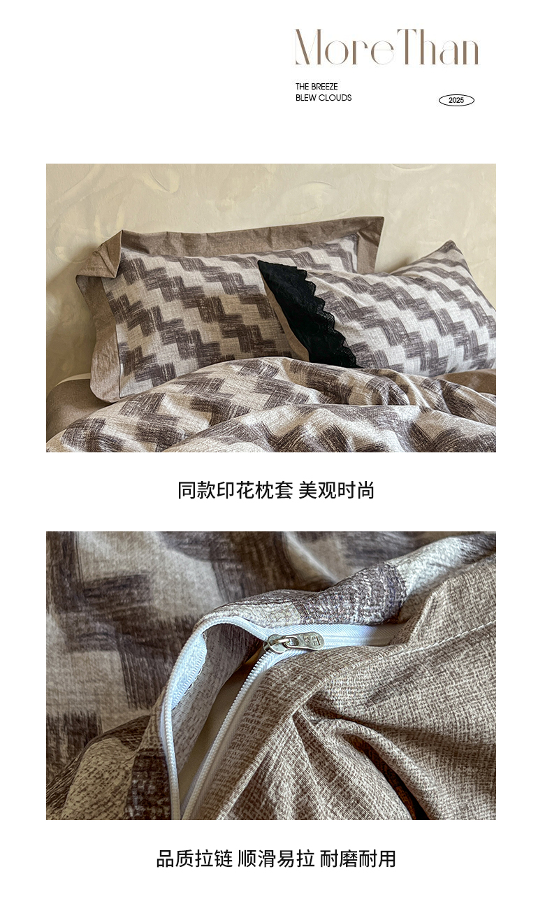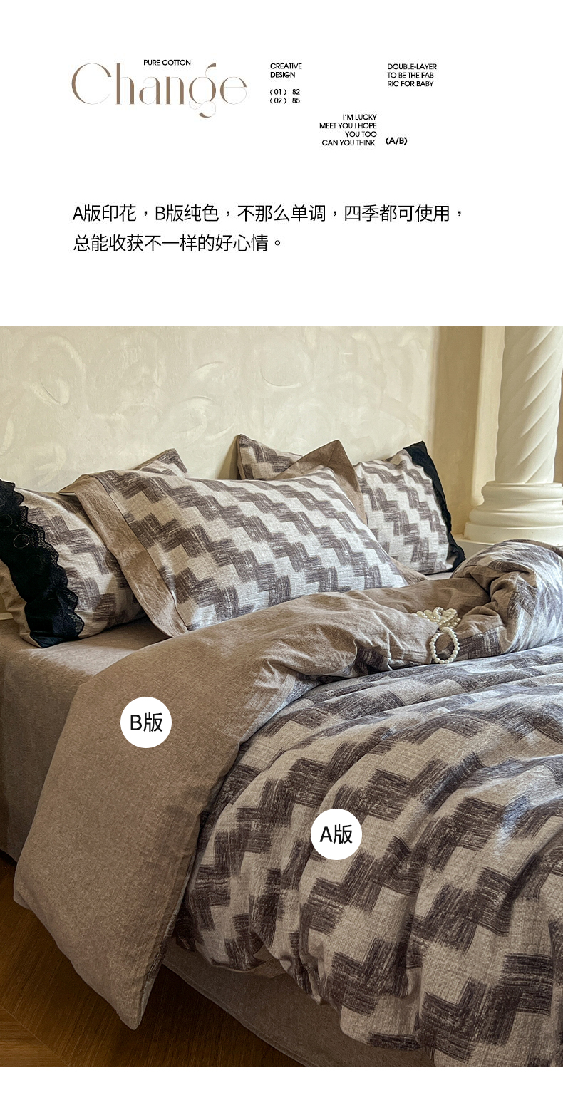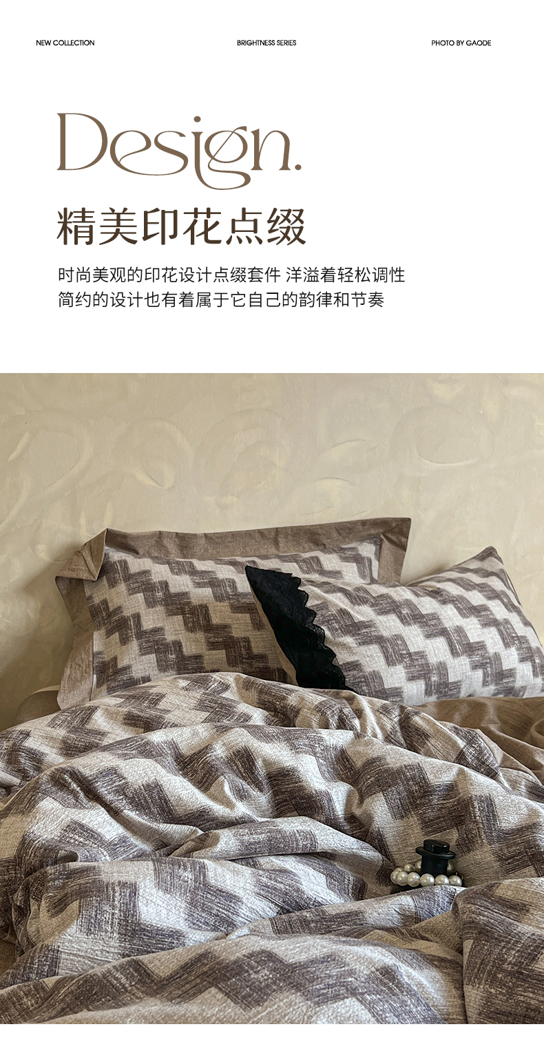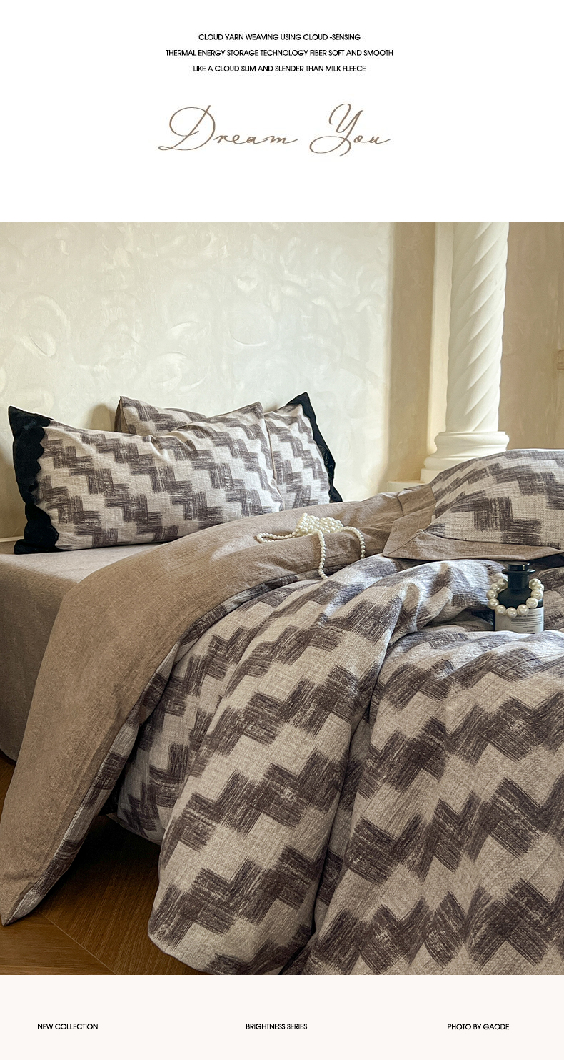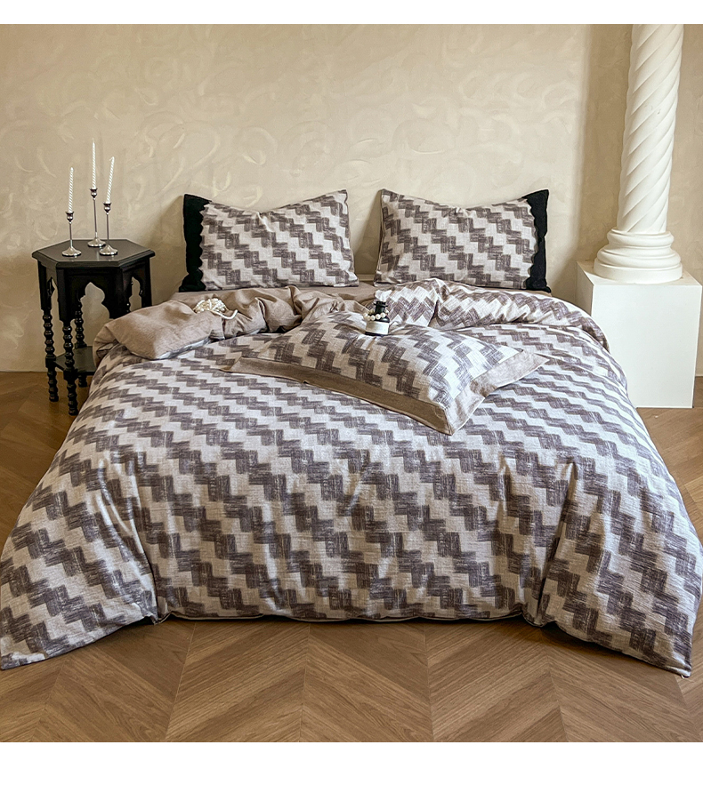 繁花家居 2025秋冬磨毛复古亚麻棉麻提花超软四件套 摩登锯韵