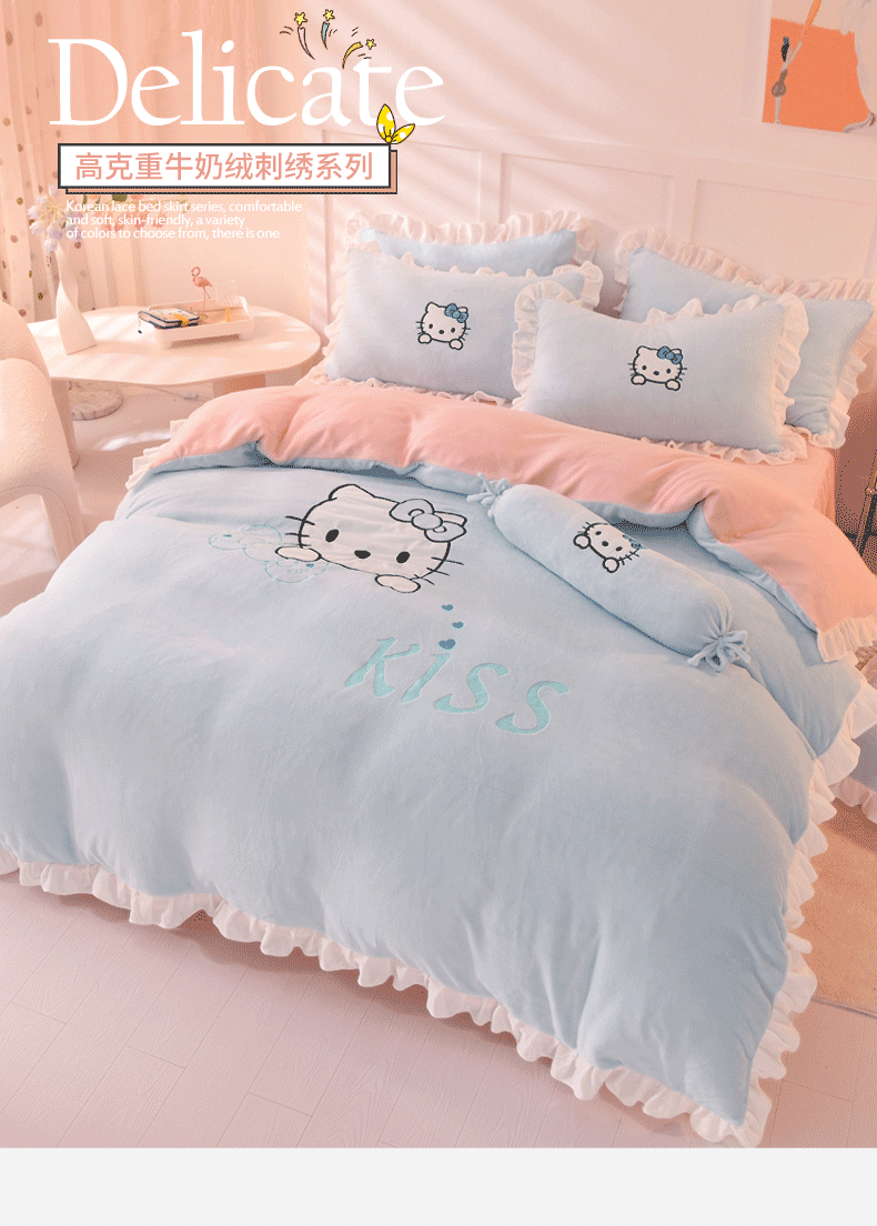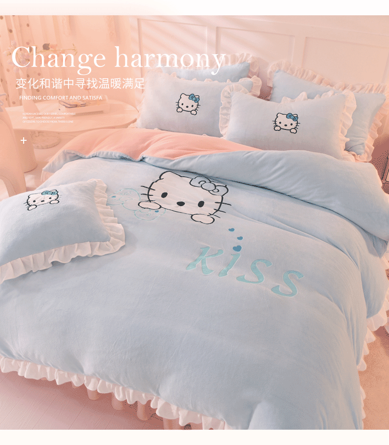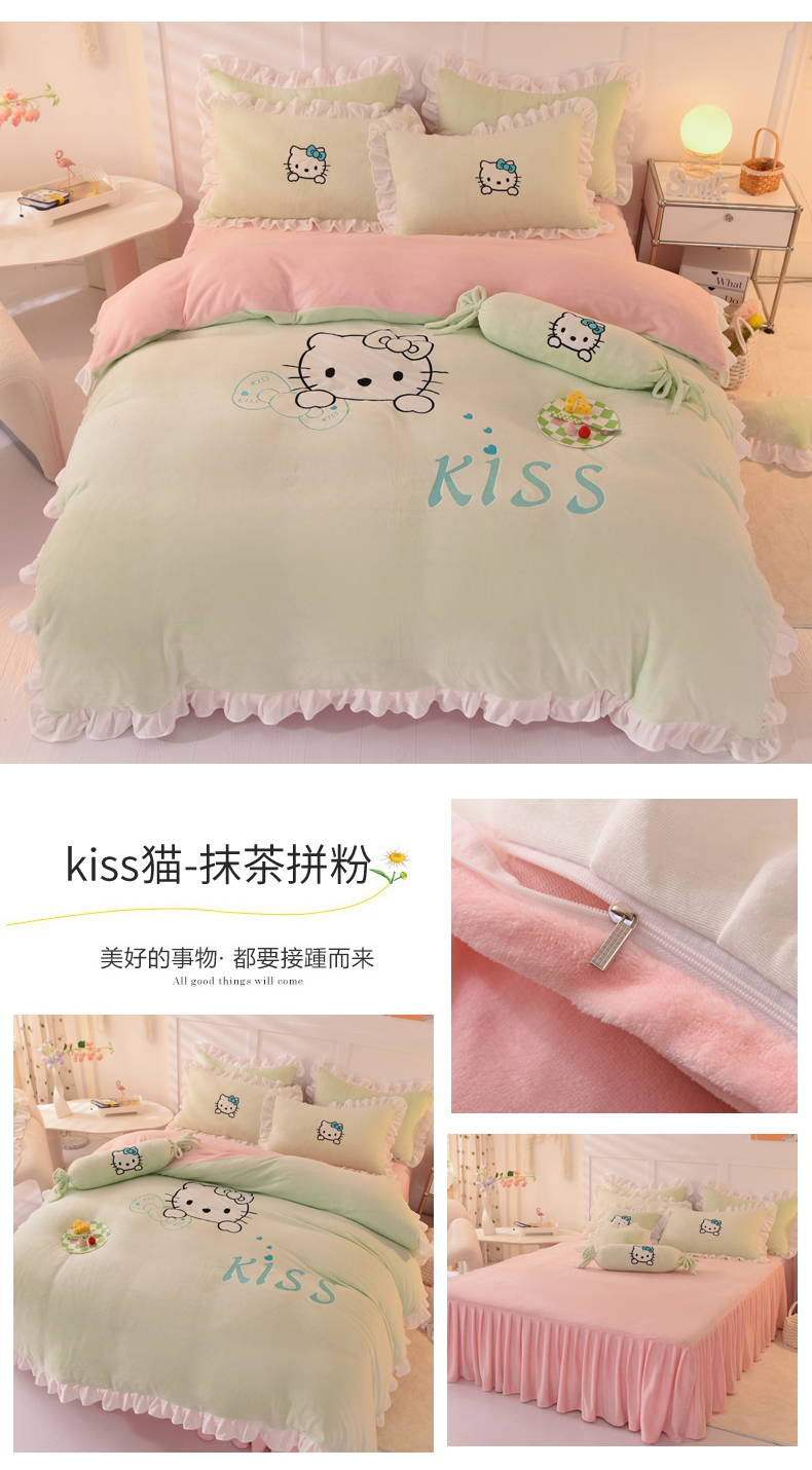 当前位置: 91家纺网 > 商品网购 > 床品套件 > 四件套 > 牛奶绒四件套 > 丝印良品 2025新款高端牛奶绒卡通刺绣牛奶绒四件套 kiss猫-蓝粉