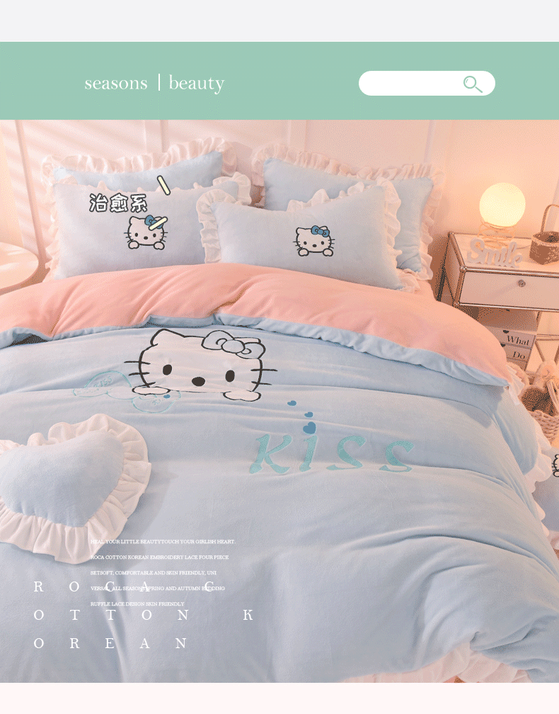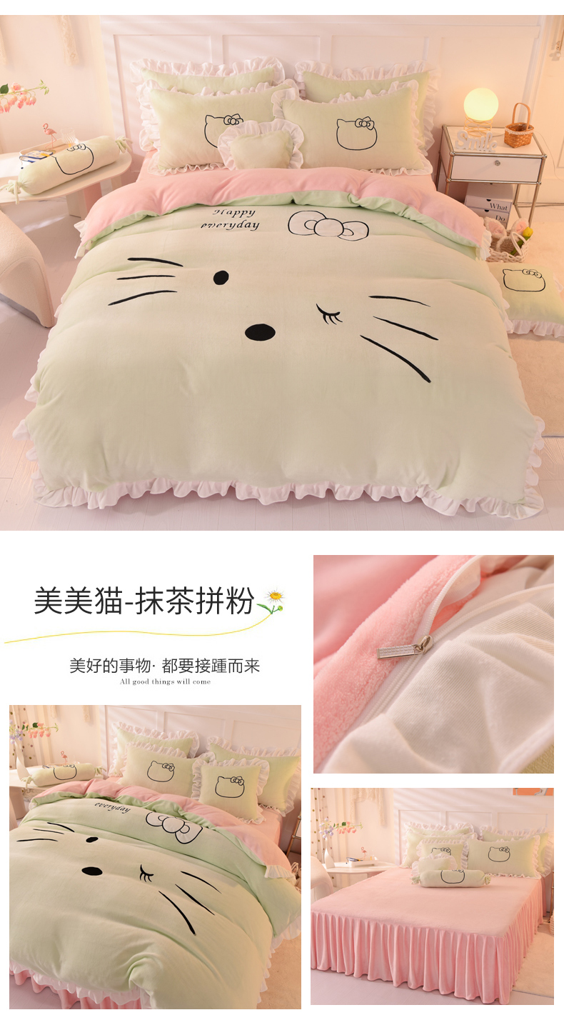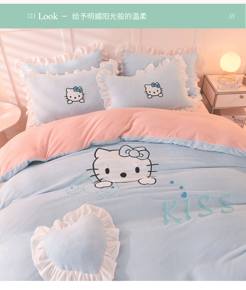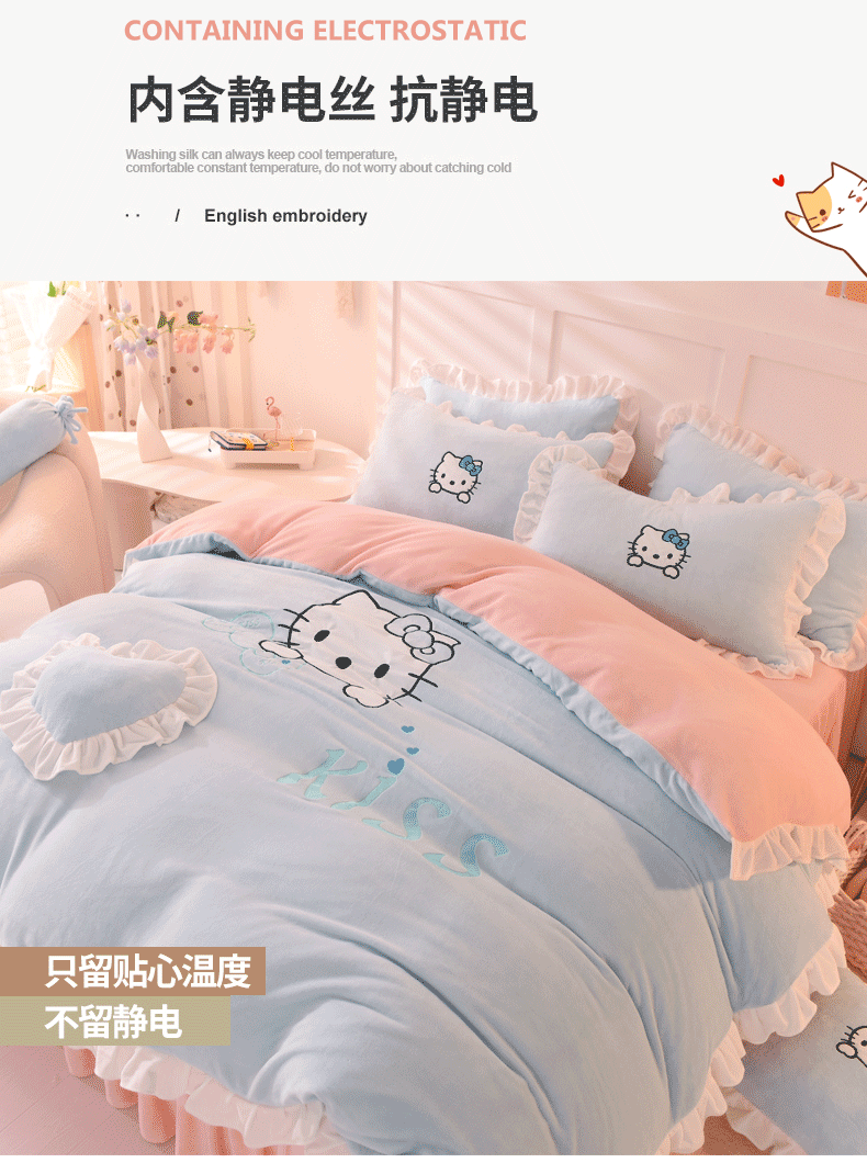 当前位置: 91家纺网 > 商品网购 > 床品套件 > 四件套 > 牛奶绒四件套 > 丝印良品 2025新款高端牛奶绒卡通刺绣牛奶绒四件套 kiss猫-蓝粉