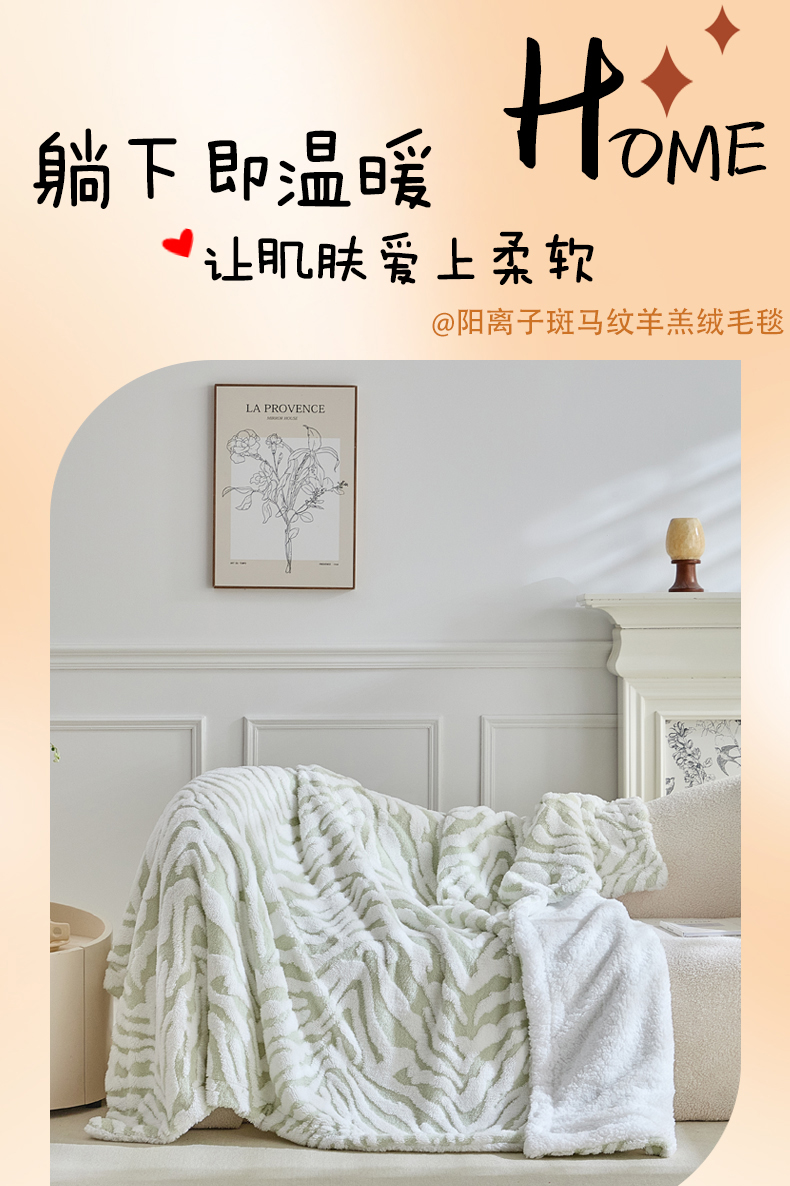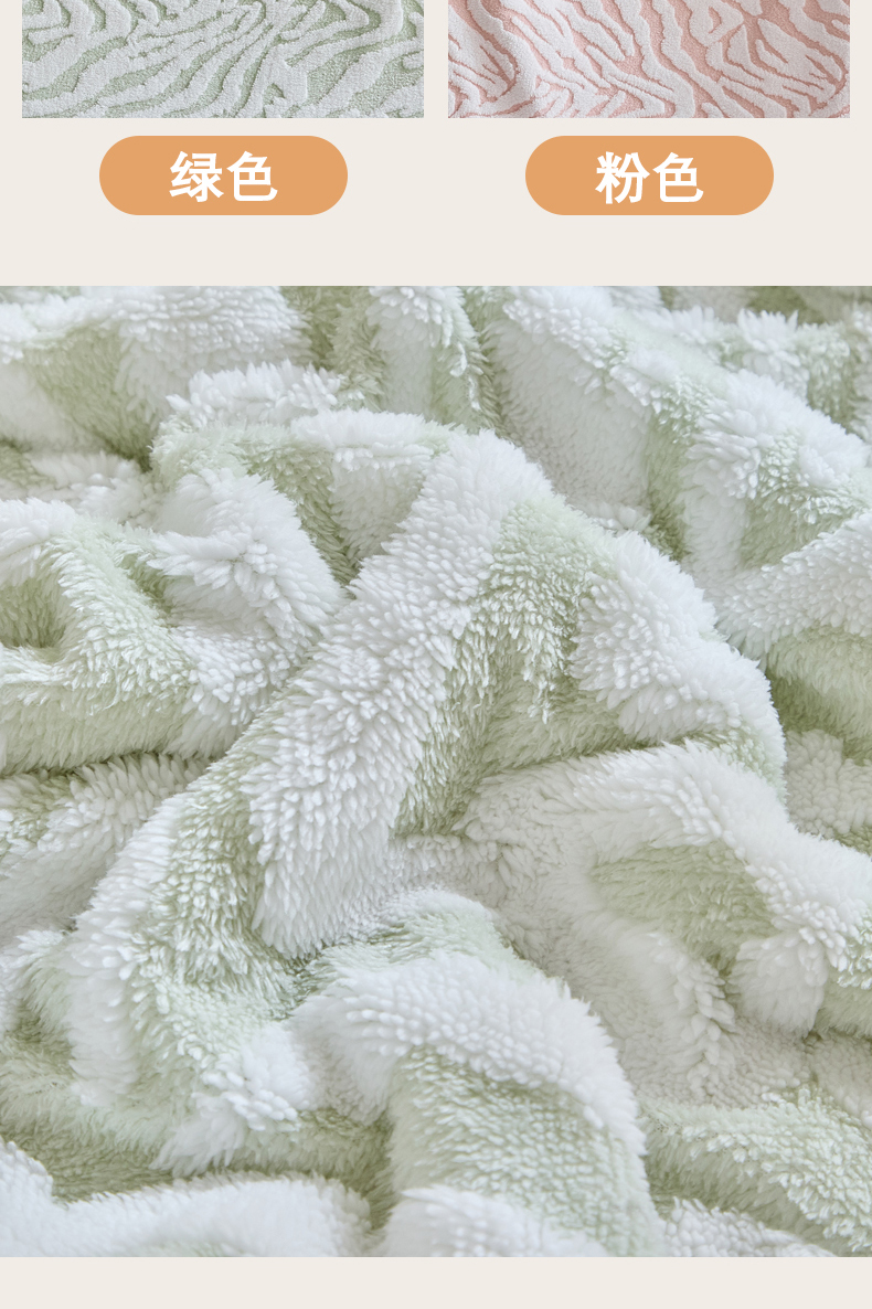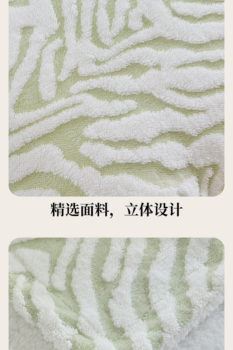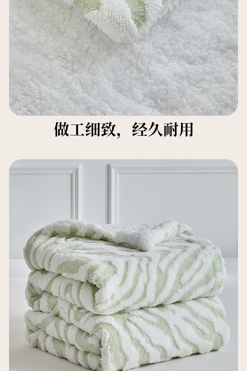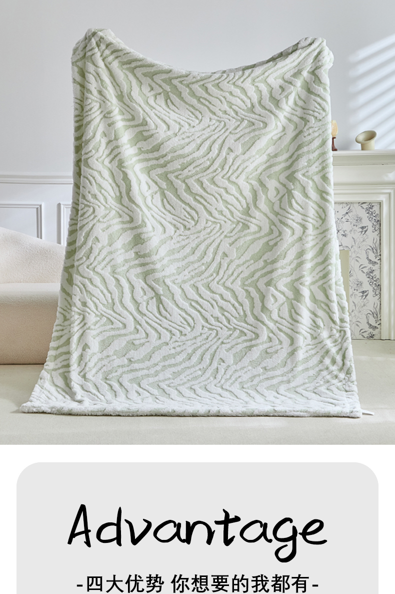 商品名称:缘生活 2025新款阳离子斑马纹羊羔绒毛毯 斑马纹绒毛毯-绿色