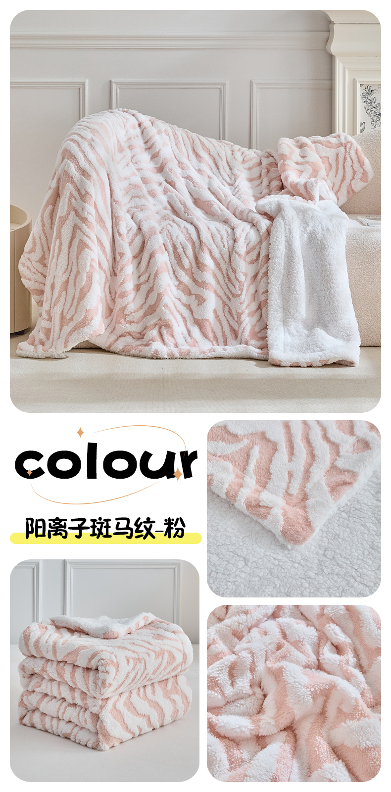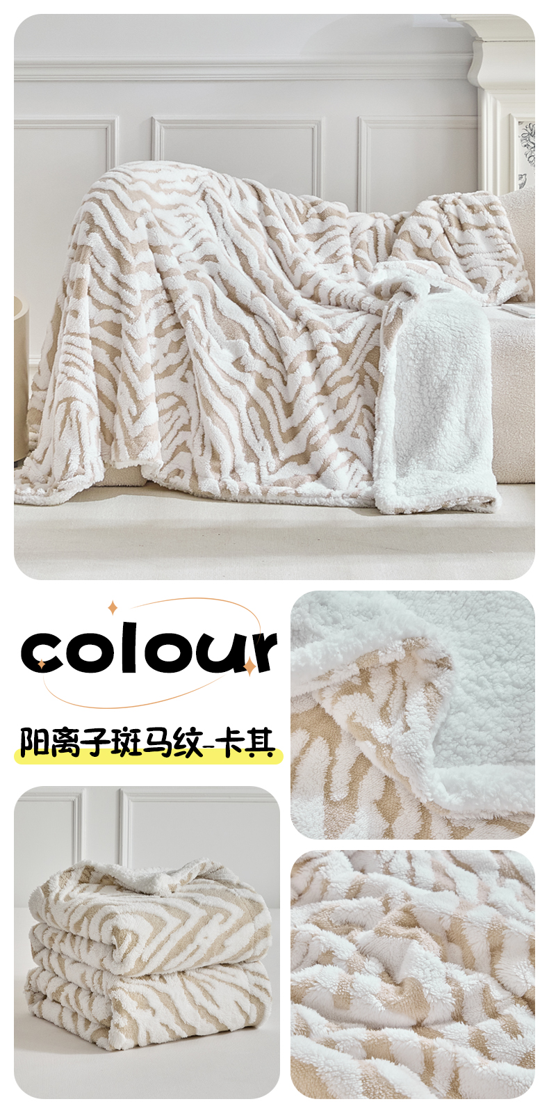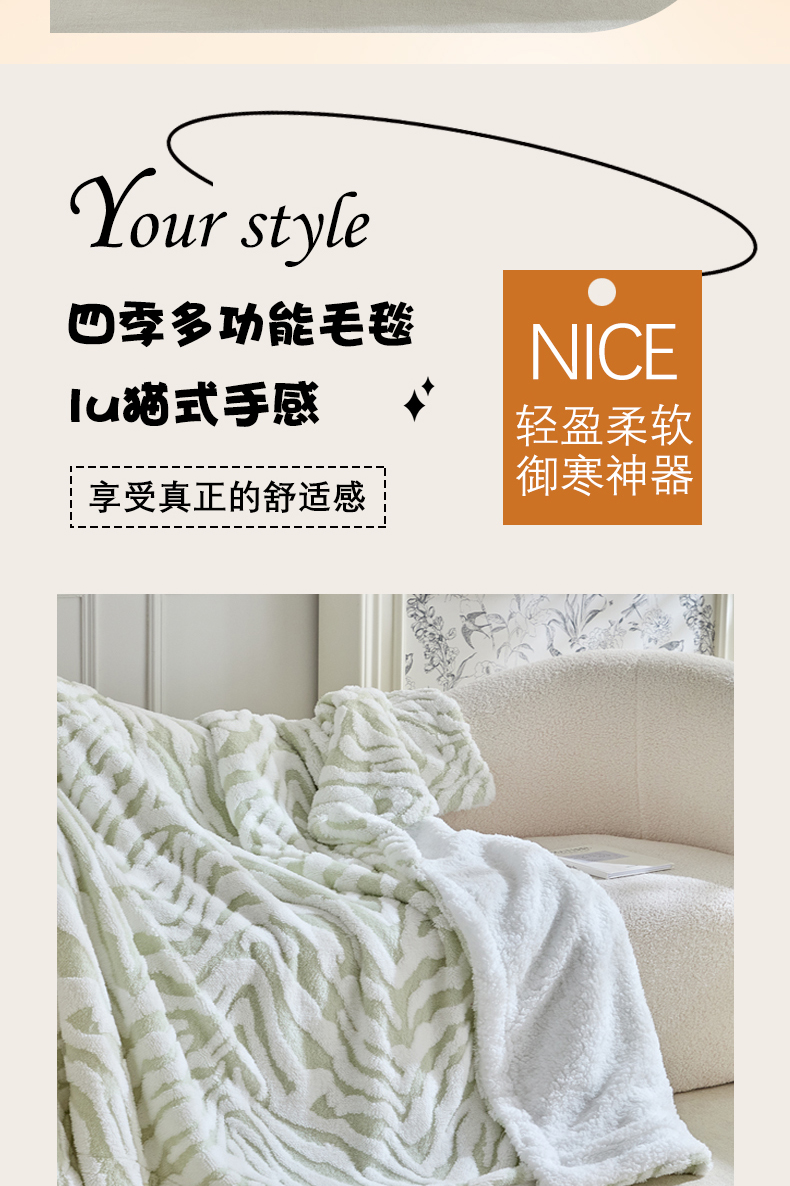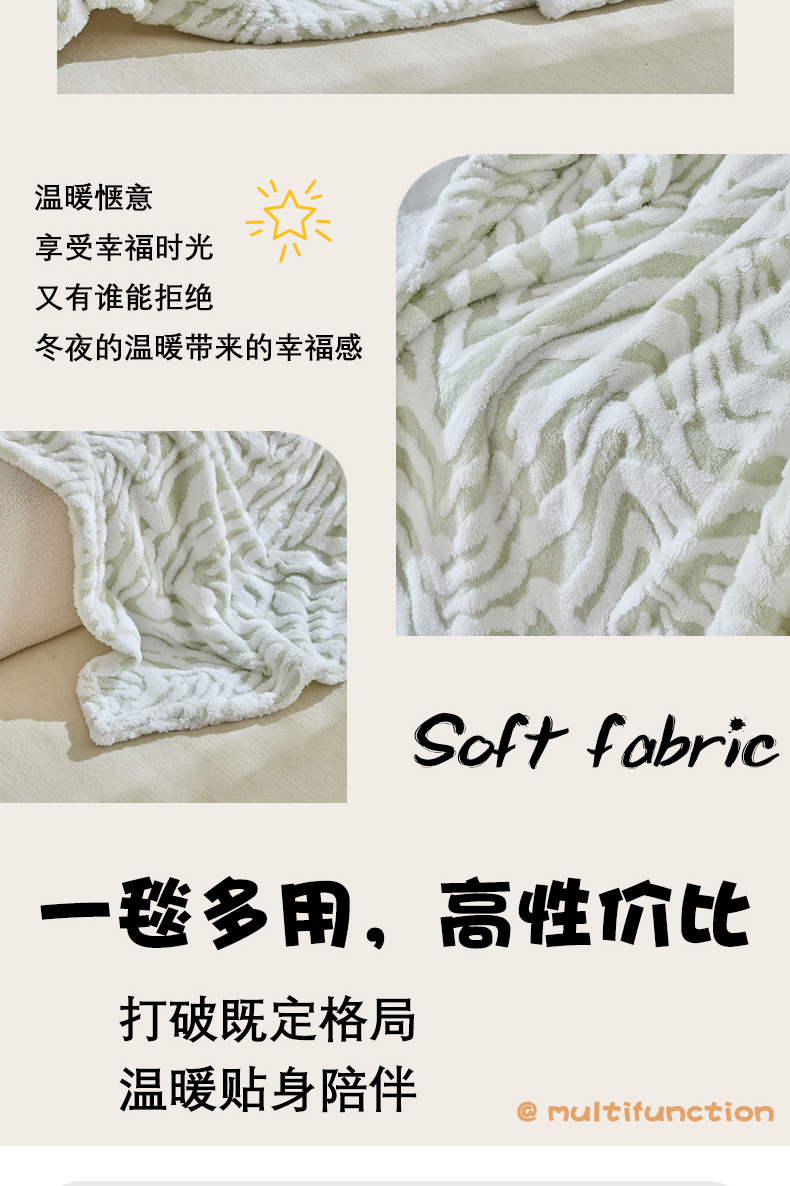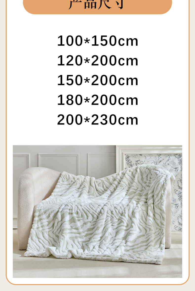 商品名称:缘生活 2025新款阳离子斑马纹羊羔绒毛毯 斑马纹绒毛毯-绿色