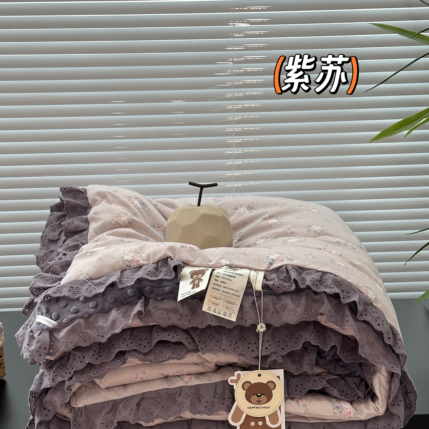 • 91家纺网 家纺一手货源 找家纺 (总)佰织鑫家居 2025新款棉加绒床盖三件套花苞豆豆被四件套,梨花落,落了白