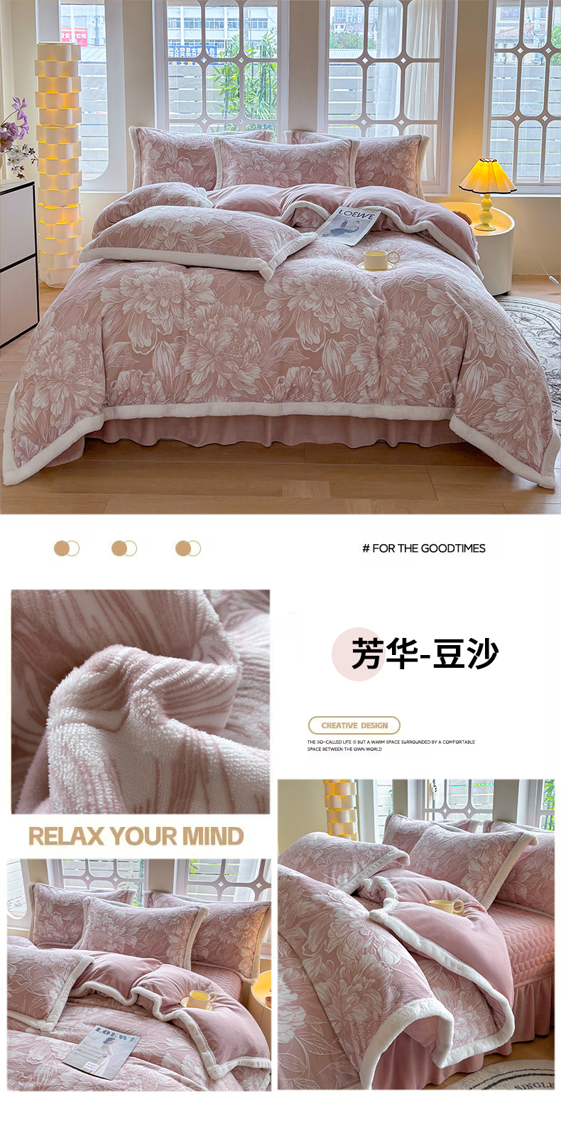 (总)金艾草 2025新款雕花绒兔毛包边牛奶绒床盖款四件套,芳华-薄荷绿,森林秘境-豆沙,芳华-豆沙,森林秘境-浅蓝,芳华-米驼,森林秘境-灰,芳华-浅蓝