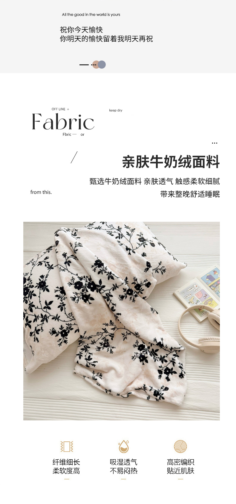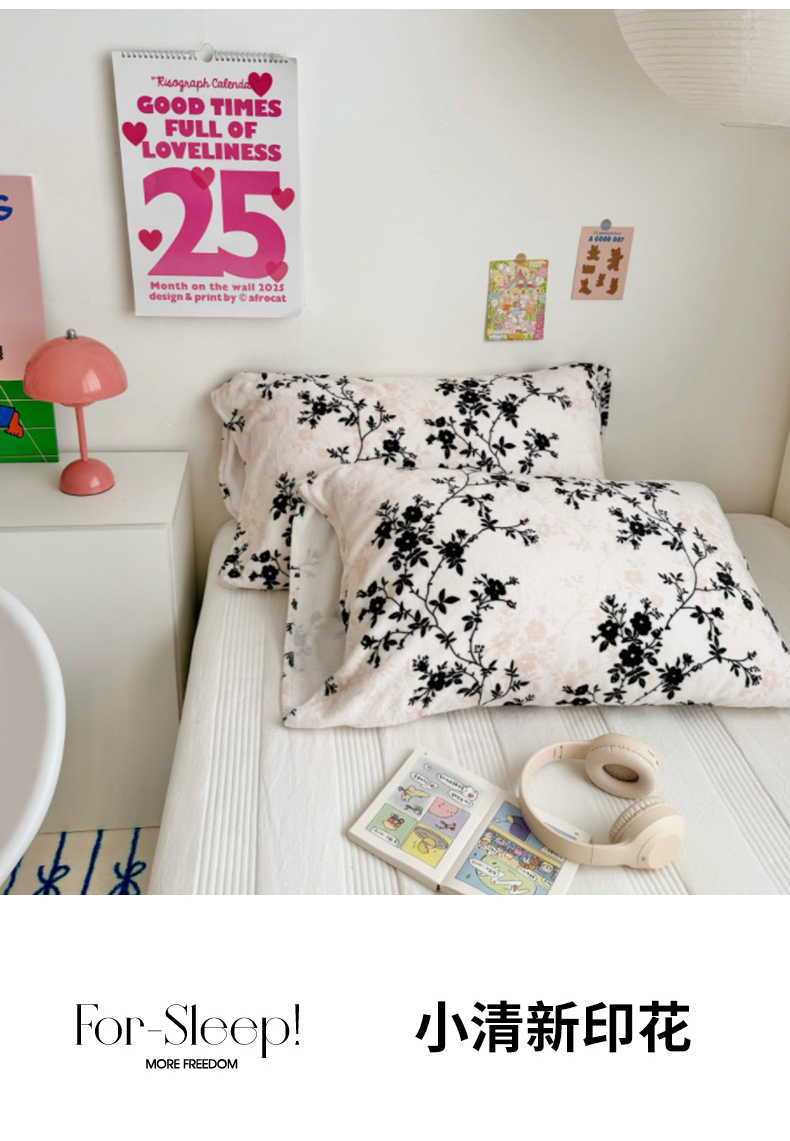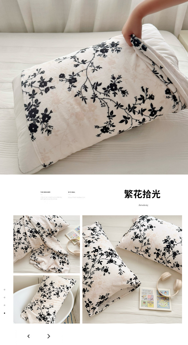 商品名称:禧缘家纺(原梦想家)2025新款牛奶绒纯色印花双开口枕套 繁花拾光