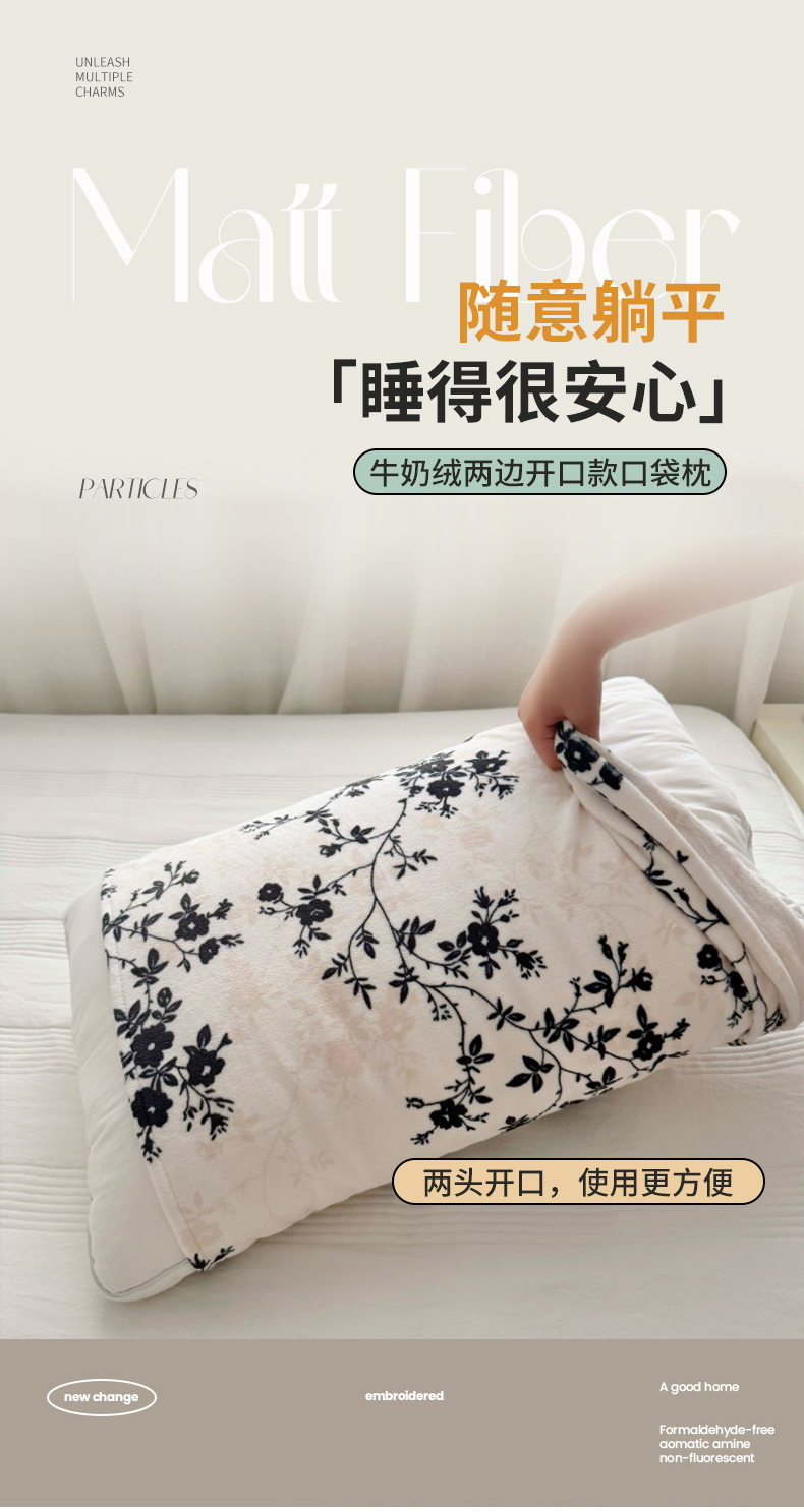 禧缘家纺(原梦想家)2025新款牛奶绒纯色印花双开口枕套 繁花拾光