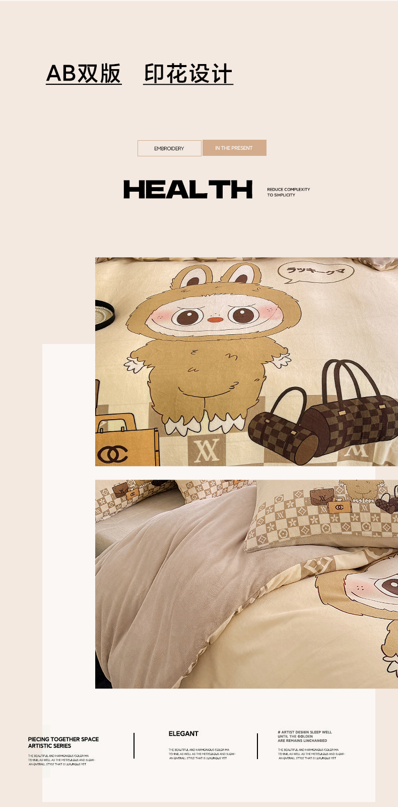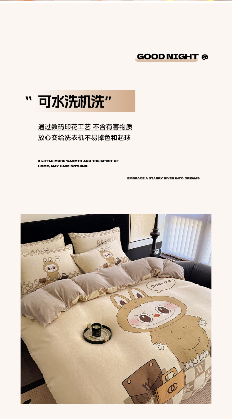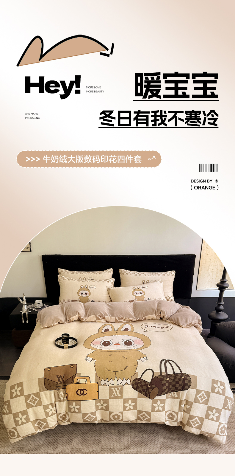 商品名称:摩卡(乐趣) 2025新款牛奶绒大版数码印花四件套(提供买家秀) 卡夫兔
