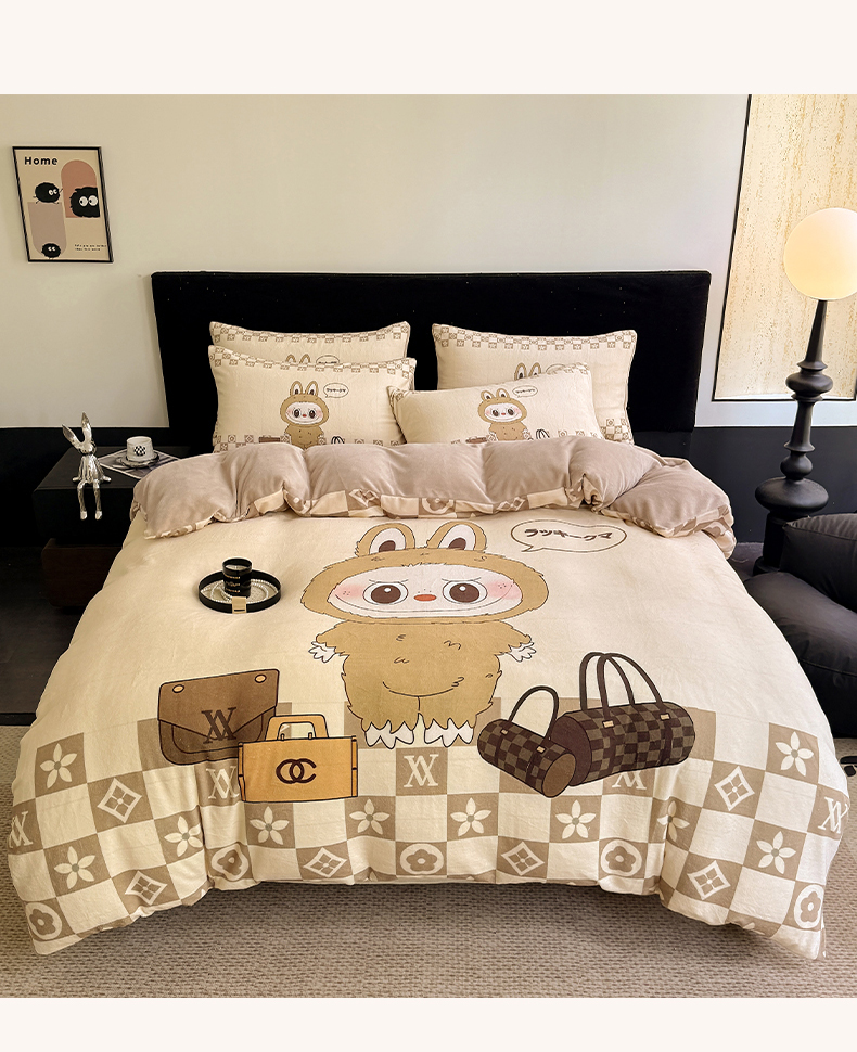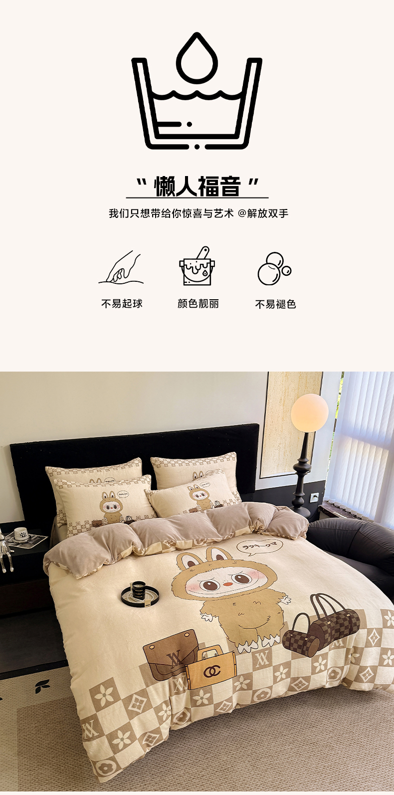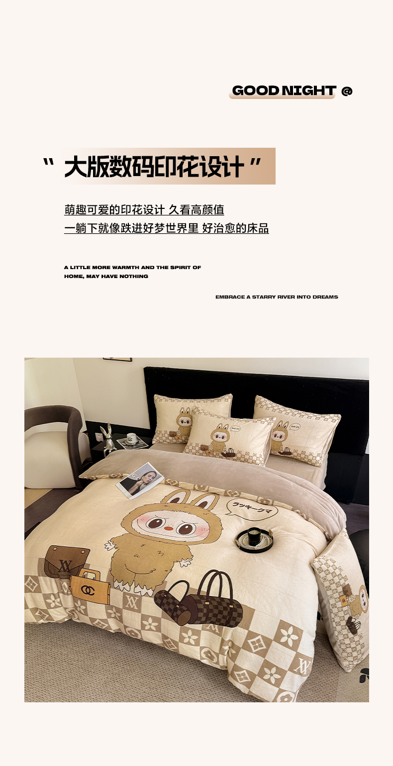 摩卡(乐趣) 2025新款牛奶绒大版数码印花四件套(提供买家秀) 卡夫兔