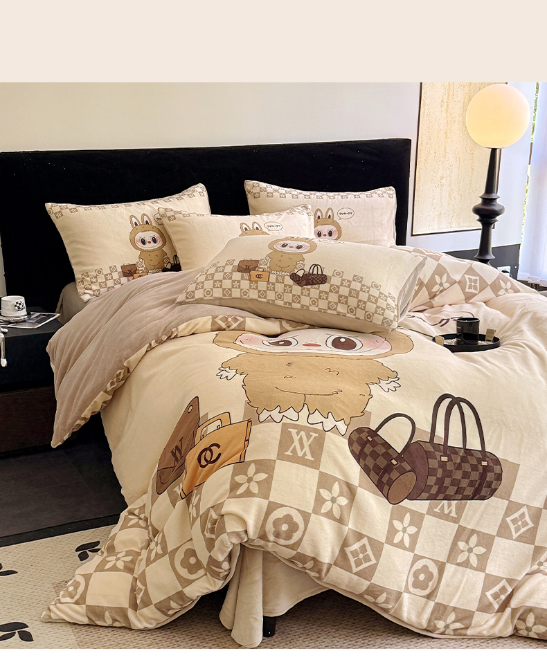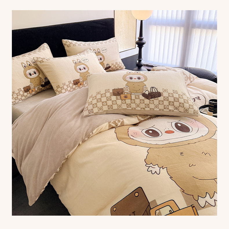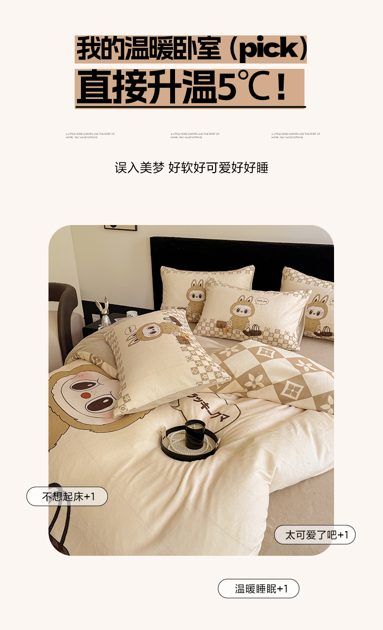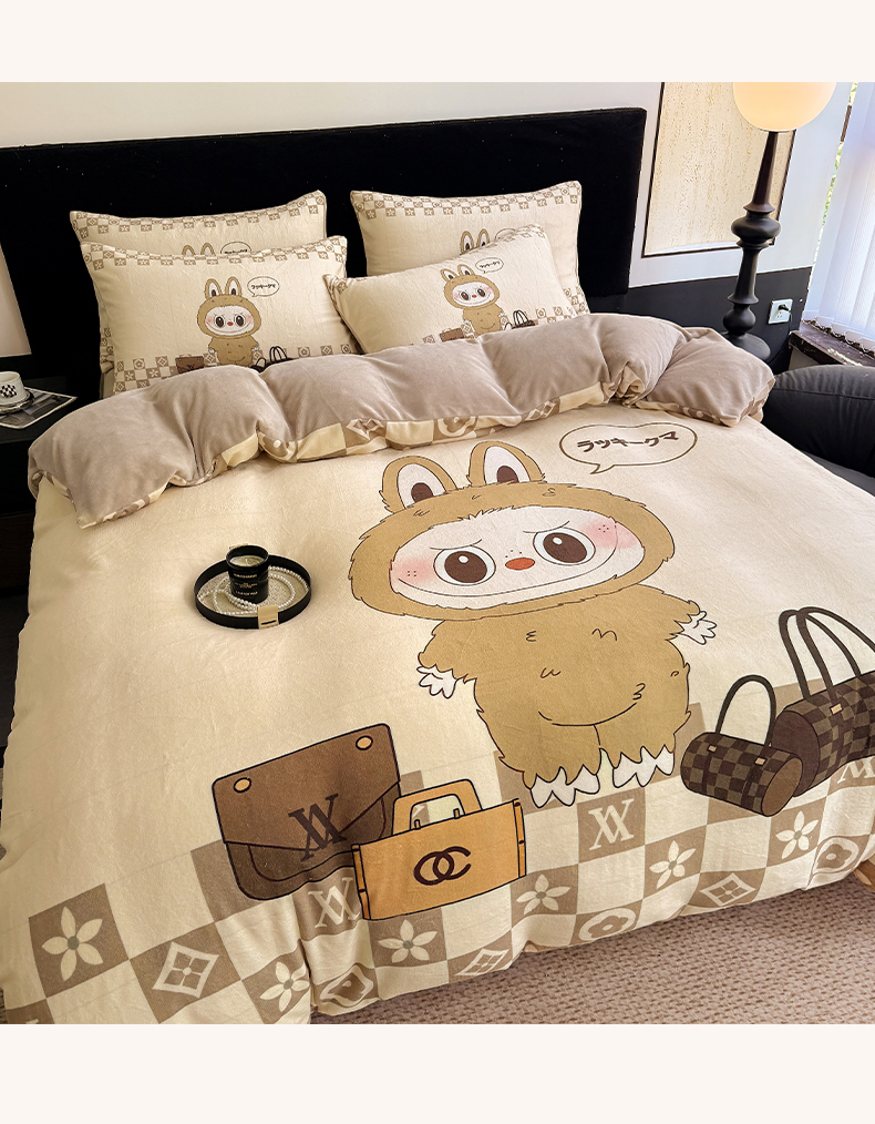 摩卡(乐趣) 2025新款牛奶绒大版数码印花四件套(提供买家秀) 卡夫兔