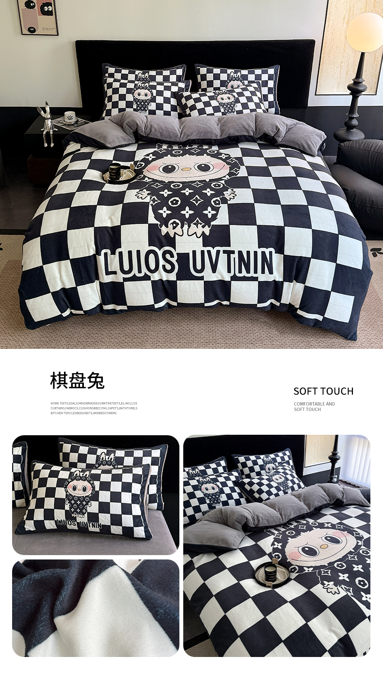 (总)摩卡(乐趣) 2025新款牛奶绒大版数码印花四件套(提供买家秀),经典兔,白香花,黑白V,灰迪,咔芬,卡夫兔,路易兔,罗兰粉,萌迪,萌萌兔,七彩熊,棋盘兔,熊头白,熊仔白,熊仔咖
