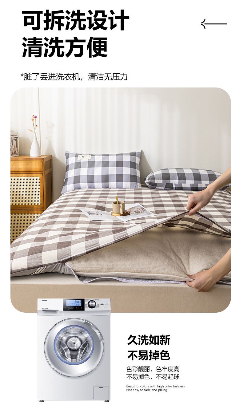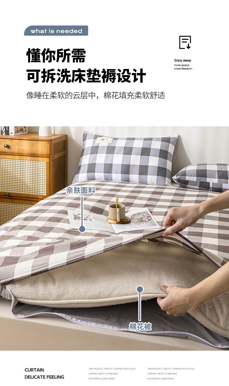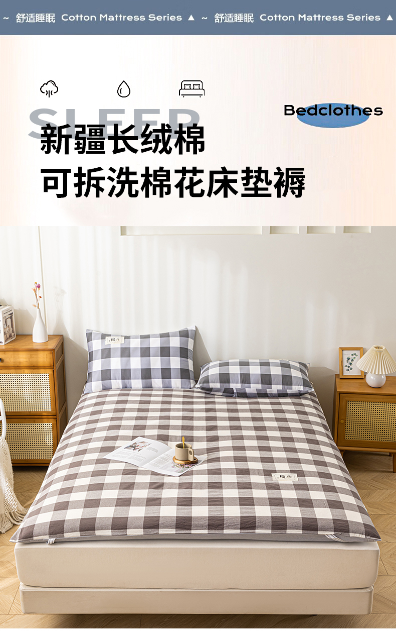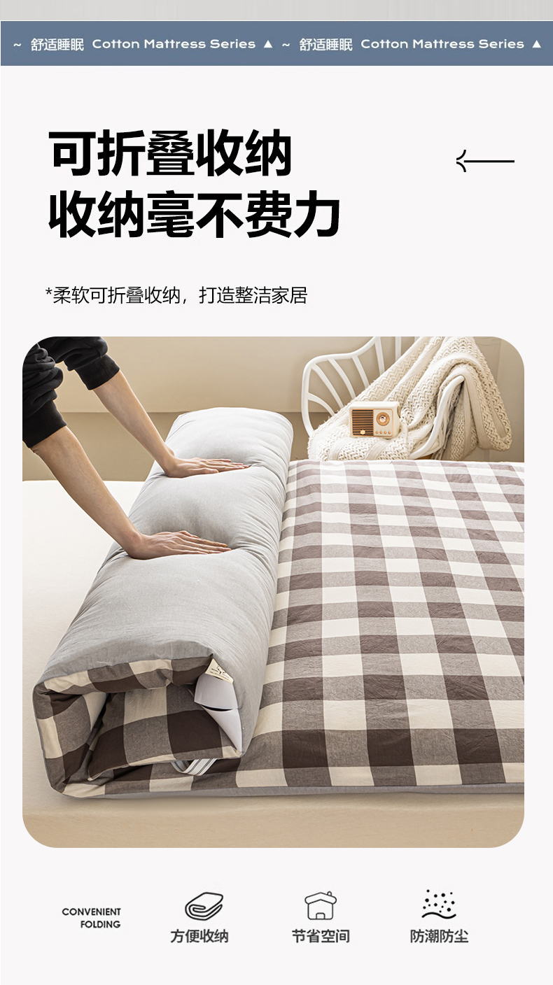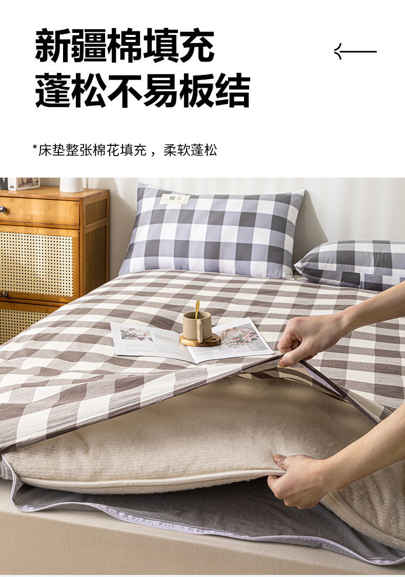 (总)悠米悠家 2025新款新疆棉花学生款可拆洗床垫,宾利兰格,高级灰格,格子控,灰色,极简绿格,简兮格,橘色小格,蓝小格,墨绿小格