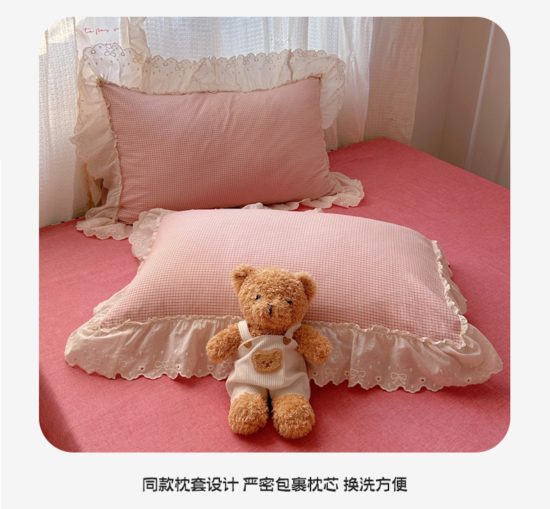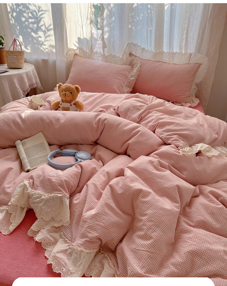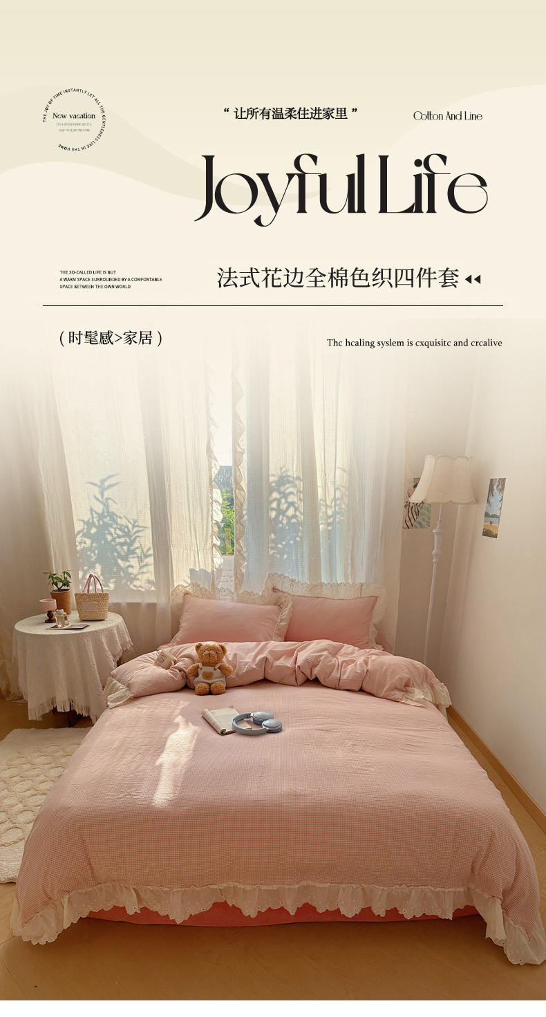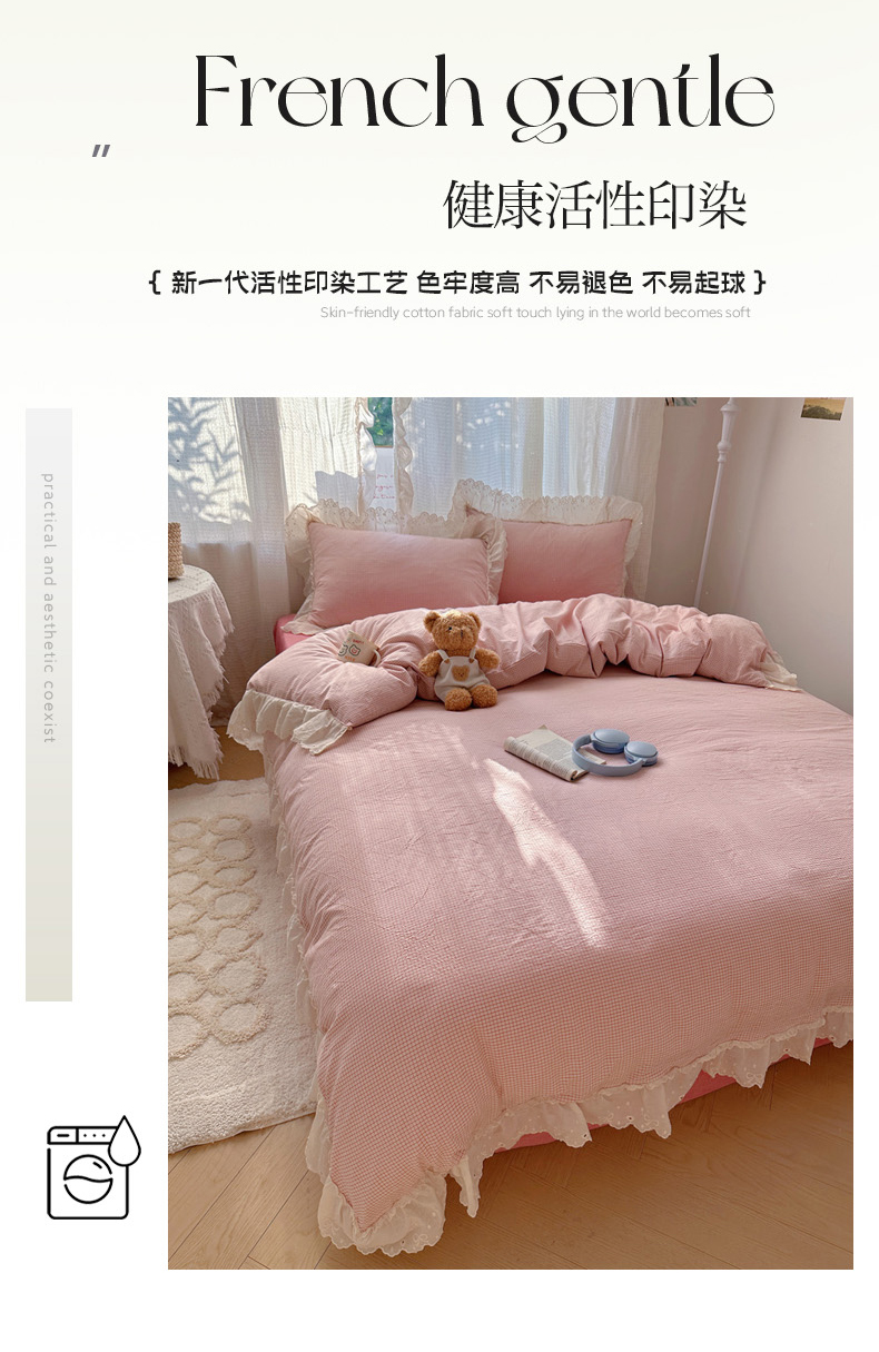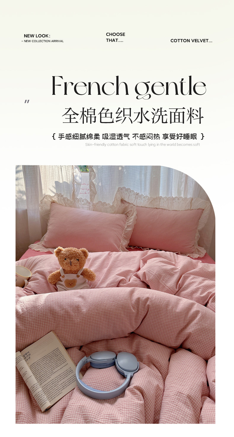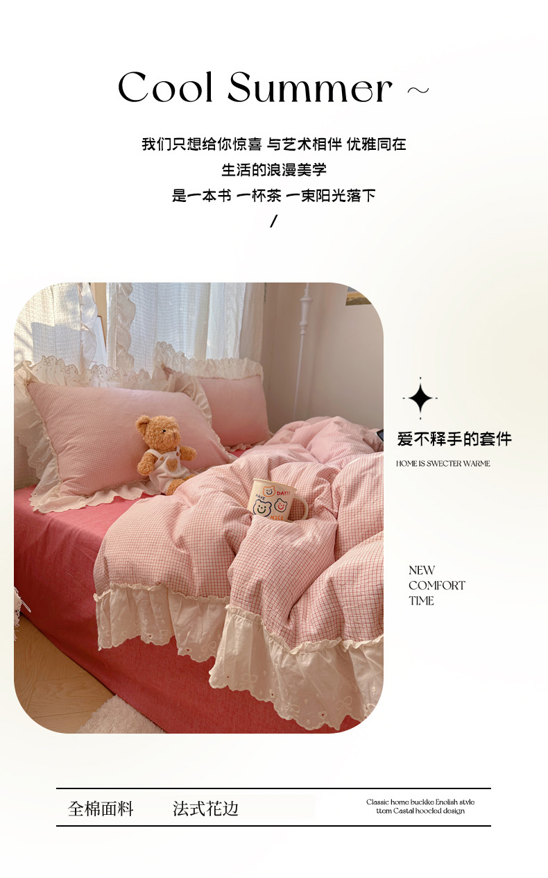 当前位置: 91家纺网 > 商品网购 > 床品套件 > 四件套 > 水洗棉四件套 > 丽涵家纺 2025新款法式花边全棉色织水洗棉小格子四件套 泡芙-红格