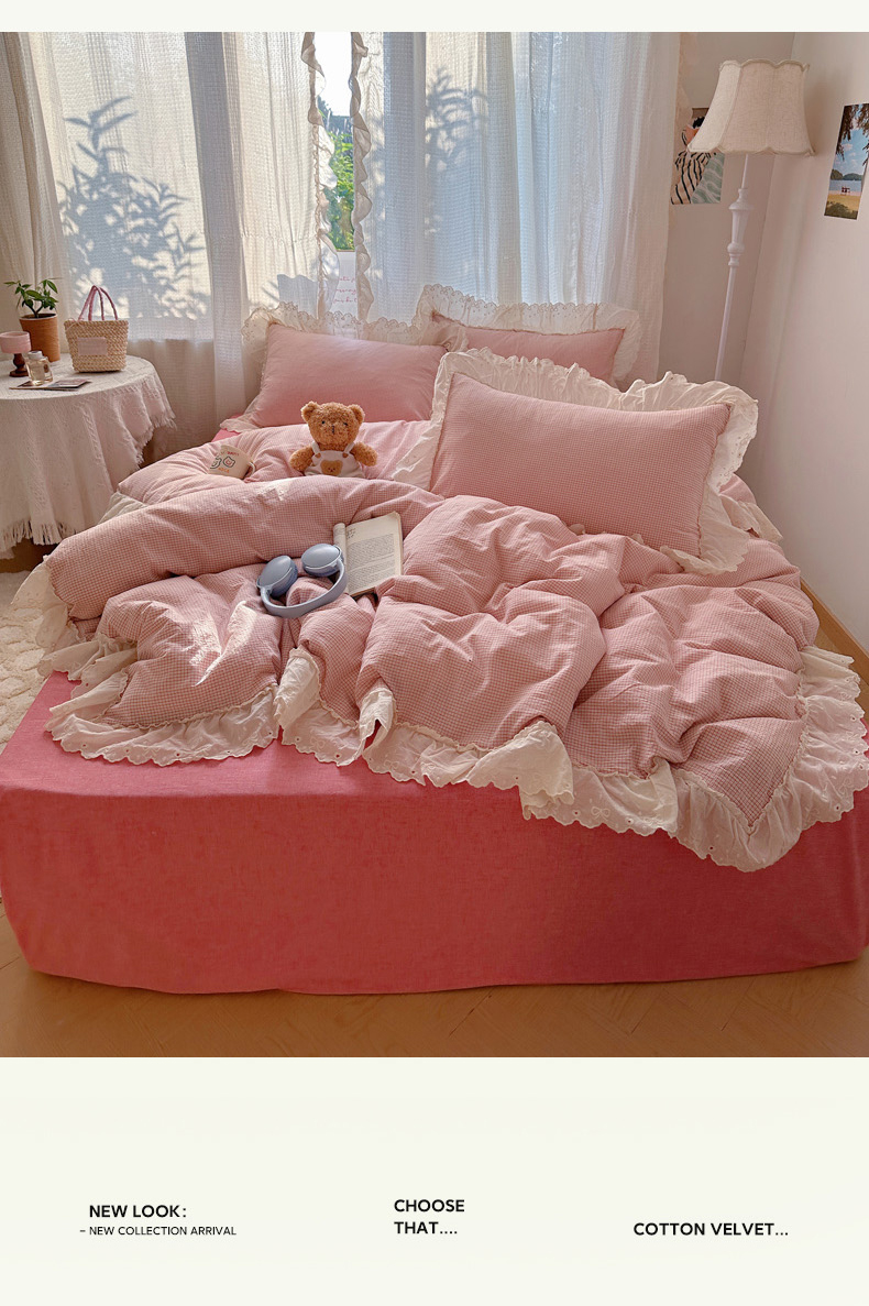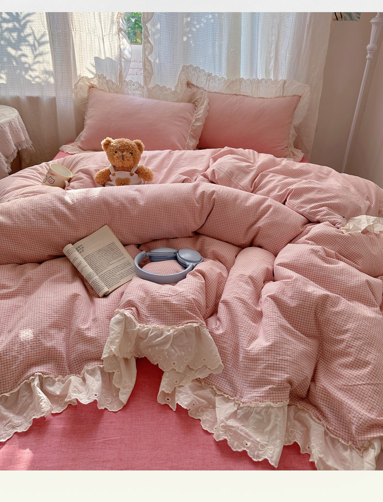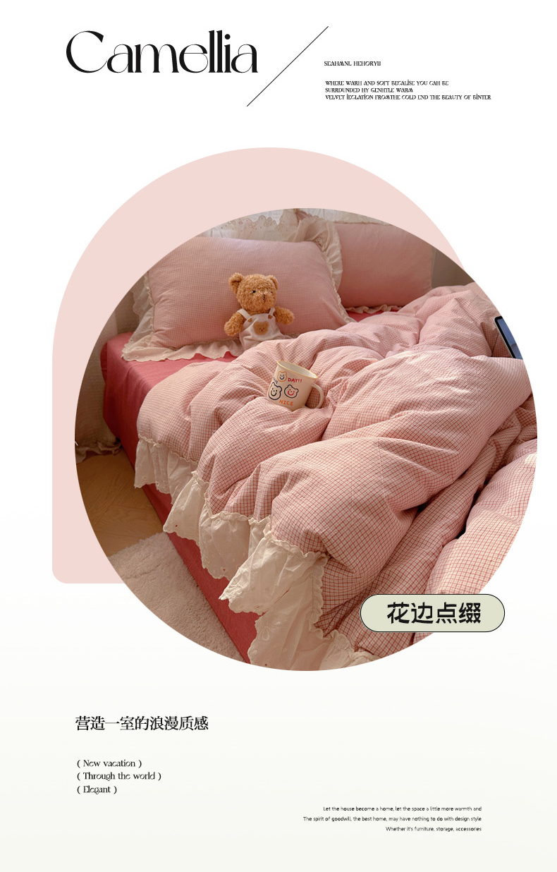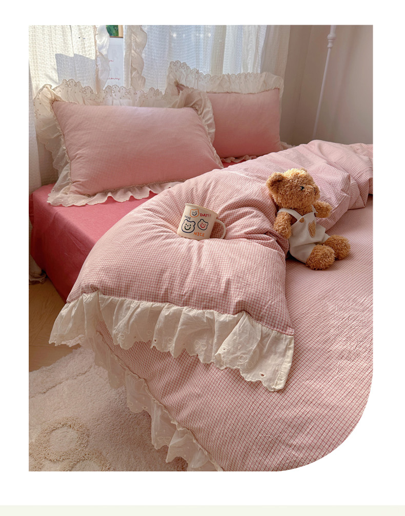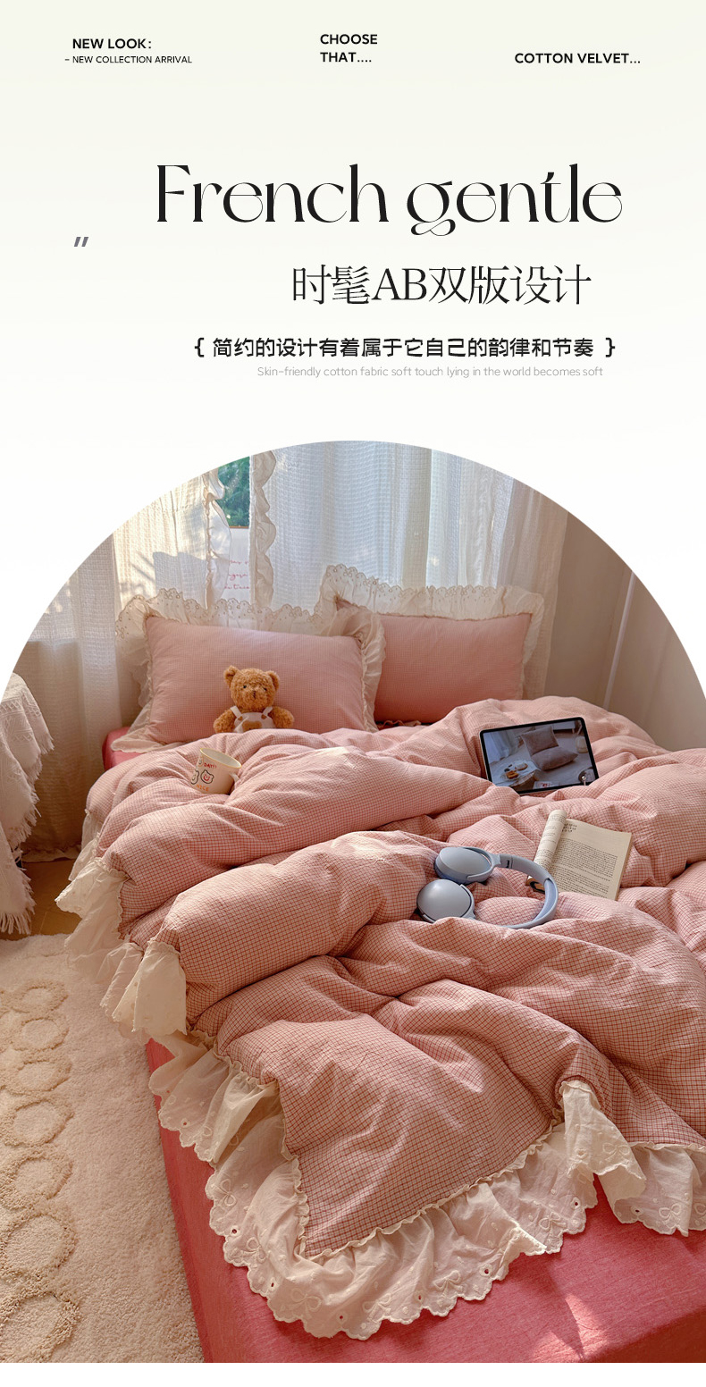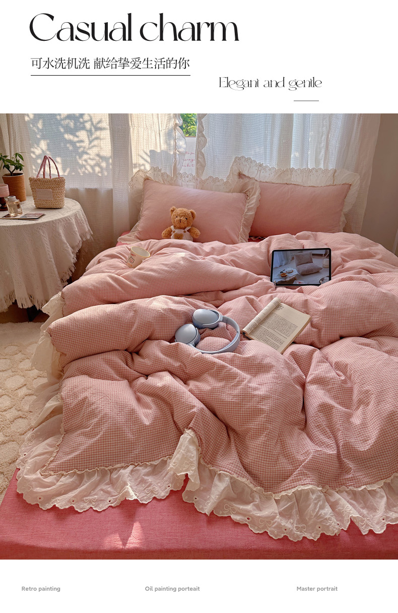 当前位置: 91家纺网 > 商品网购 > 床品套件 > 四件套 > 水洗棉四件套 > 丽涵家纺 2025新款法式花边全棉色织水洗棉小格子四件套 泡芙-红格