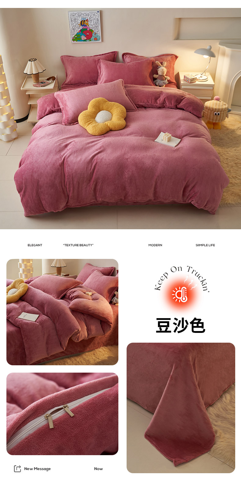 当前位置: 91家纺网 > 商品网购 > 床品套件 > 四件套 > 牛奶绒四件套 > 2025新款多巴胺小红书纯色牛奶绒四件套牛奶绒被套跨境定制-风格二 豆沙