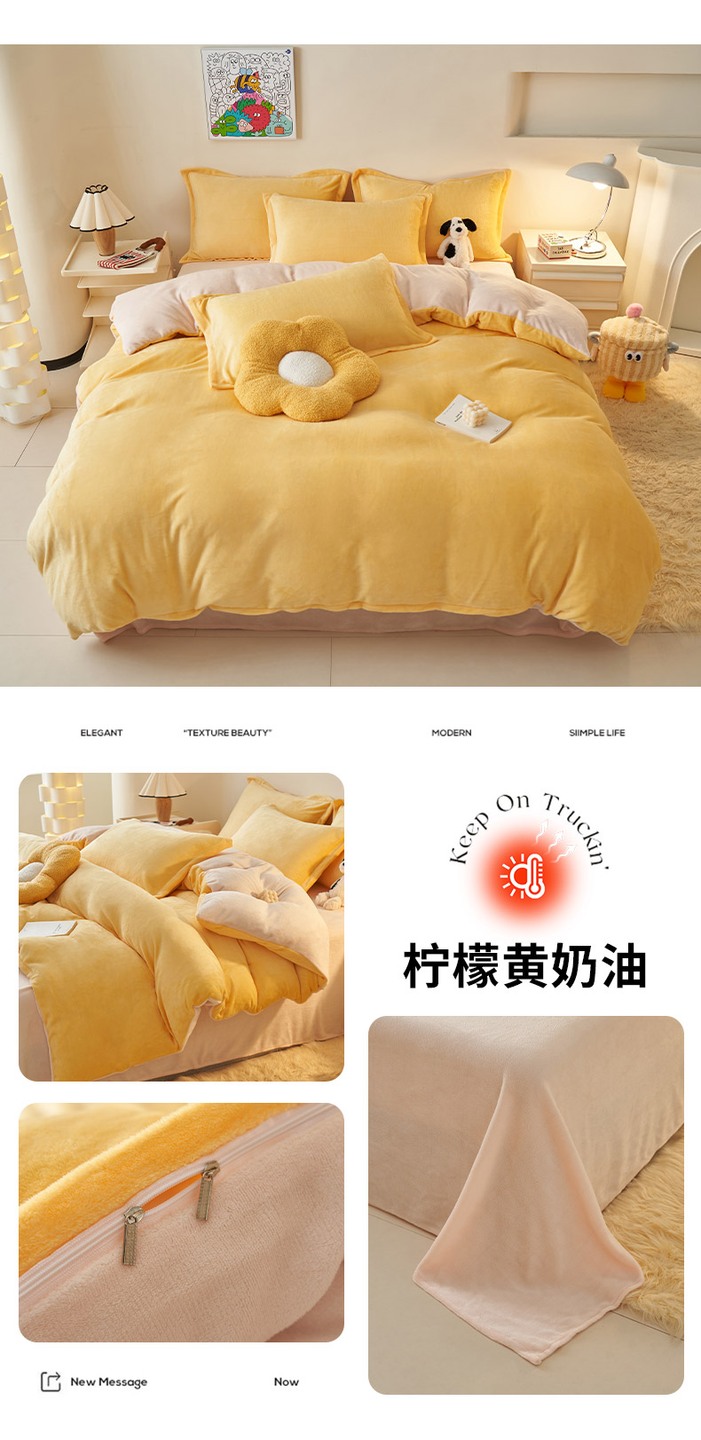 当前位置: 91家纺网 > 商品网购 > 床品套件 > 四件套 > 牛奶绒四件套 > 2025新款多巴胺小红书纯色牛奶绒四件套牛奶绒被套跨境定制-风格二 柠檬黄奶油