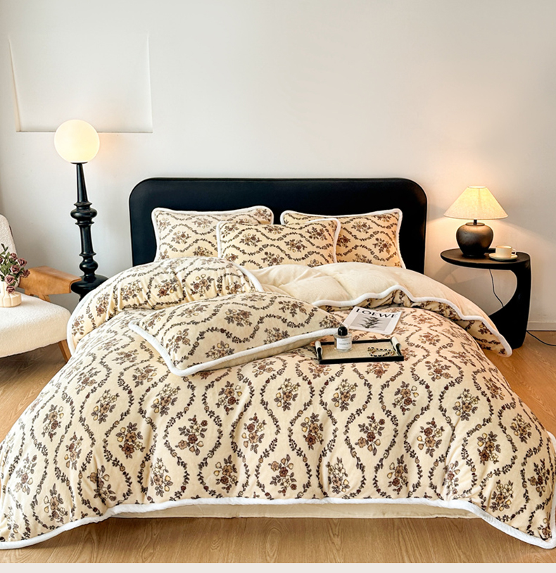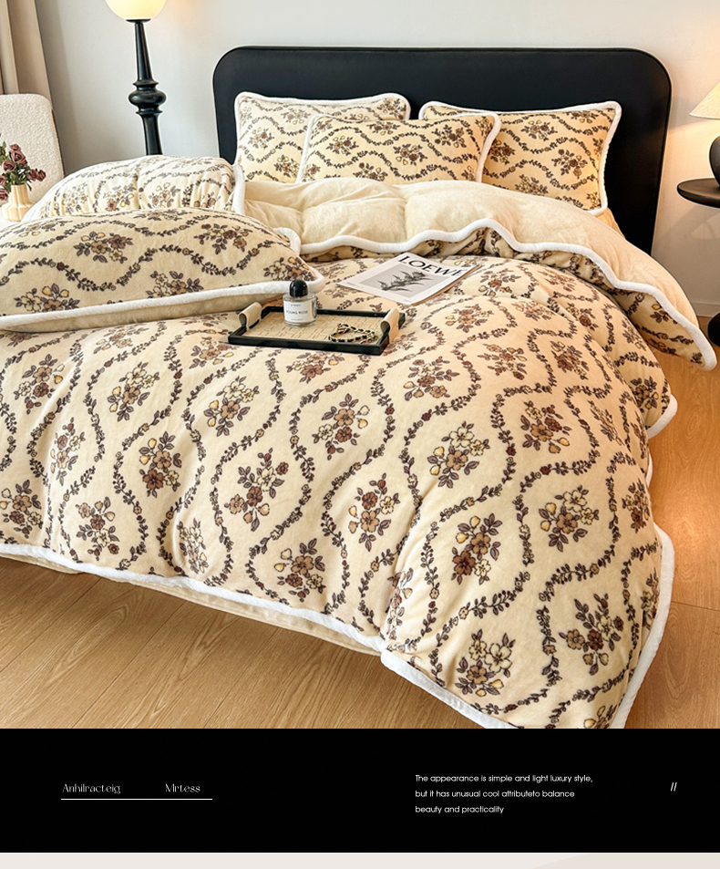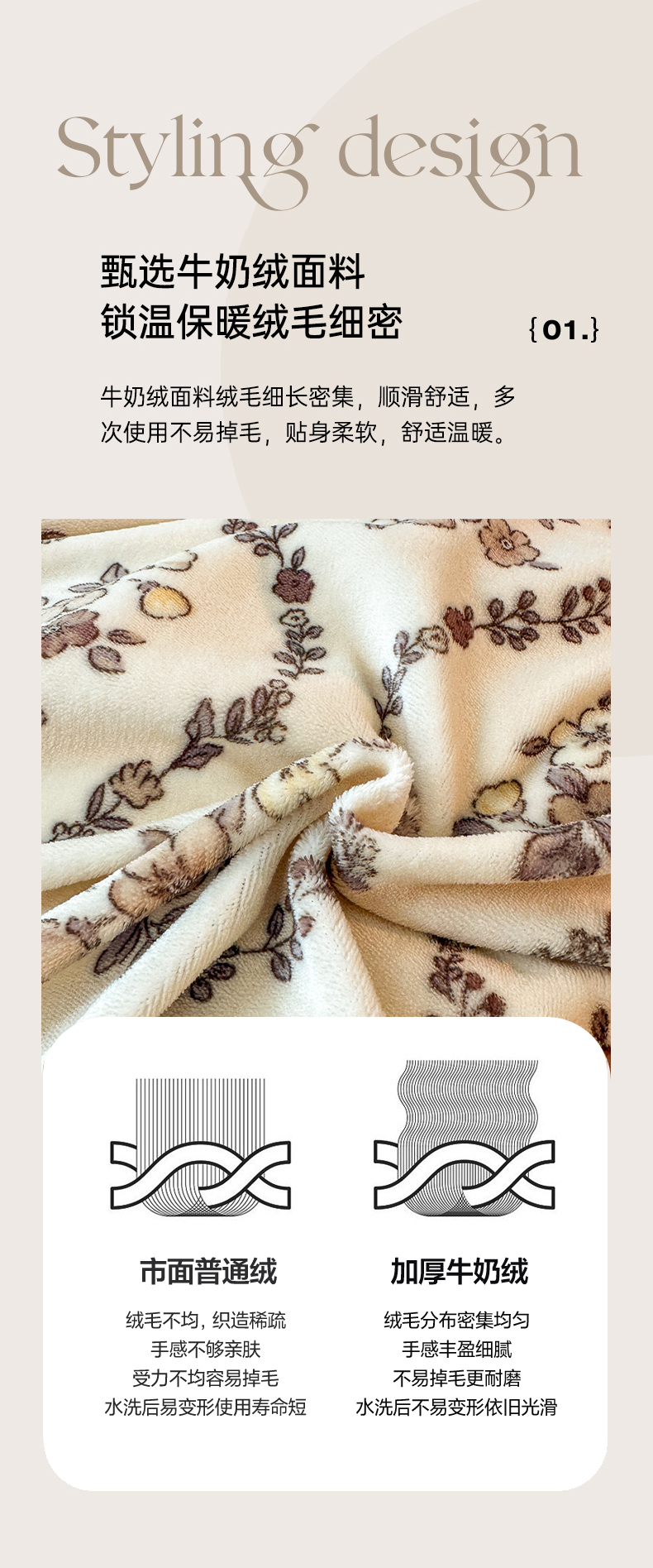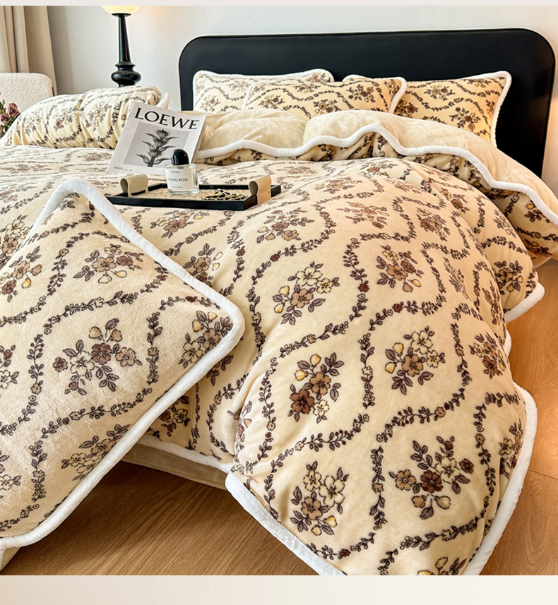 诺梵家纺 2025新款8斤加厚保暖金貂绒牛奶绒印花四件套 花枝如梦,花枝如梦