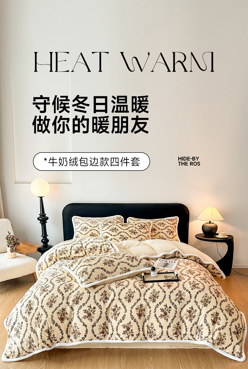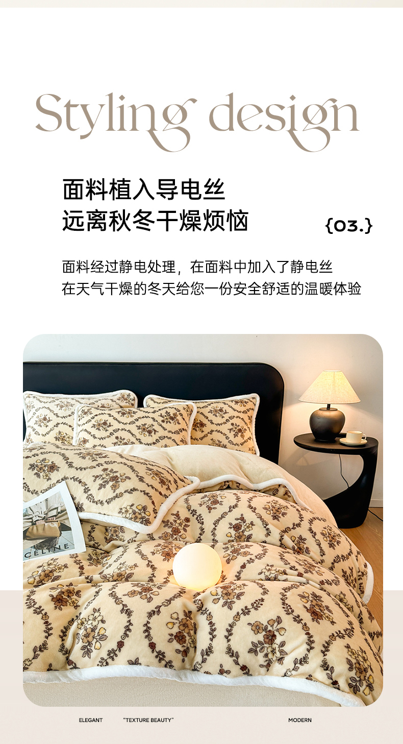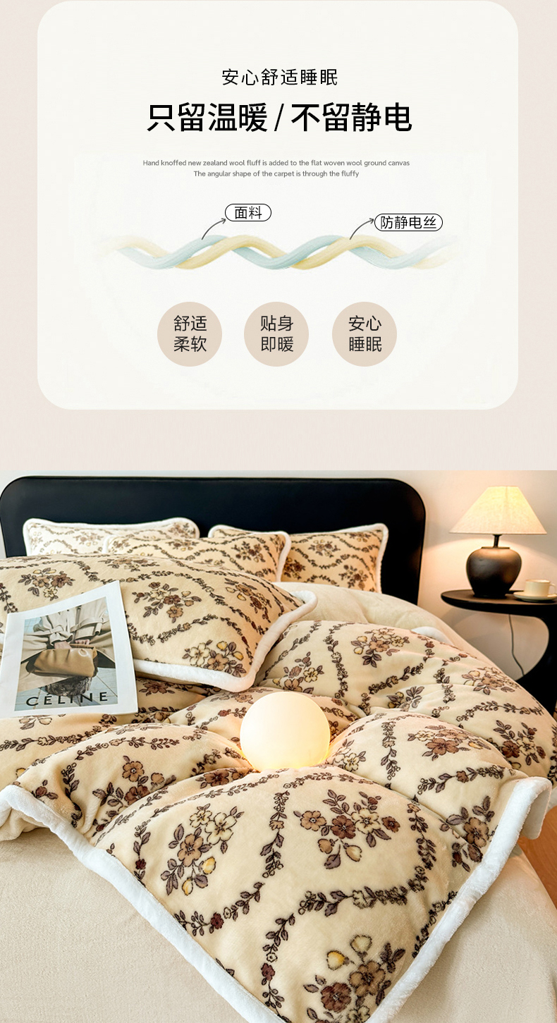 诺梵家纺 2025新款8斤加厚保暖金貂绒牛奶绒印花四件套 花枝如梦,花枝如梦