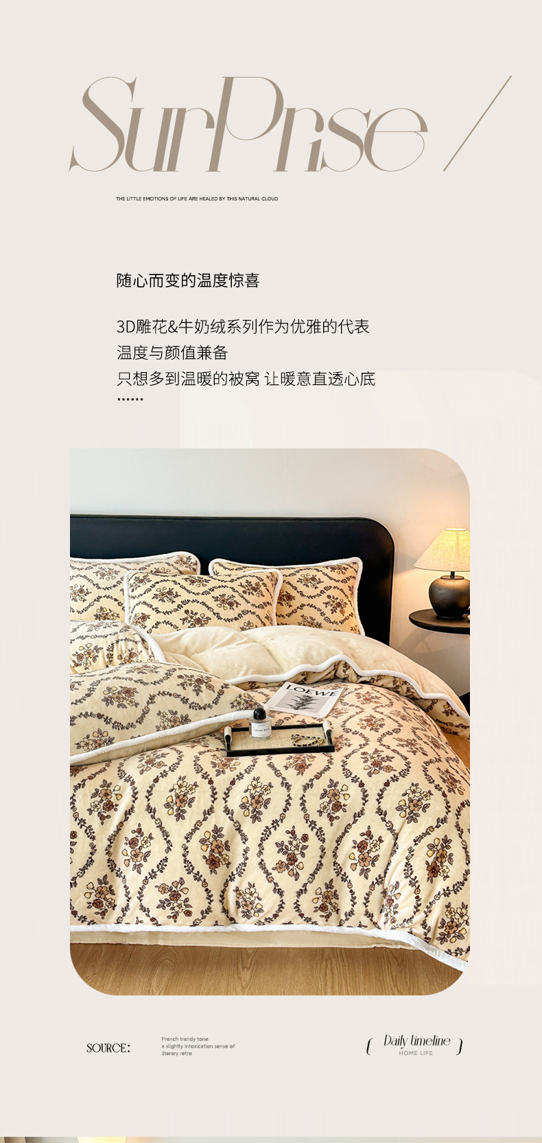 (总)诺梵家纺 2025新款拼接雕花牛奶绒四件套,布朗棕,温妮莎-粉,温妮莎-黄,温妮莎-紫,纤枝逸-红,纤枝逸-黄,邂逅-粉,邂逅-紫