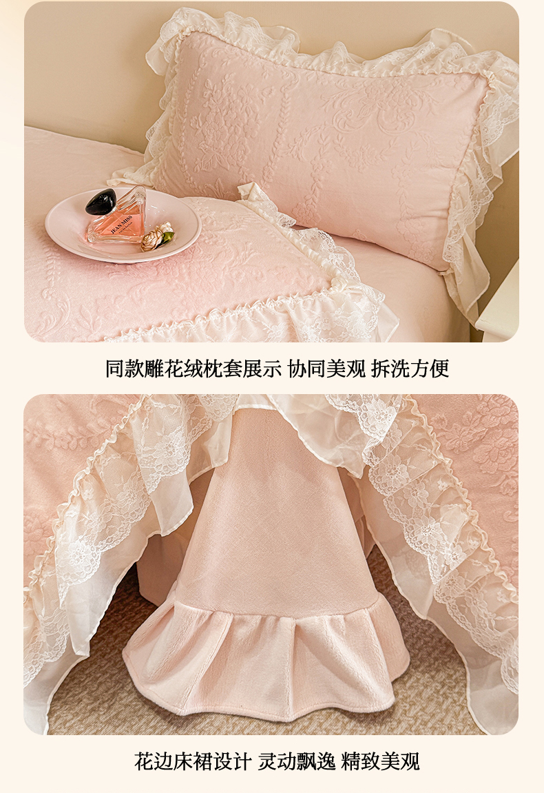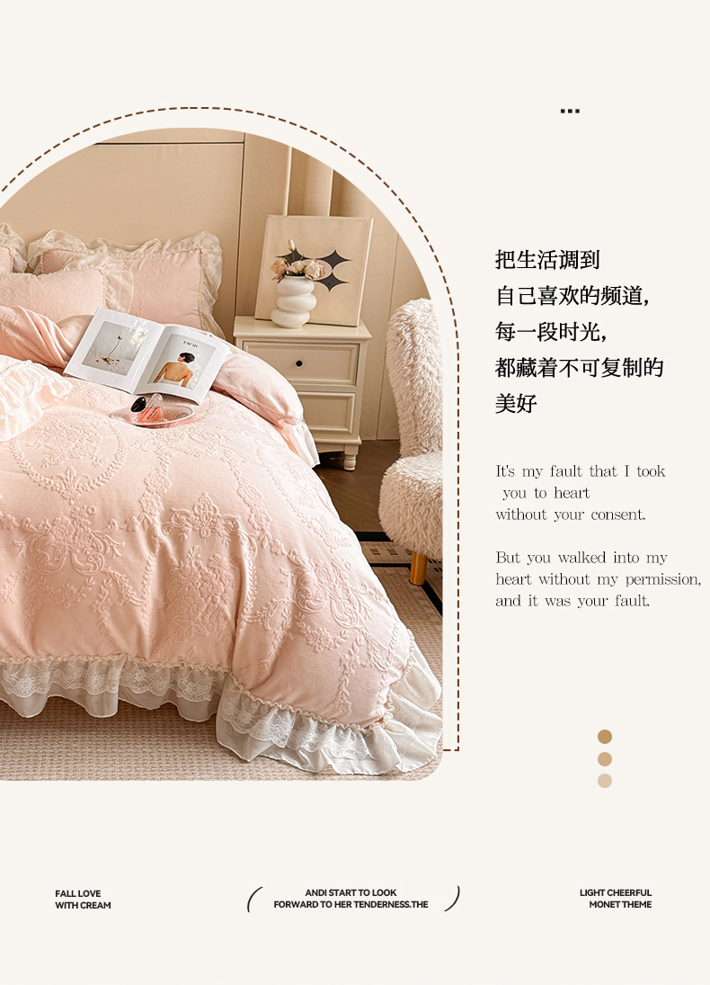 当前位置: 91家纺网 > 商品网购 > 床品套件 > 四件套 > 牛奶绒四件套 > 爱家(原缔乐家纺) 2025新款A类牛奶雕花绒四件套 米娜系列 米娜-奶昔白