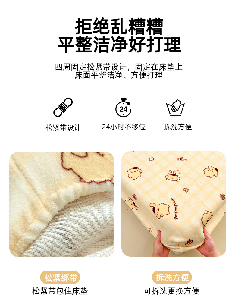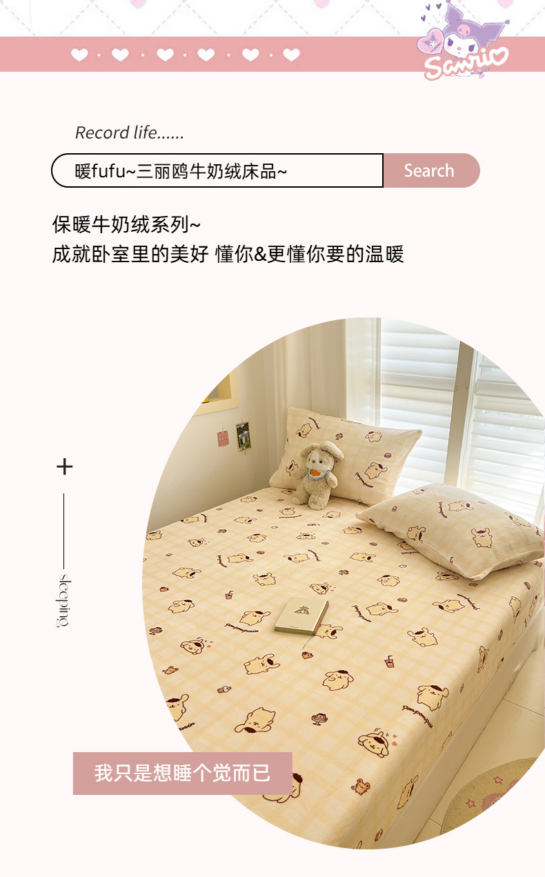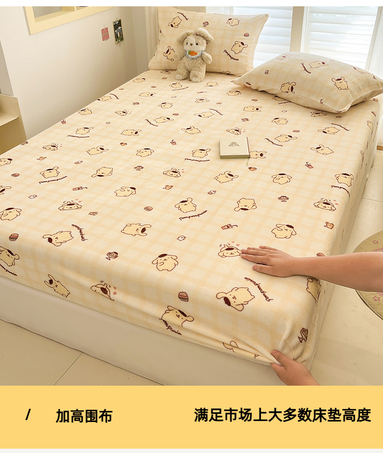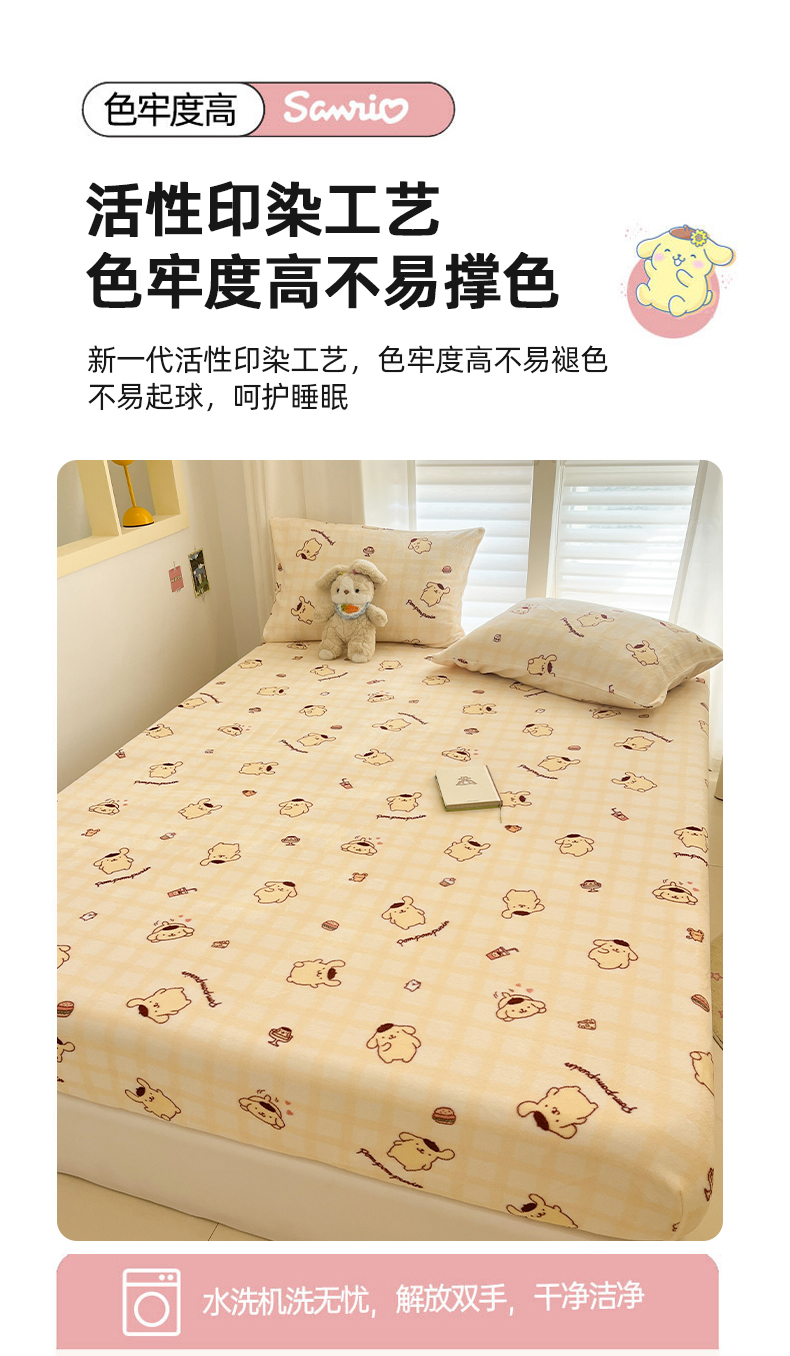 金爱家 2025新款三丽鸥牛奶绒床笠单床笠床笠单件 绒单品-黄油布丁狗