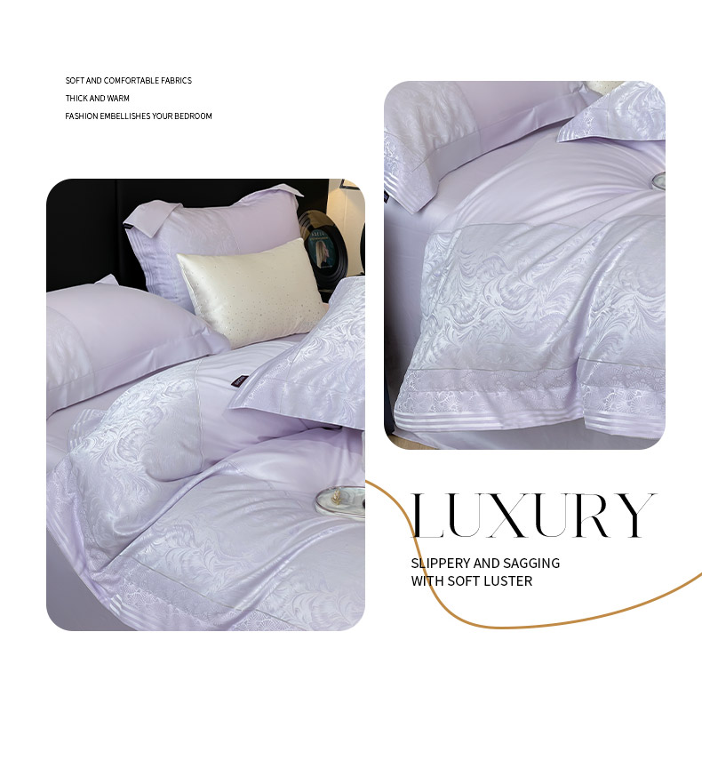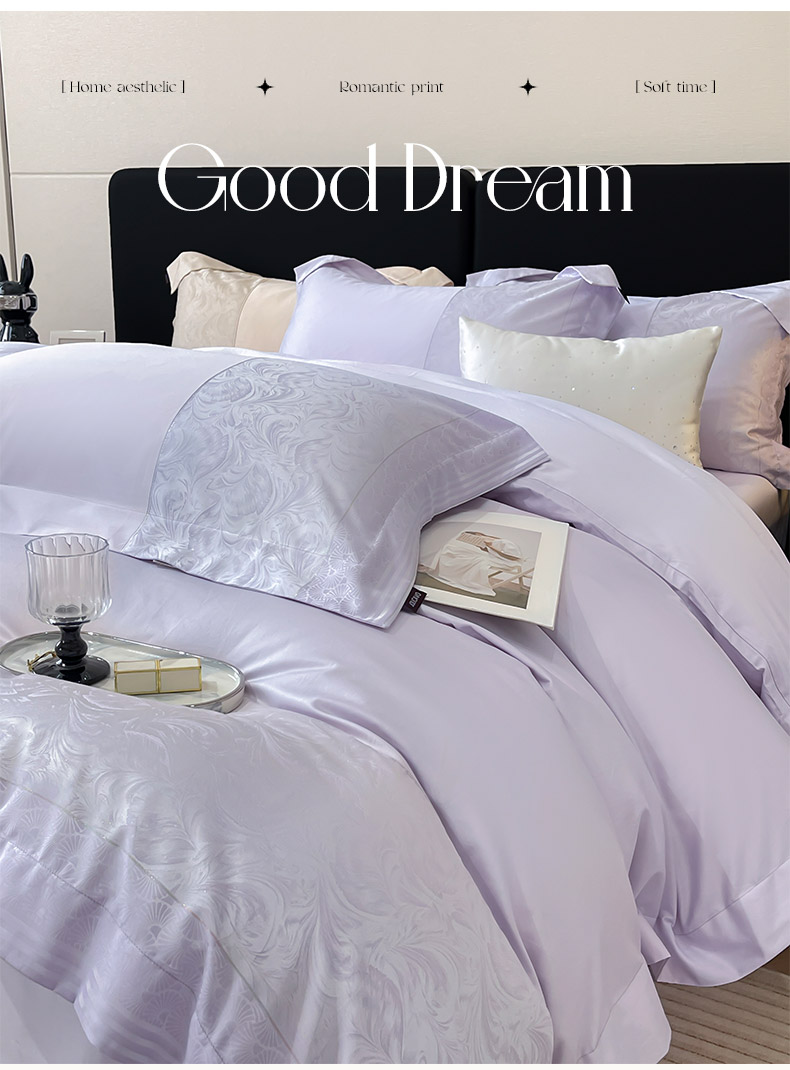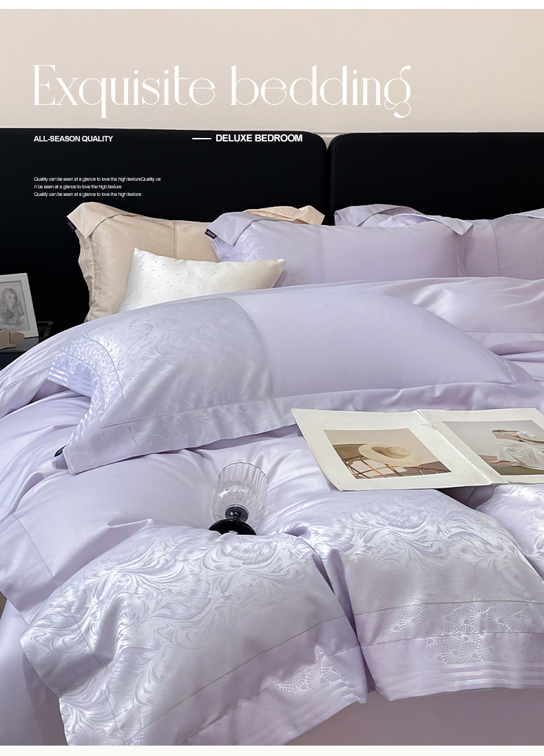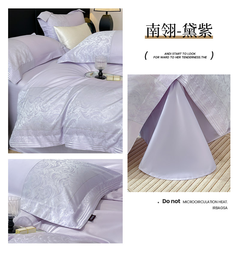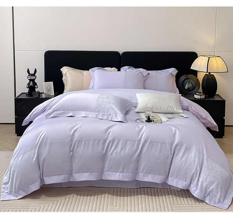 商品名称:2025新款高端A类贡缎提花长绒棉四件套纯棉全棉拼接被套纯色被套热款床上用品-南翎 南翎-黛紫