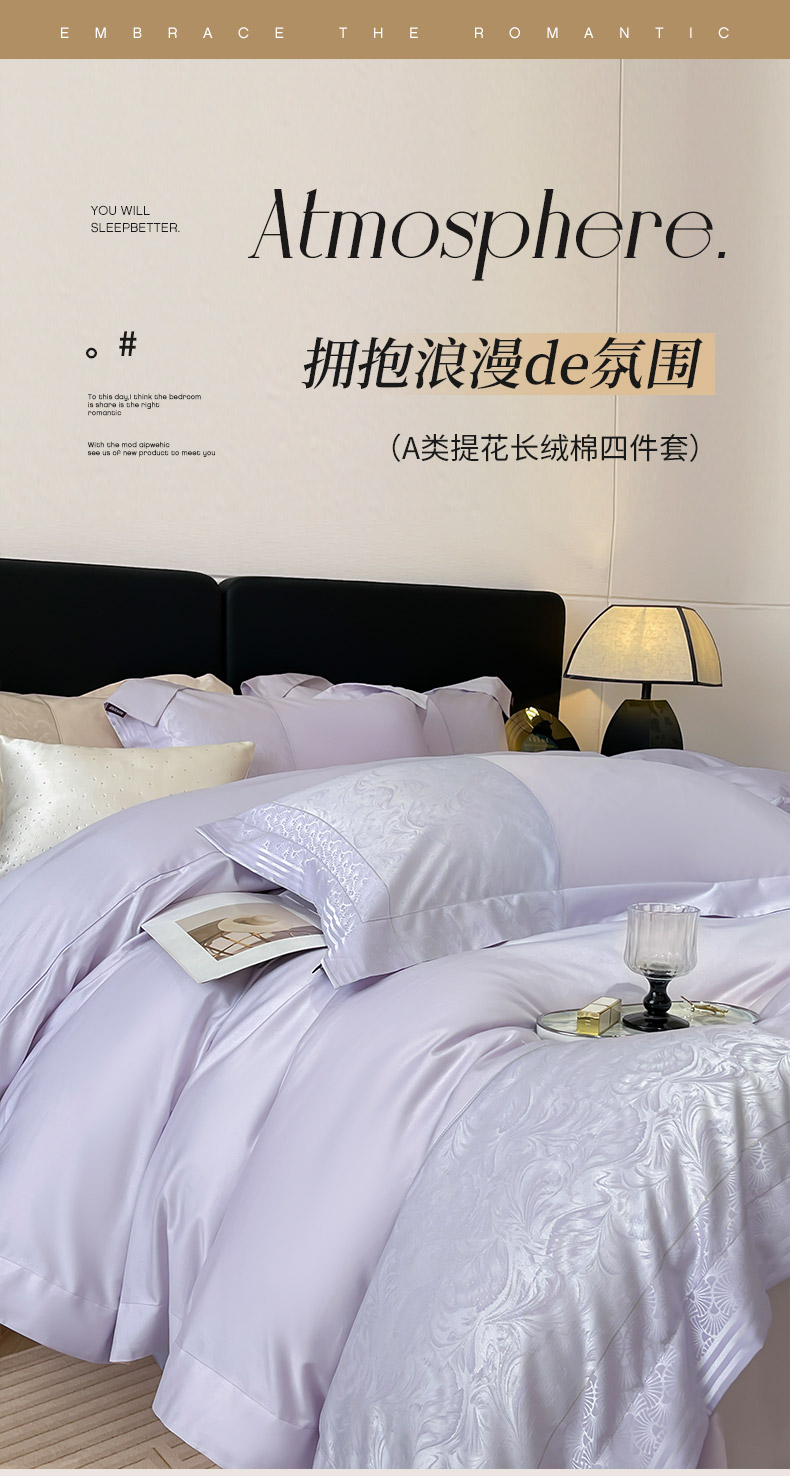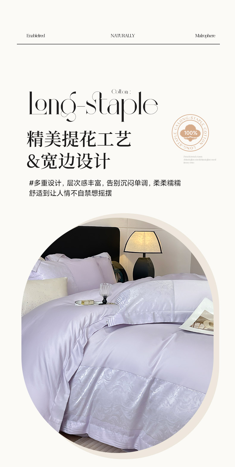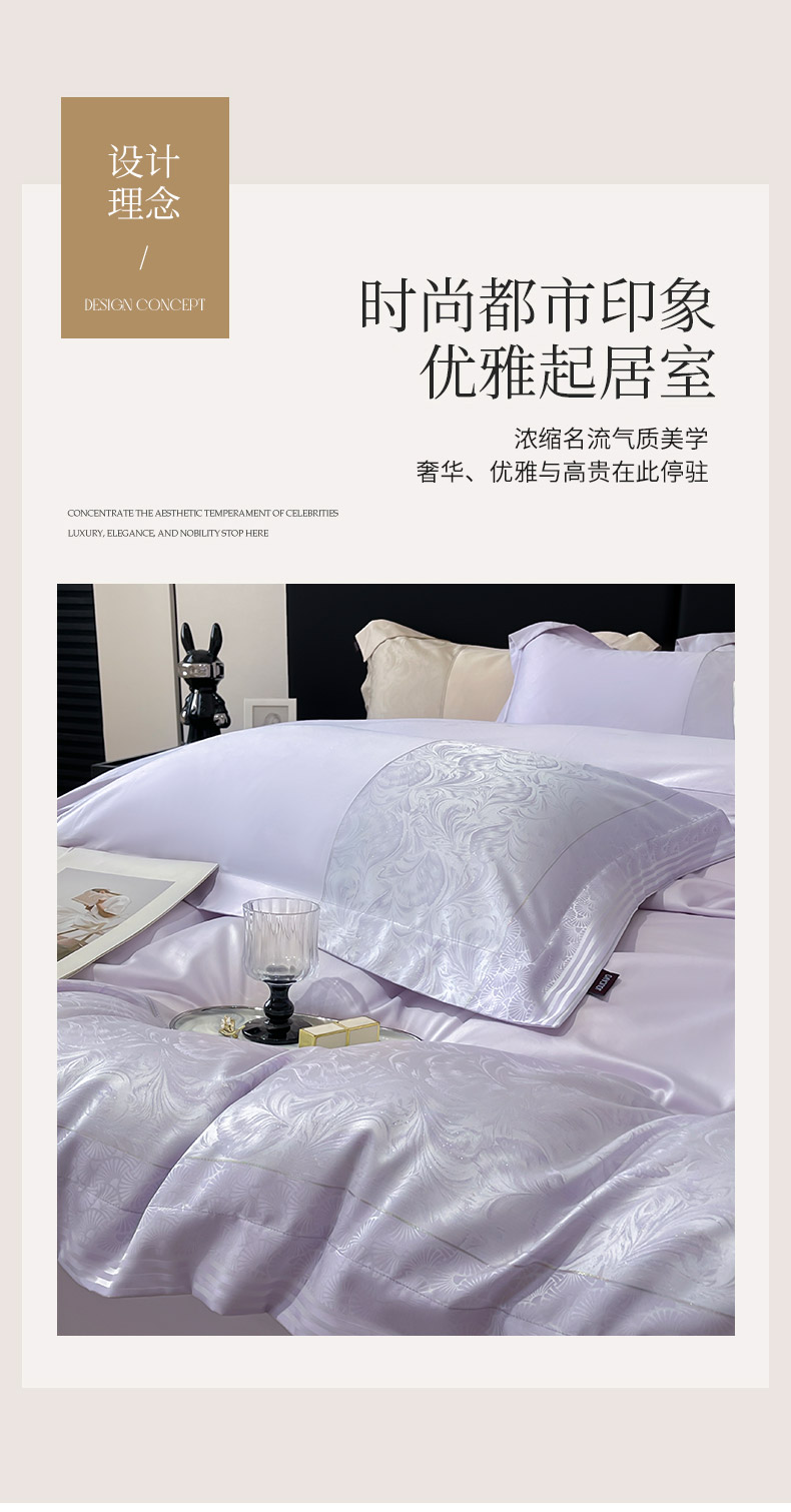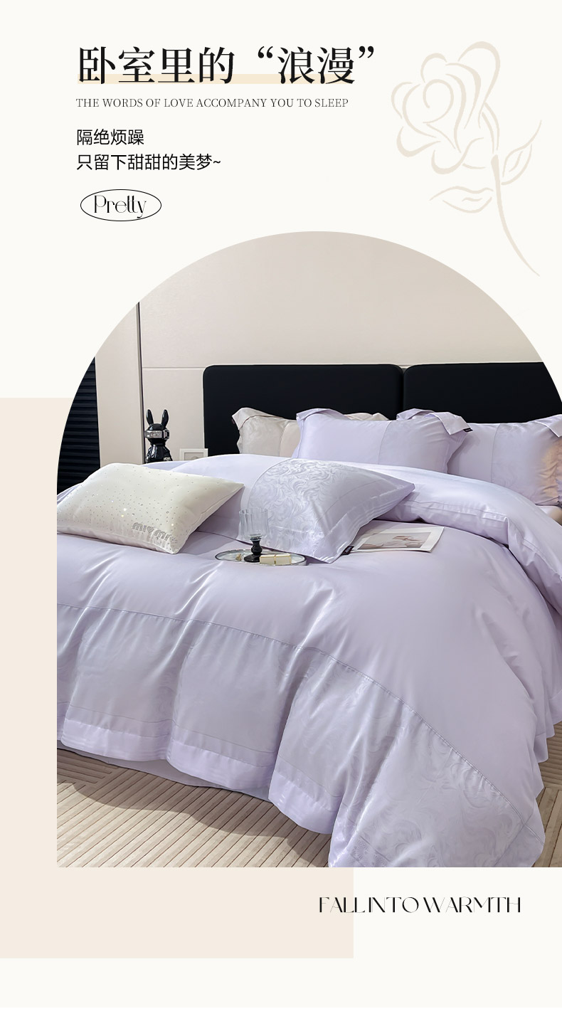 商品名称:2025新款高端A类贡缎提花长绒棉四件套纯棉全棉拼接被套纯色被套热款床上用品-南翎 南翎-黛紫