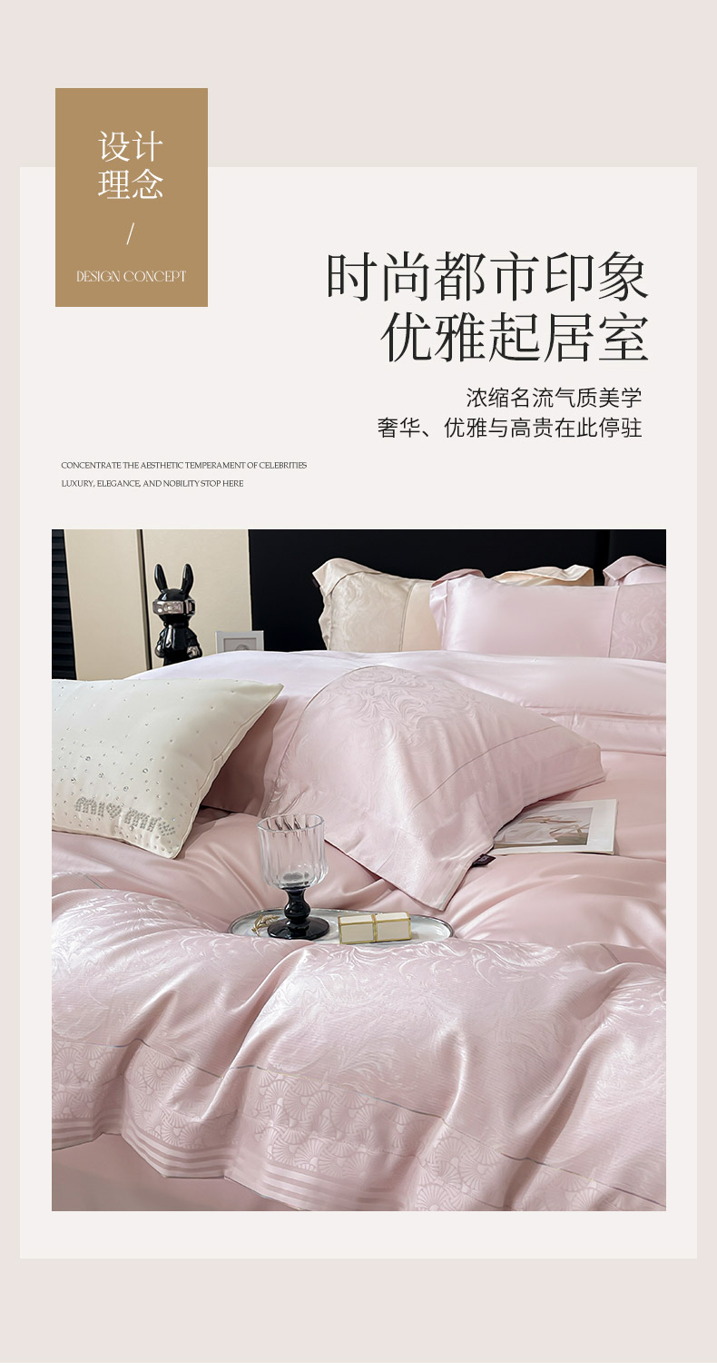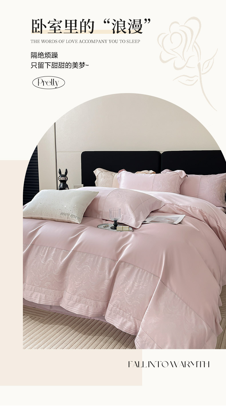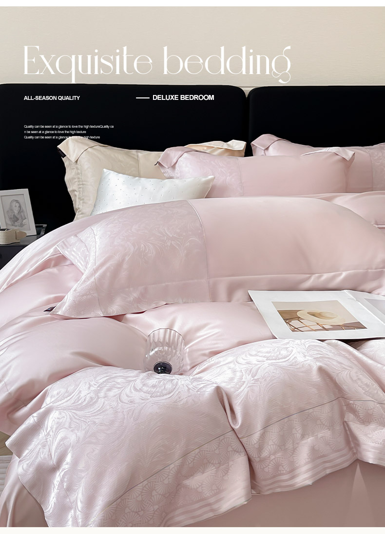 商品名称:2025新款高端A类贡缎提花长绒棉四件套纯棉全棉拼接被套纯色被套爆款床上用品-南翎 南翎-芸粉