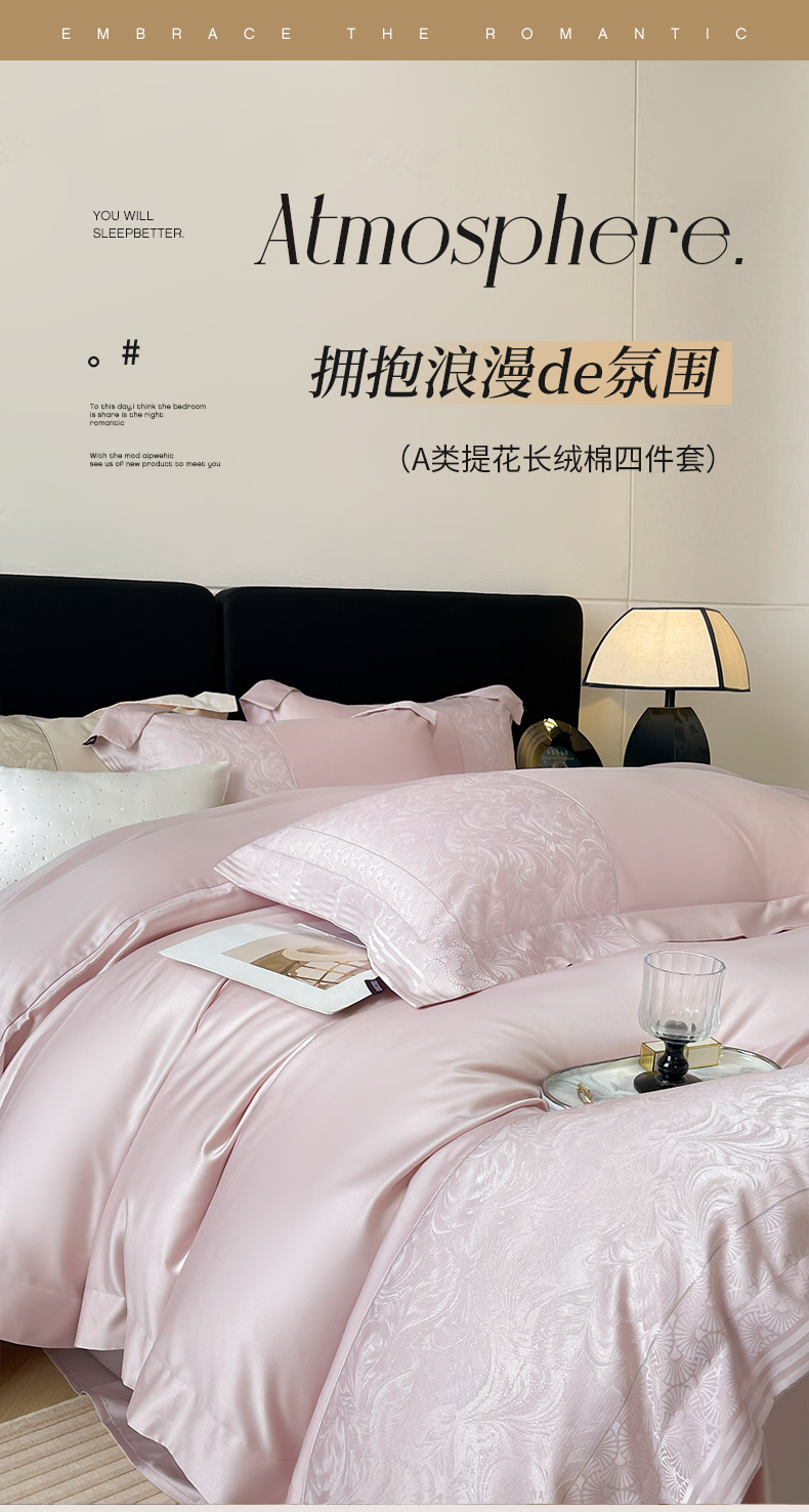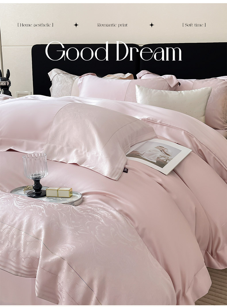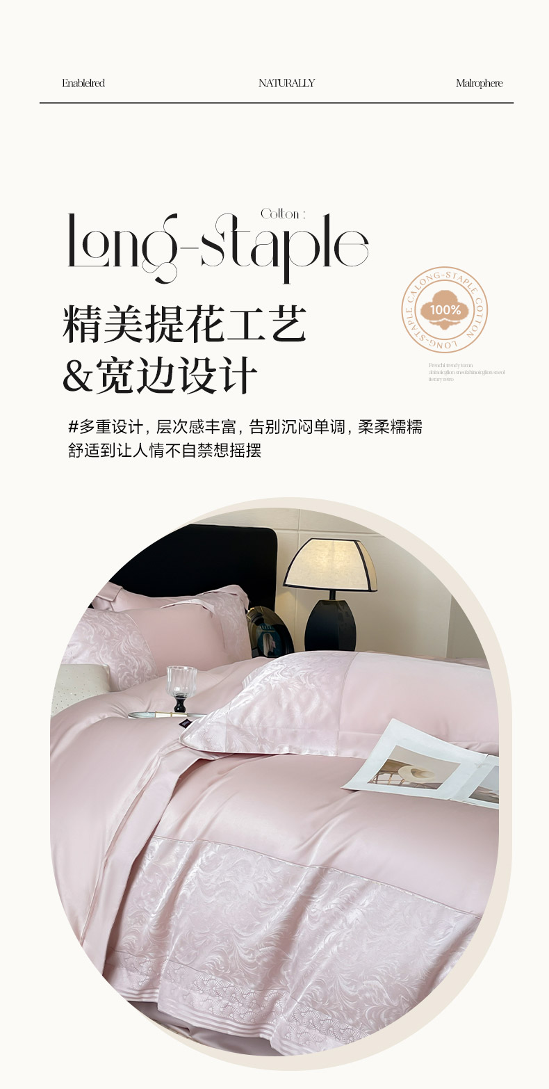 商品名称:2025新款高端A类贡缎提花长绒棉四件套纯棉全棉拼接被套纯色被套爆款床上用品-南翎 南翎-芸粉