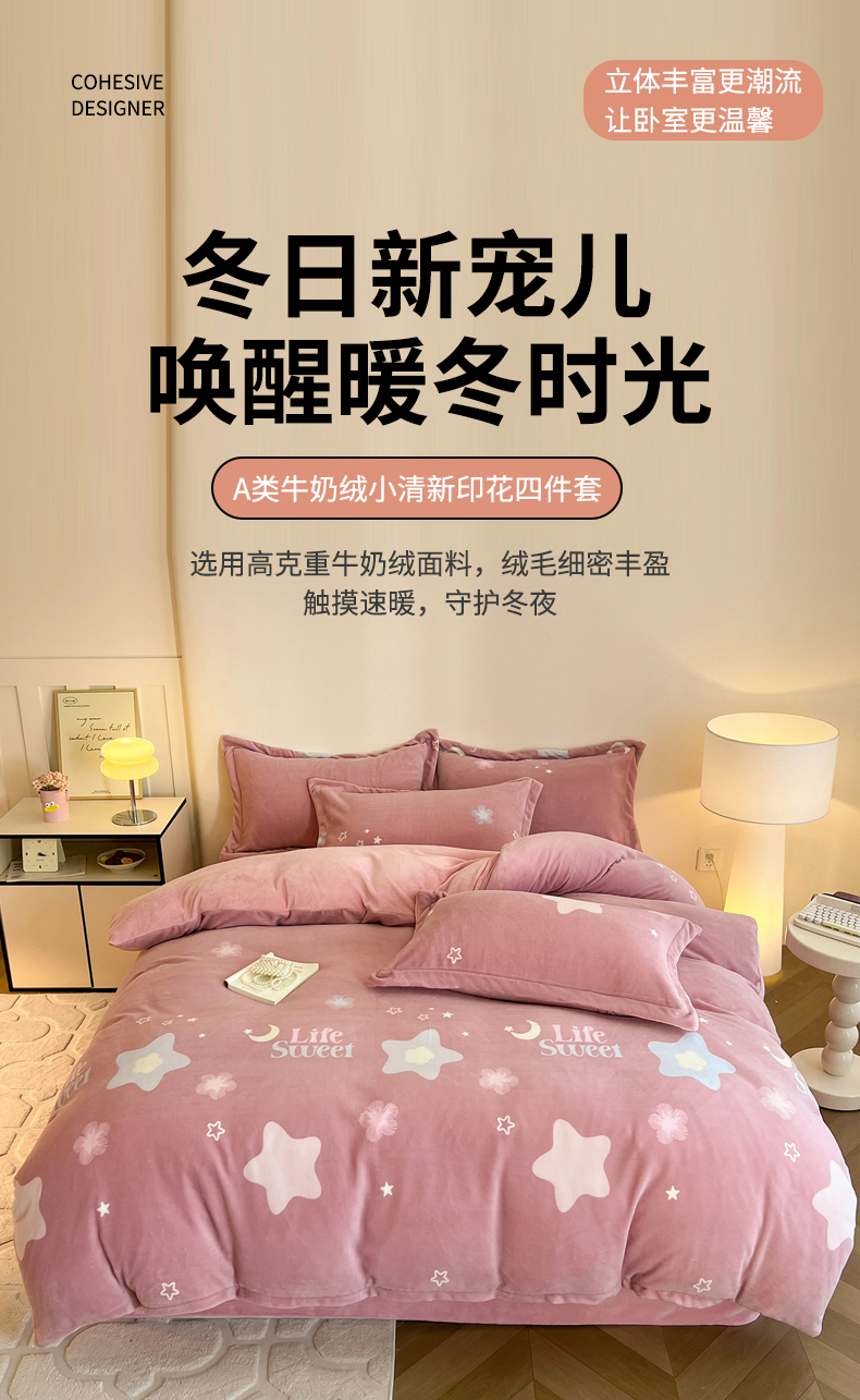 当前位置: 91家纺网 > 商品网购 > 床品套件 > 四件套 > 牛奶绒四件套 > 富馨莱 2025新款牛奶绒印花四件套240克面料支持一件定制尺寸 星光闪闪