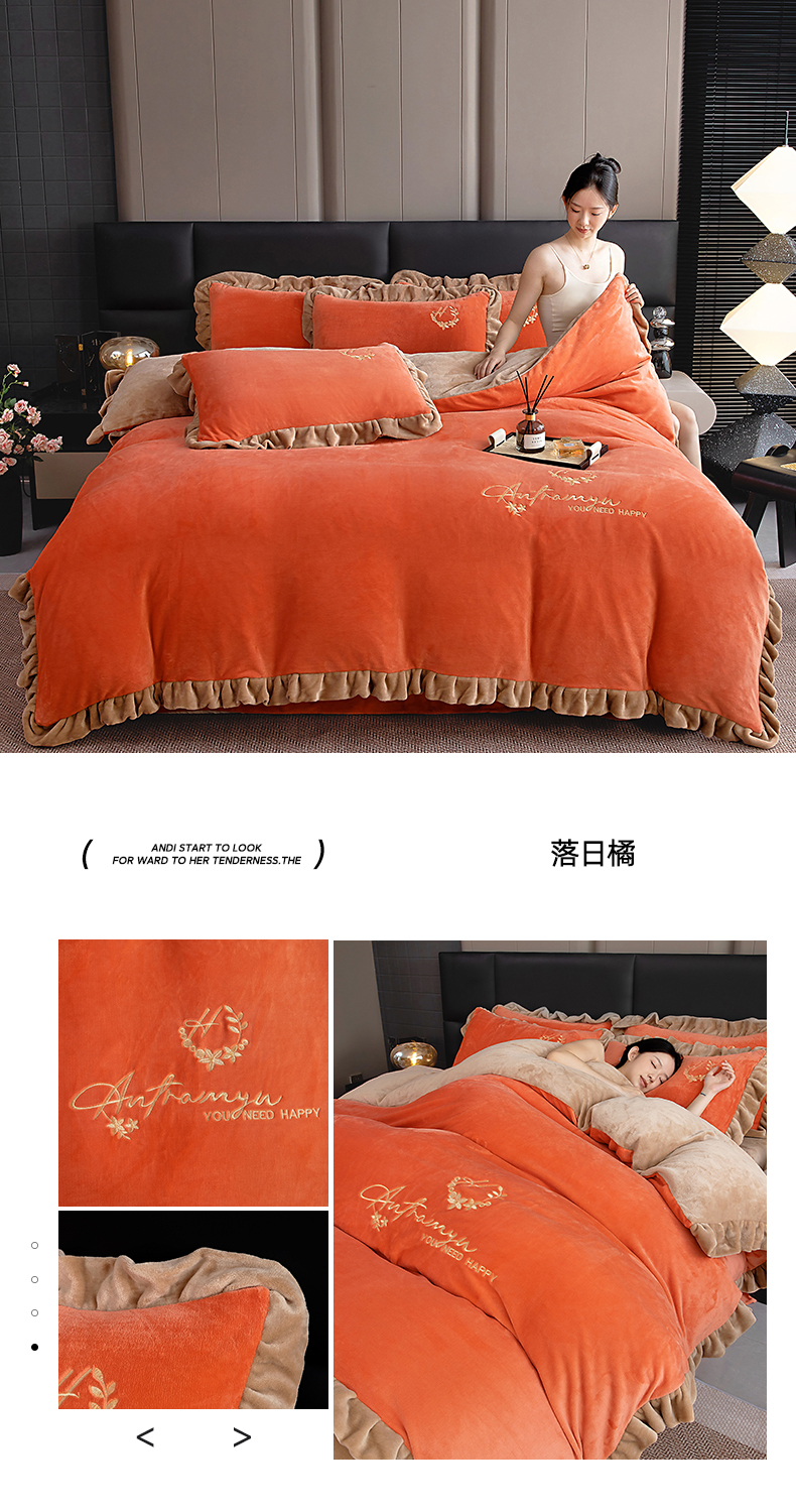 (总)找底底 2023新款牛奶绒花边床裙刺绣四件套,爱玛橙,草莓粉,高级灰,牛油果绿,青草绿,柔情紫,天空蓝,薰衣草紫