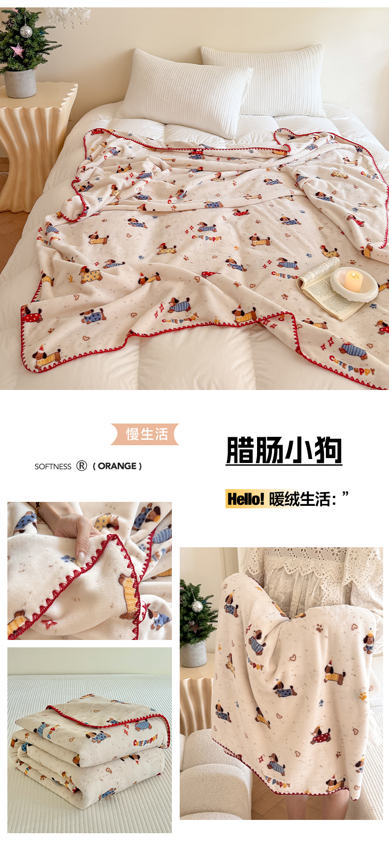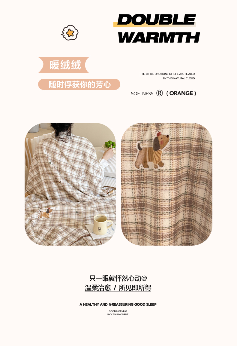 商品名称:澳萝拉 2025新款230g高克重全工艺牛奶绒三角针毛毯四季毯休闲毯毯子(稳定供货 不缺货) 班尼小狗