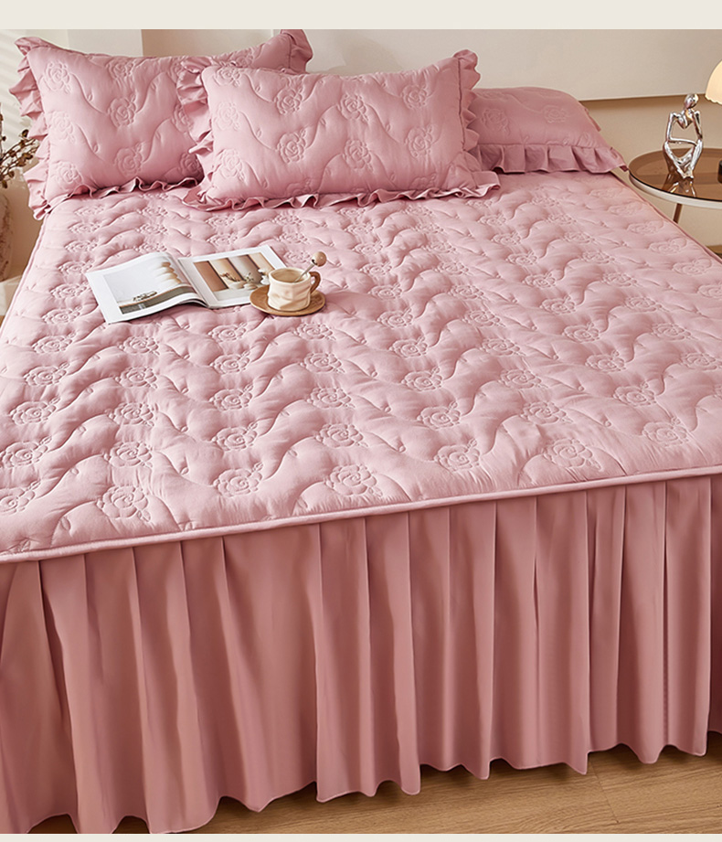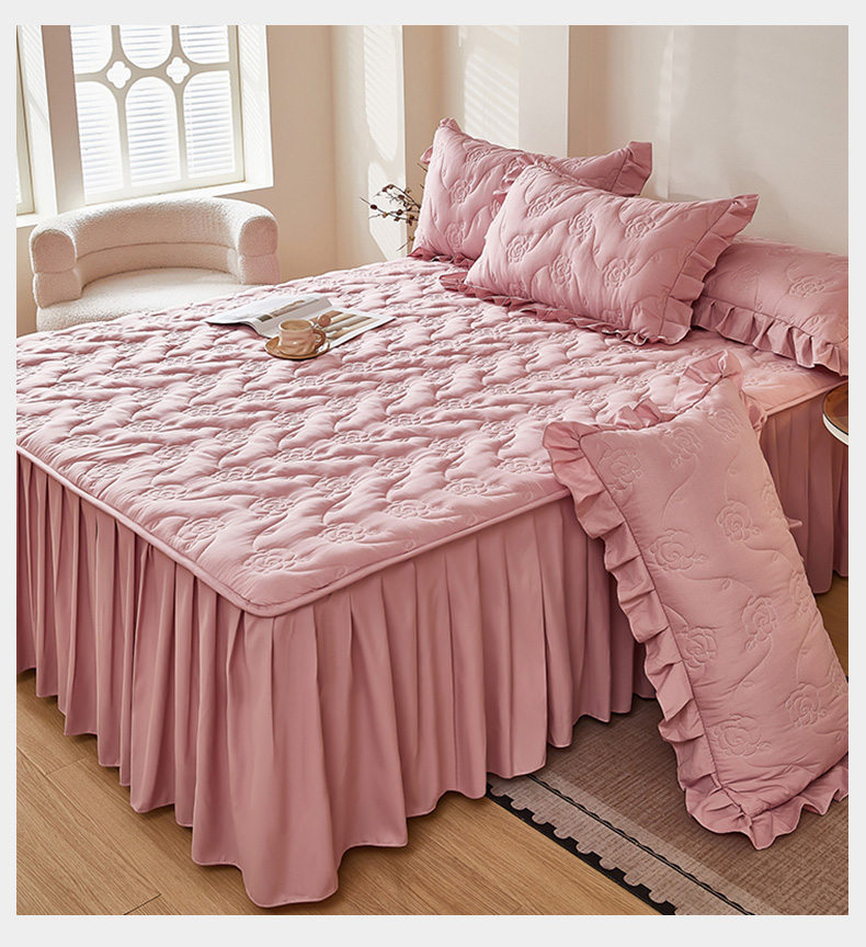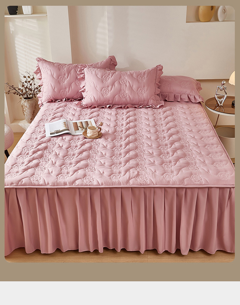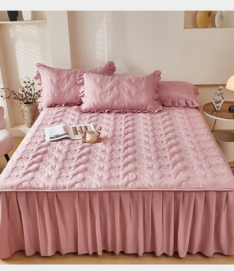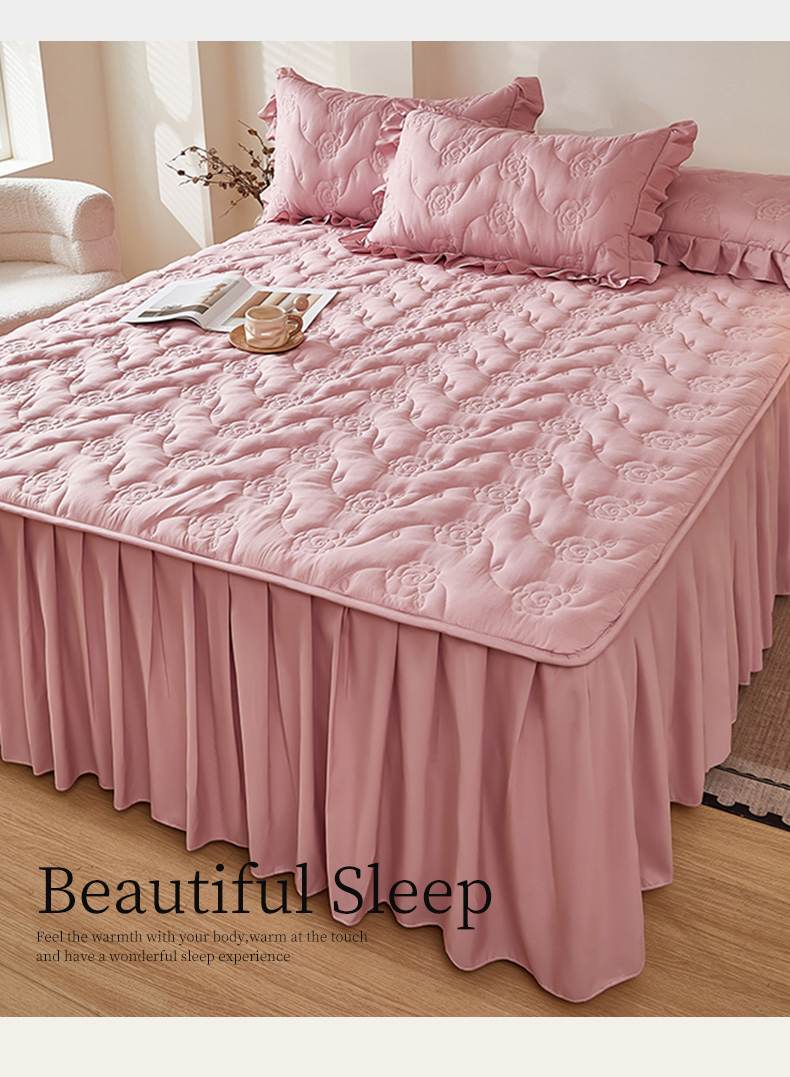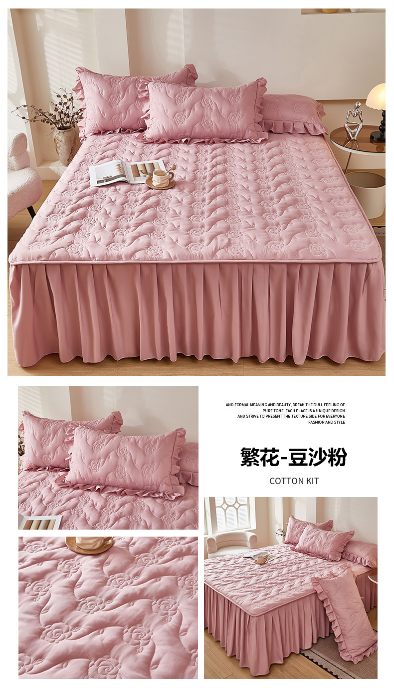 瑞兴纺 2025年新款亲肤夹棉床笠床裙 床裙花边款:繁花-豆沙粉
