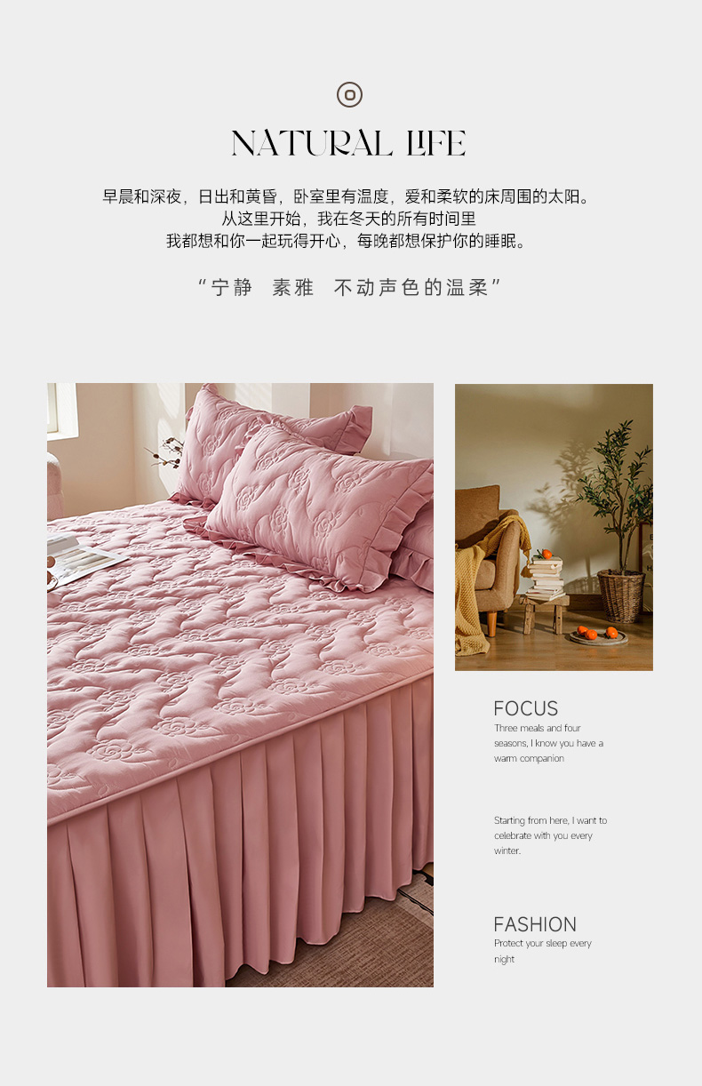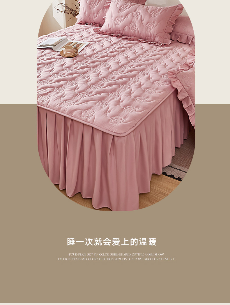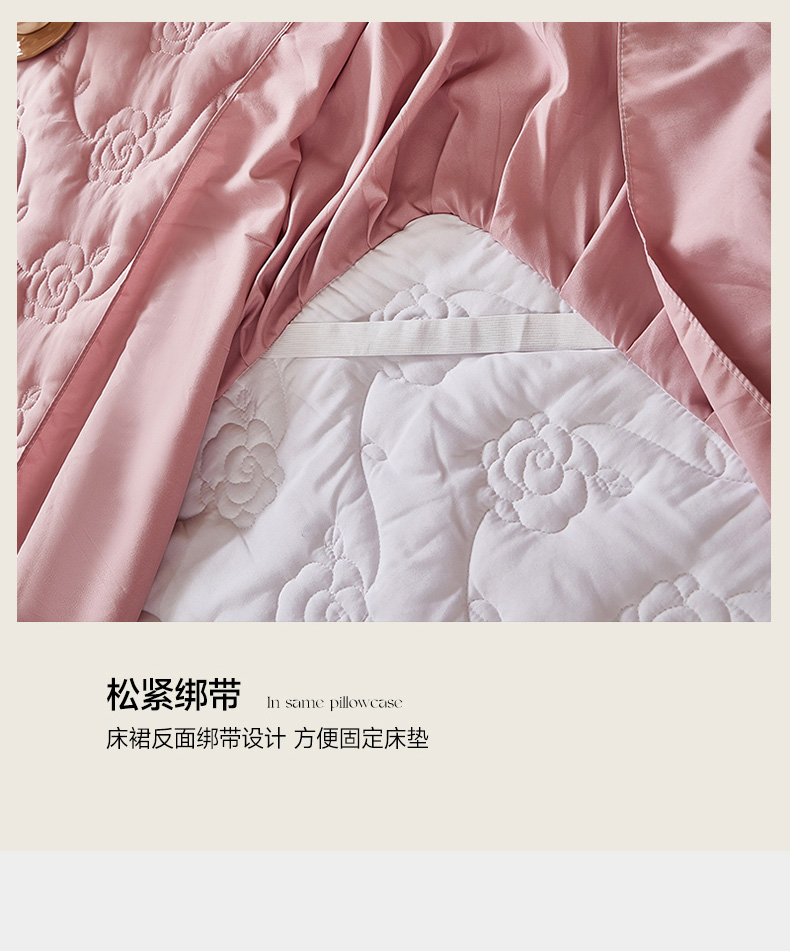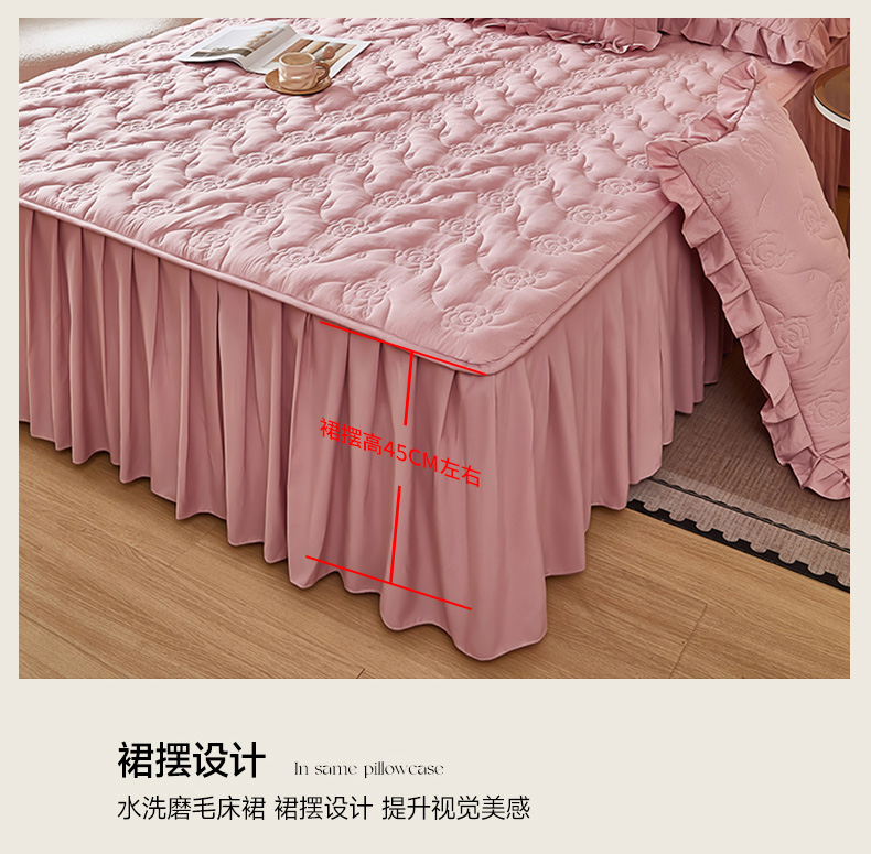 • 91家纺网 家纺一手货源 找家纺 瑞兴纺 2025年新款亲肤夹棉床笠床裙 床裙花边款:繁花-豆沙粉