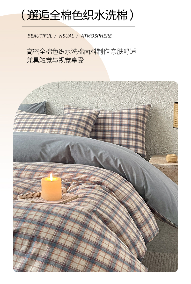 商品名称:曲之慕 2025新款亲肤舒适全棉纯棉色织水洗棉四件套 克鲁奇-绿